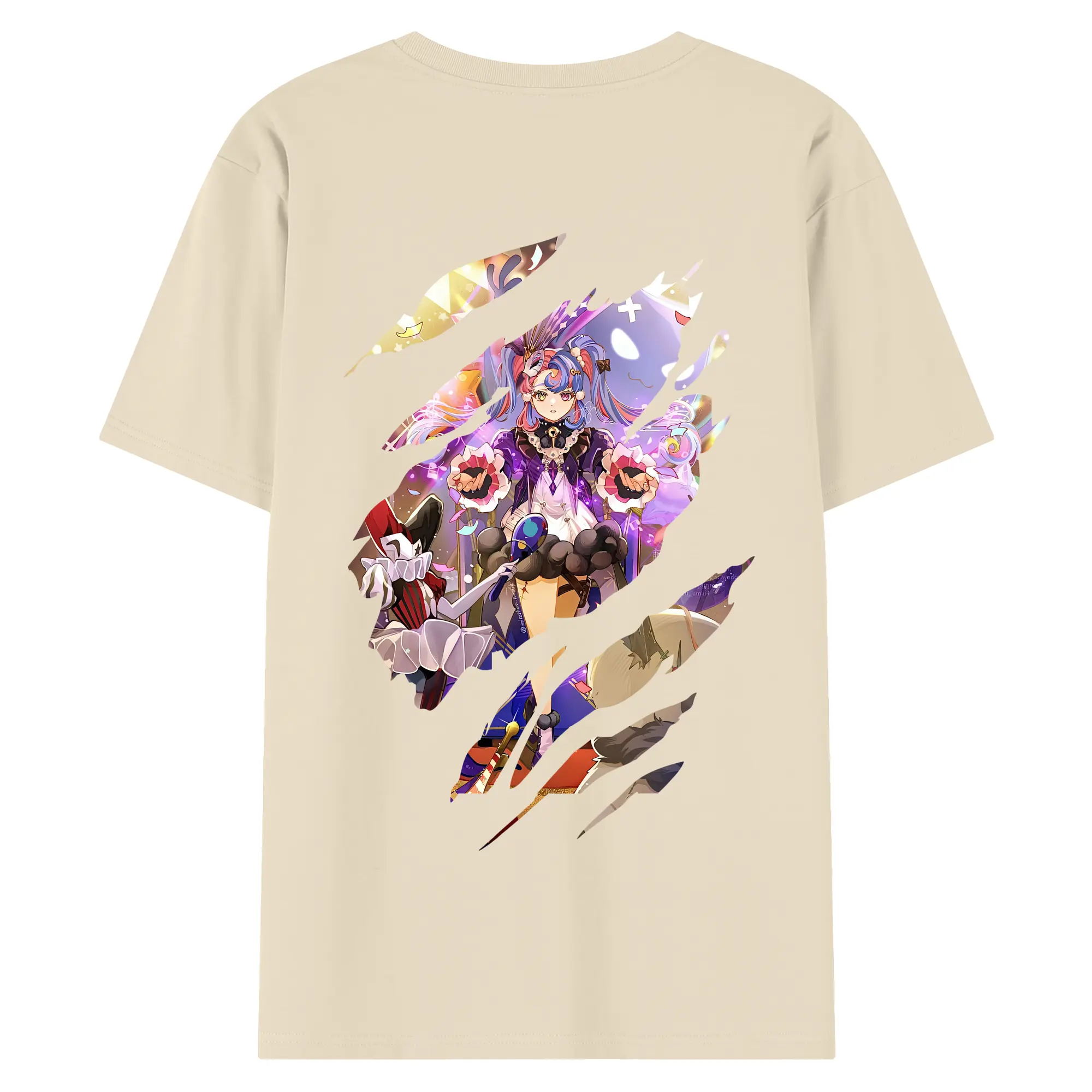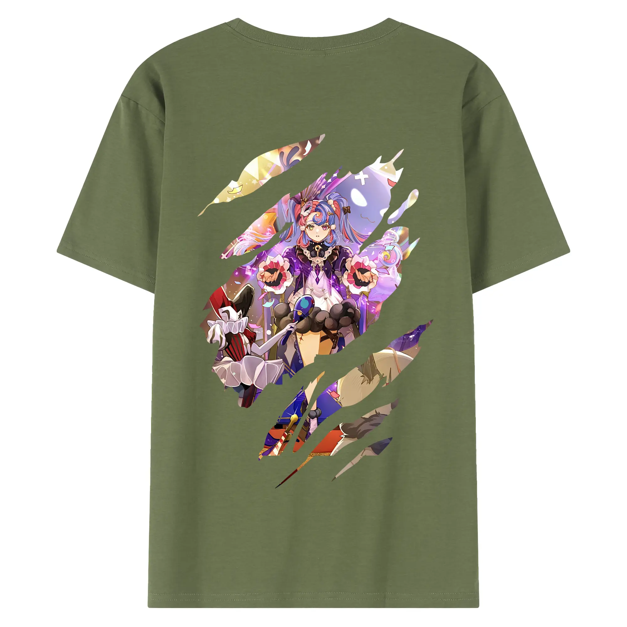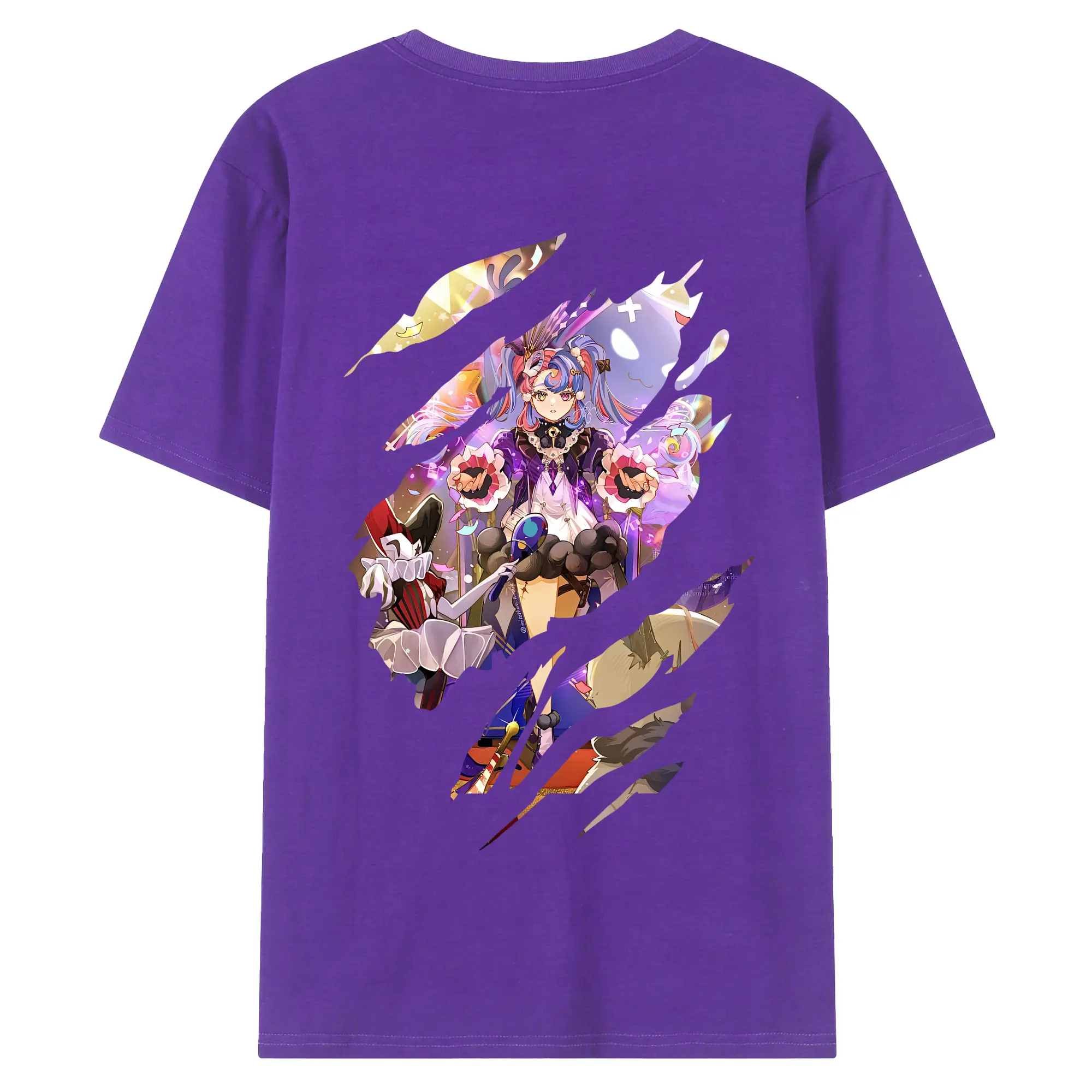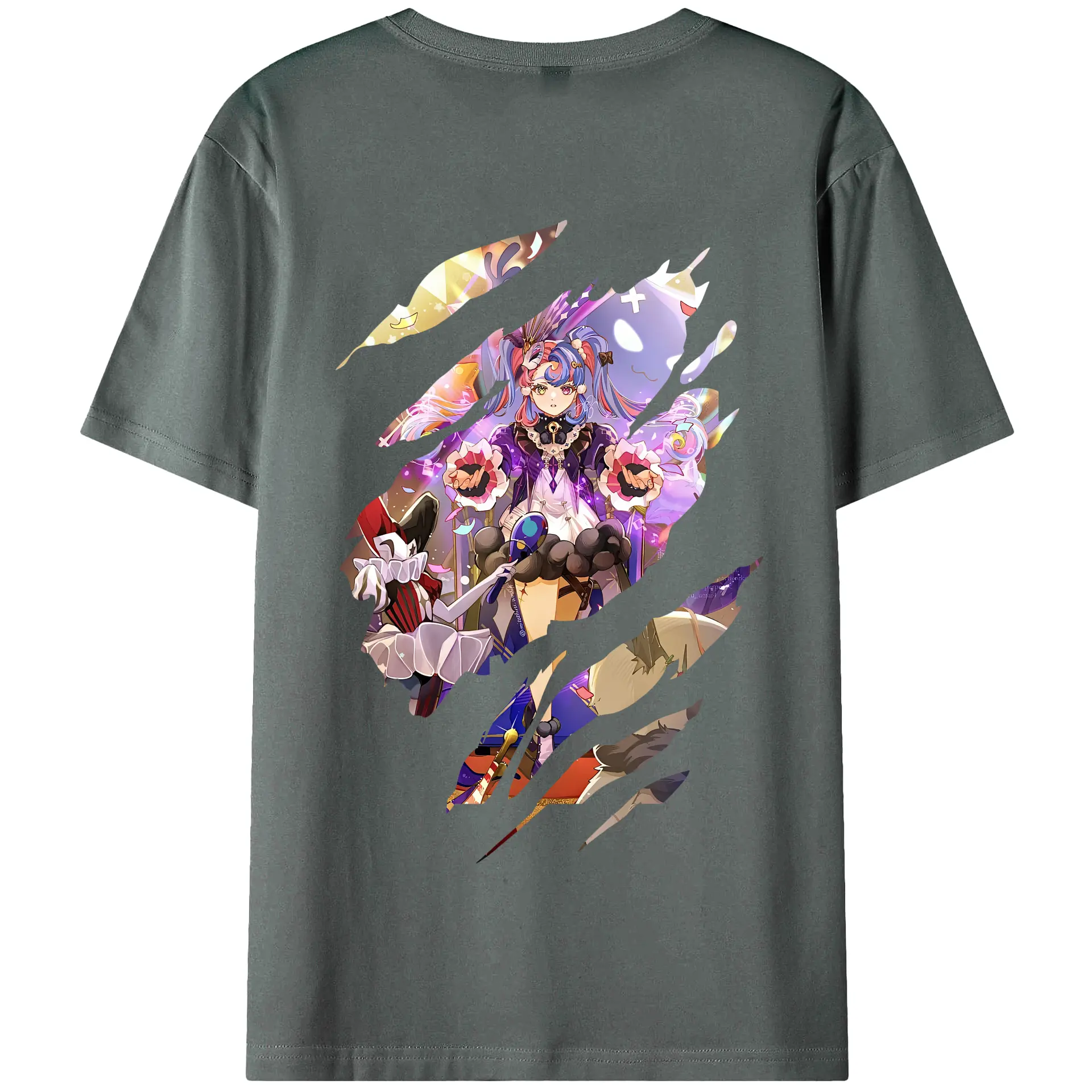 鳴潮 グッズ ロココ - 綿100% ヴィンテージ風 半袖Tシャツ ・ 背面プリント ・ 柔らか肌触り ・ 通気性 快適 ・ スポーツ カジュアル 外出用