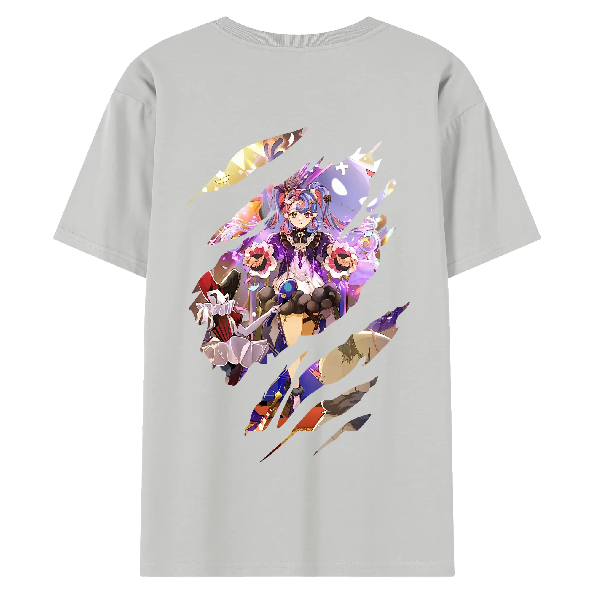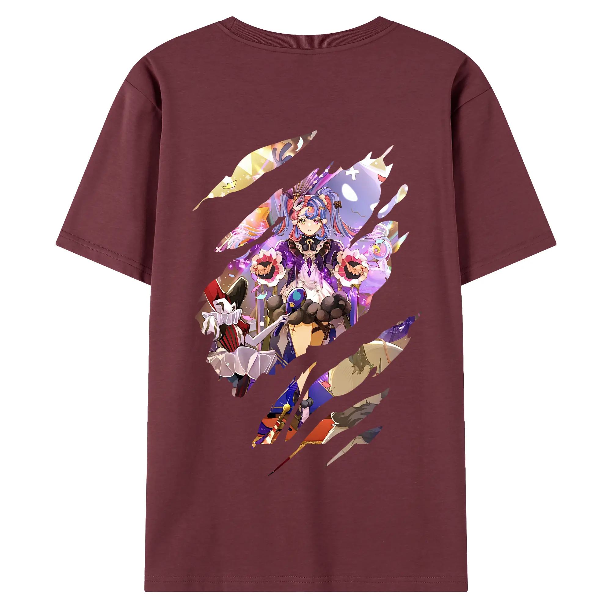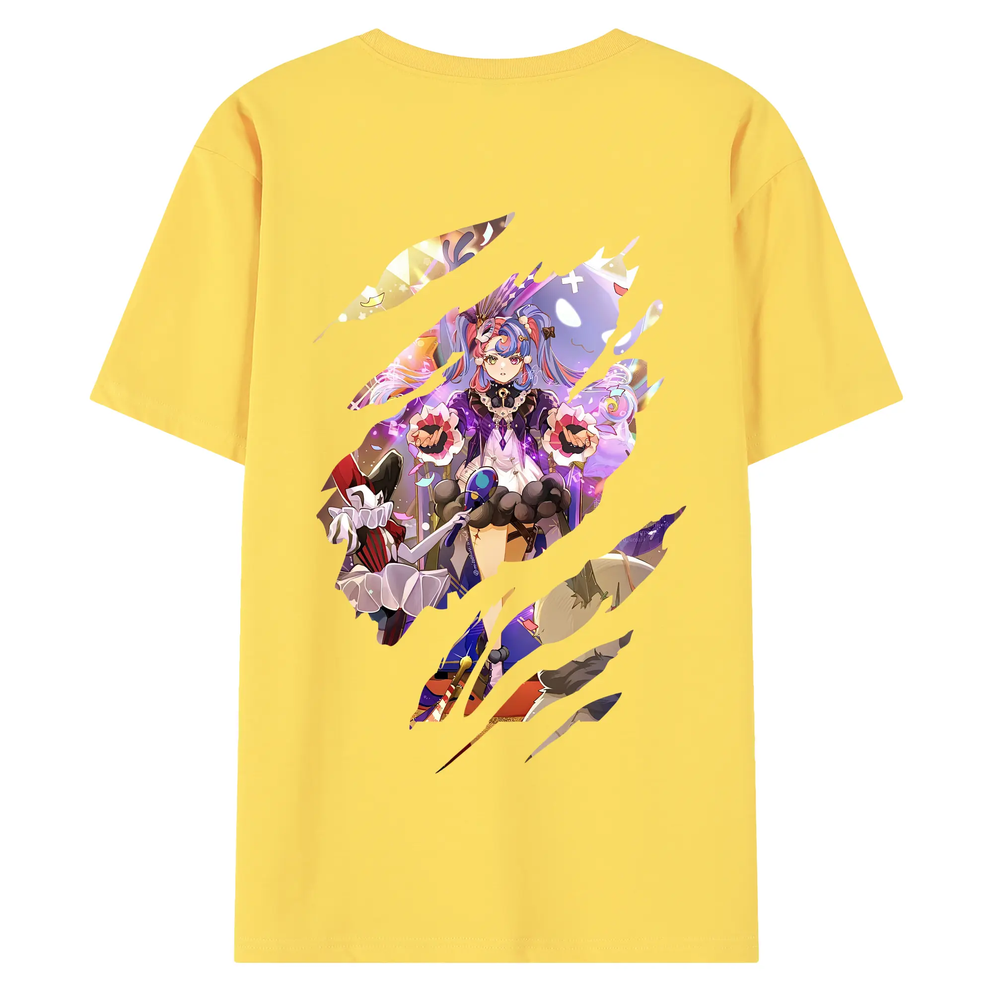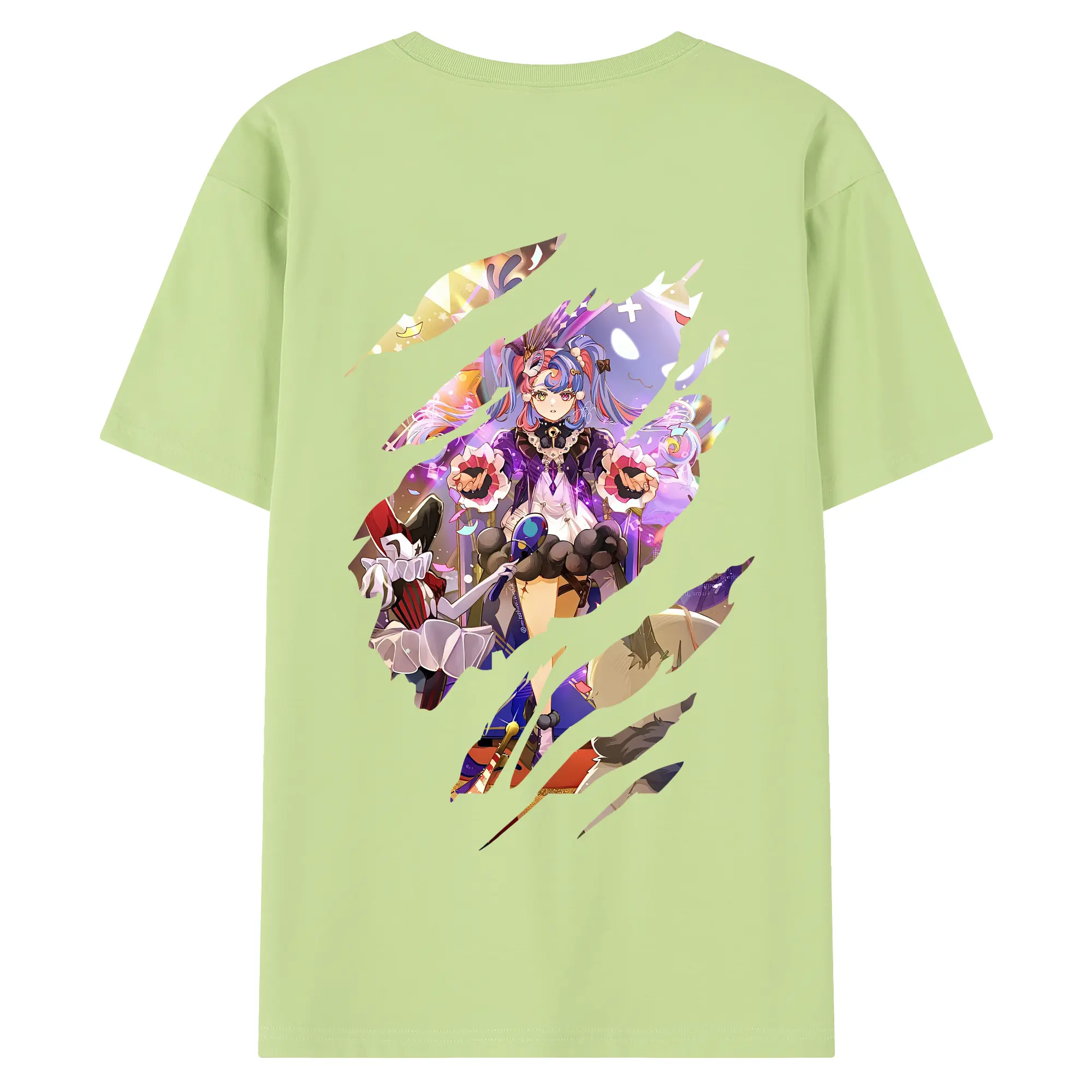鳴潮 グッズ ロココ - 綿100% ヴィンテージ風 半袖Tシャツ ・ 背面プリント ・ 柔らか肌触り ・ 通気性 快適 ・ スポーツ カジュアル 外出用