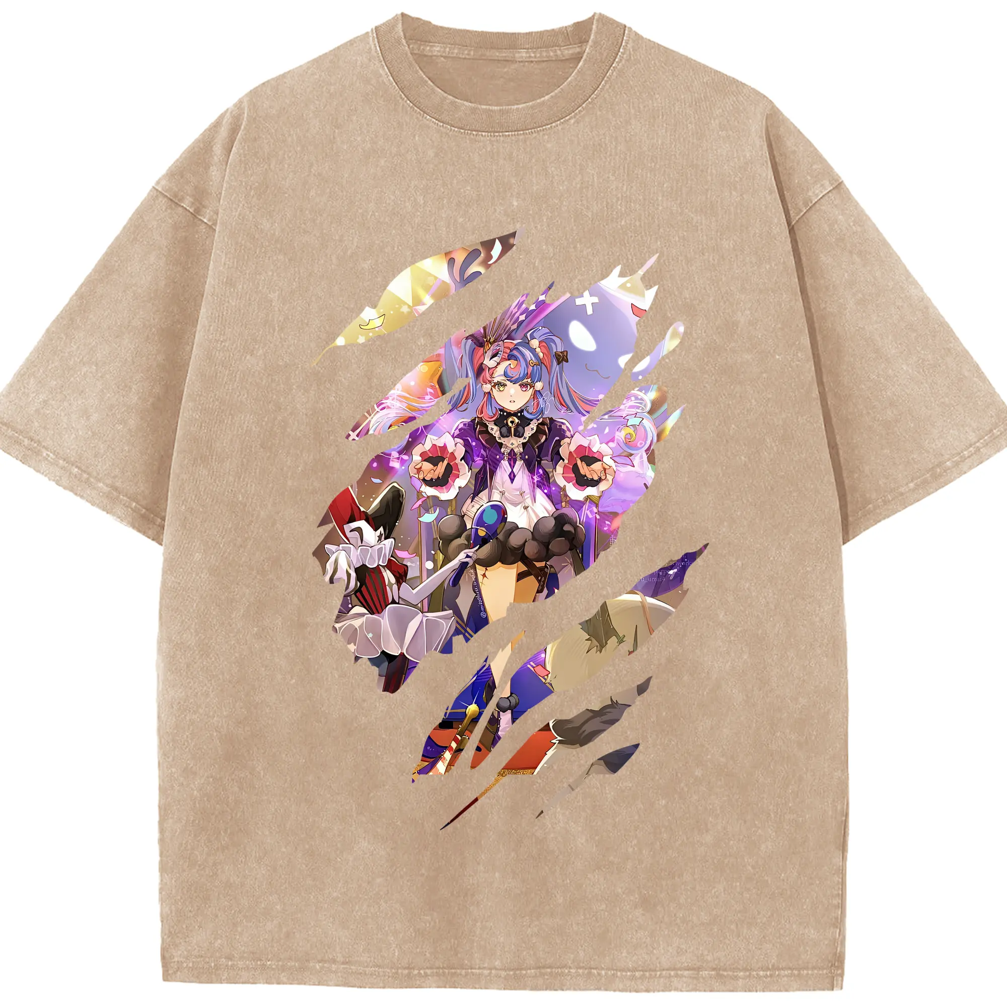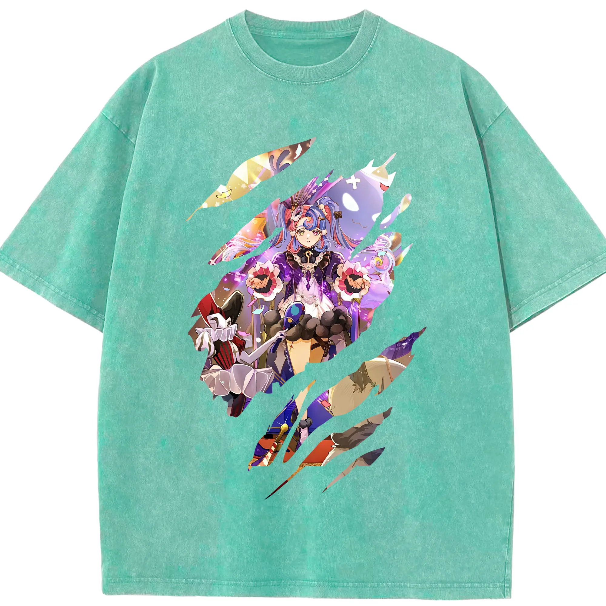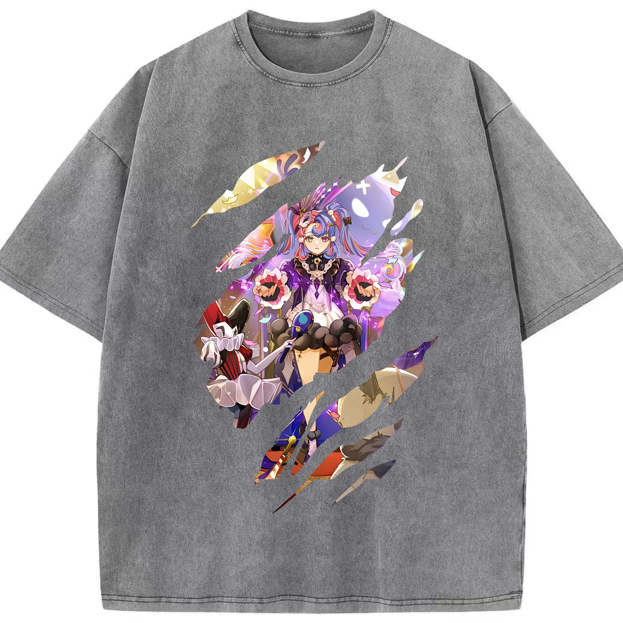 鳴潮 グッズ ロココ - 綿100% ヴィンテージ風 半袖Tシャツ ・ 背面プリント ・ 柔らか肌触り ・ 通気性 快適 ・ スポーツ カジュアル 外出用