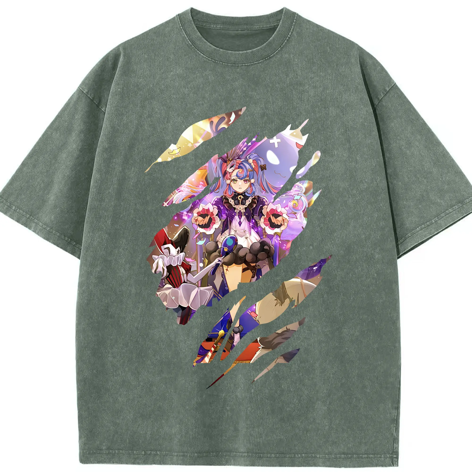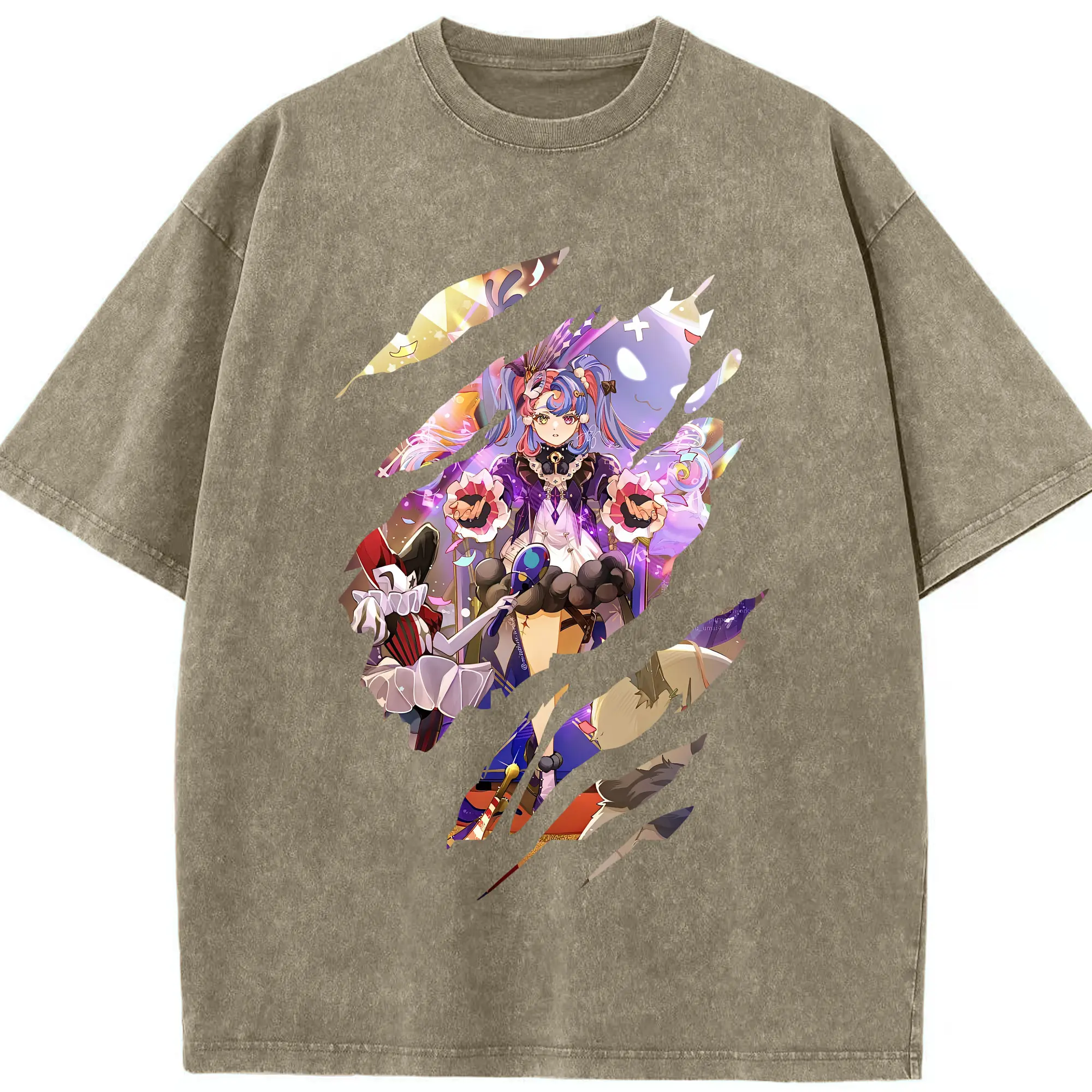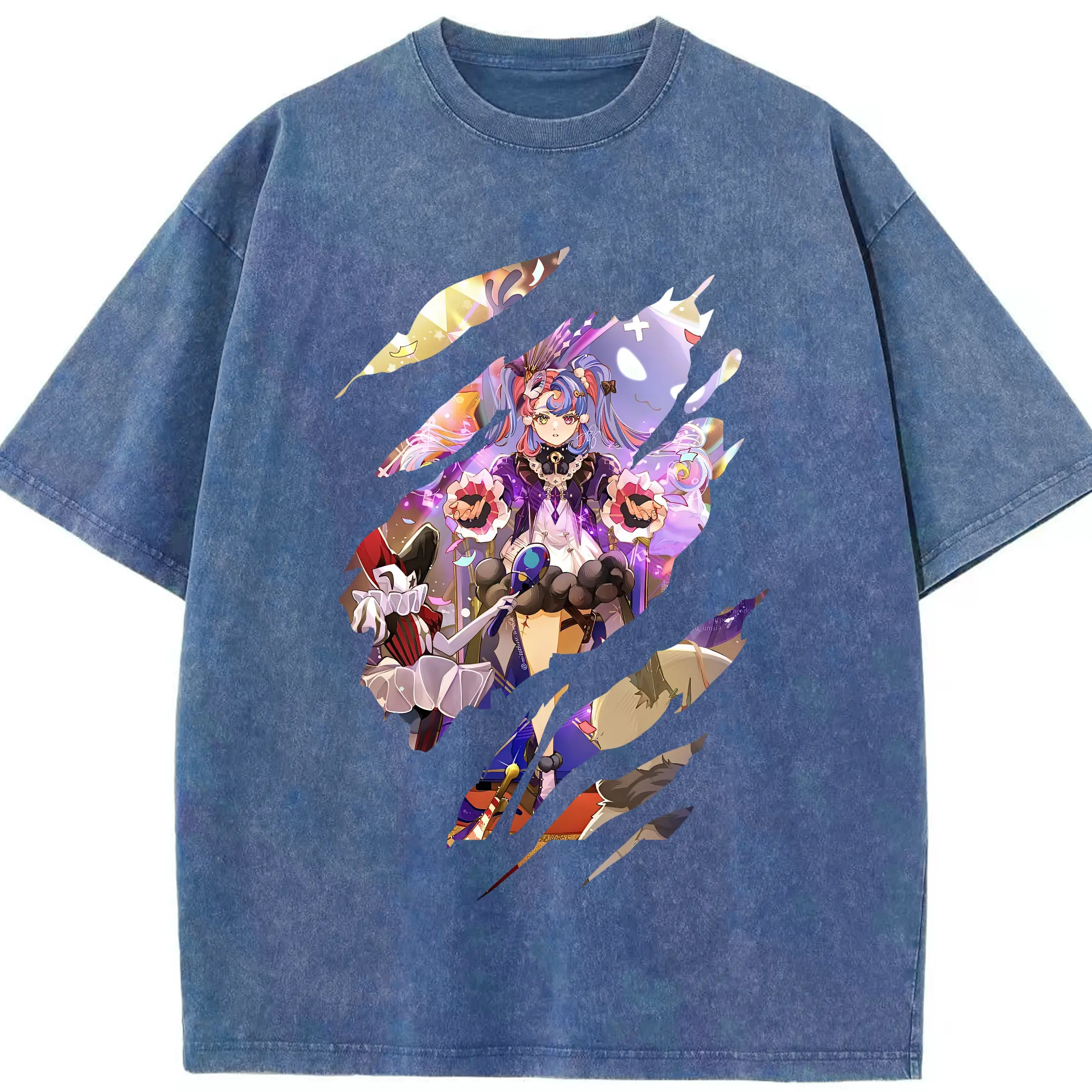 鳴潮 グッズ ロココ - 綿100% ヴィンテージ風 半袖Tシャツ ・ 背面プリント ・ 柔らか肌触り ・ 通気性 快適 ・ スポーツ カジュアル 外出用