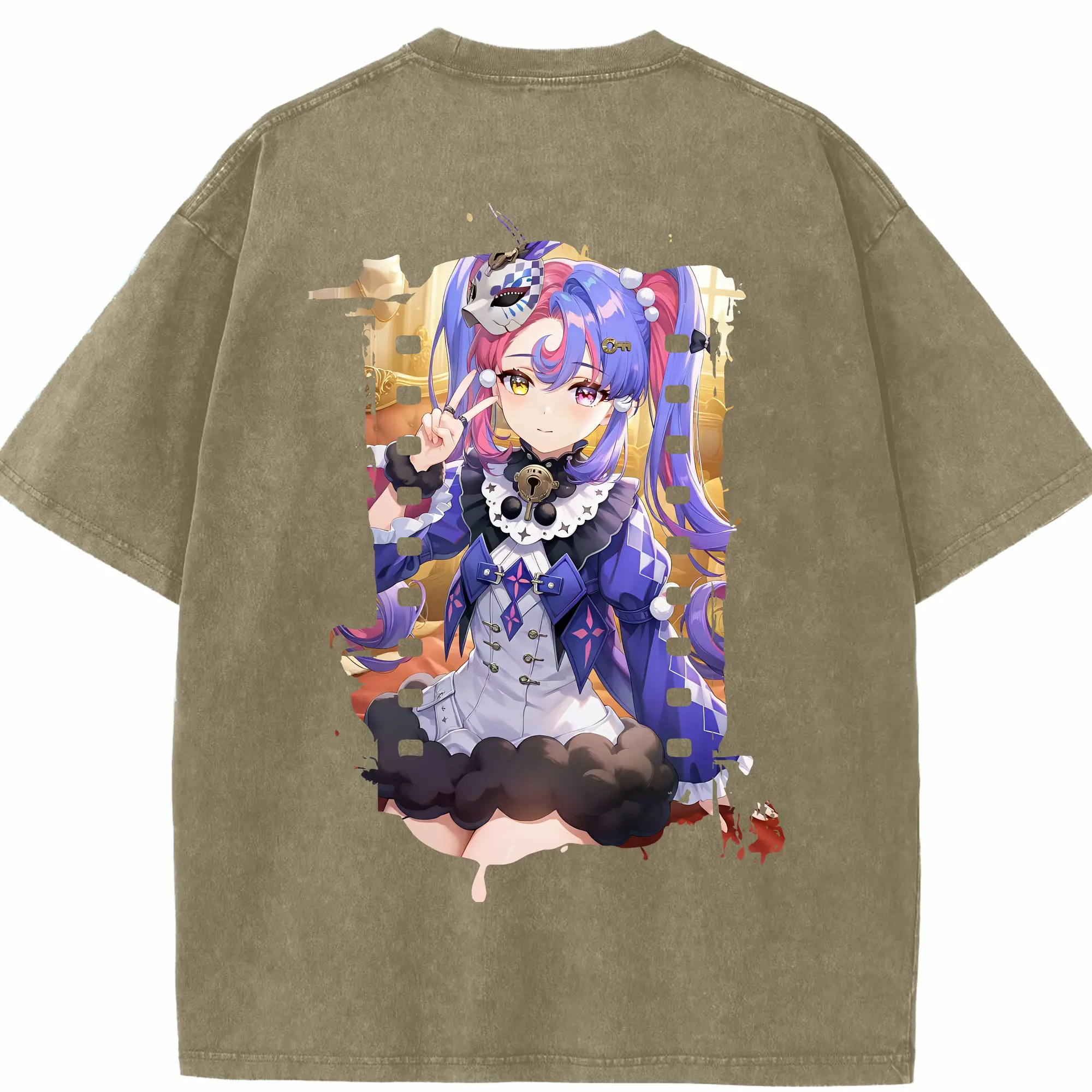 鳴潮 グッズ ロココ - 綿100% ヴィンテージ風 半袖Tシャツ ・ フロントプリント ・ 柔らか肌触り ・ 通気性 快適 ・ スポーツ カジュアル 外出用