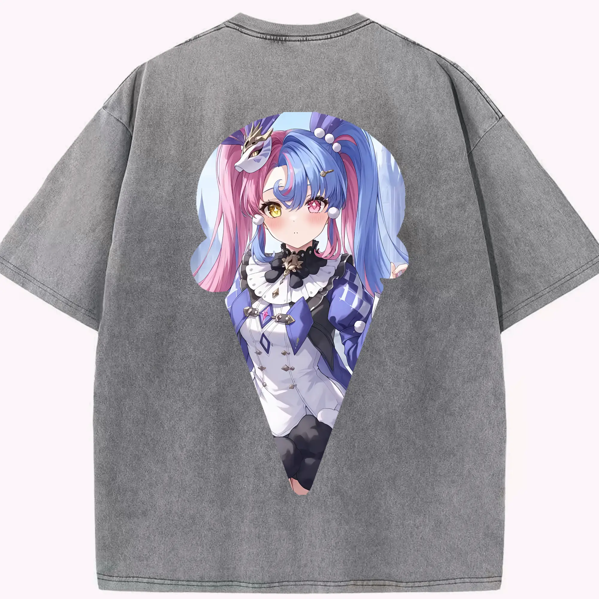 鳴潮 グッズ ロココ - 綿100% ヴィンテージ風 半袖Tシャツ ・ フロントプリント ・ 柔らか肌触り ・ 通気性 快適 ・ スポーツ カジュアル 外出用