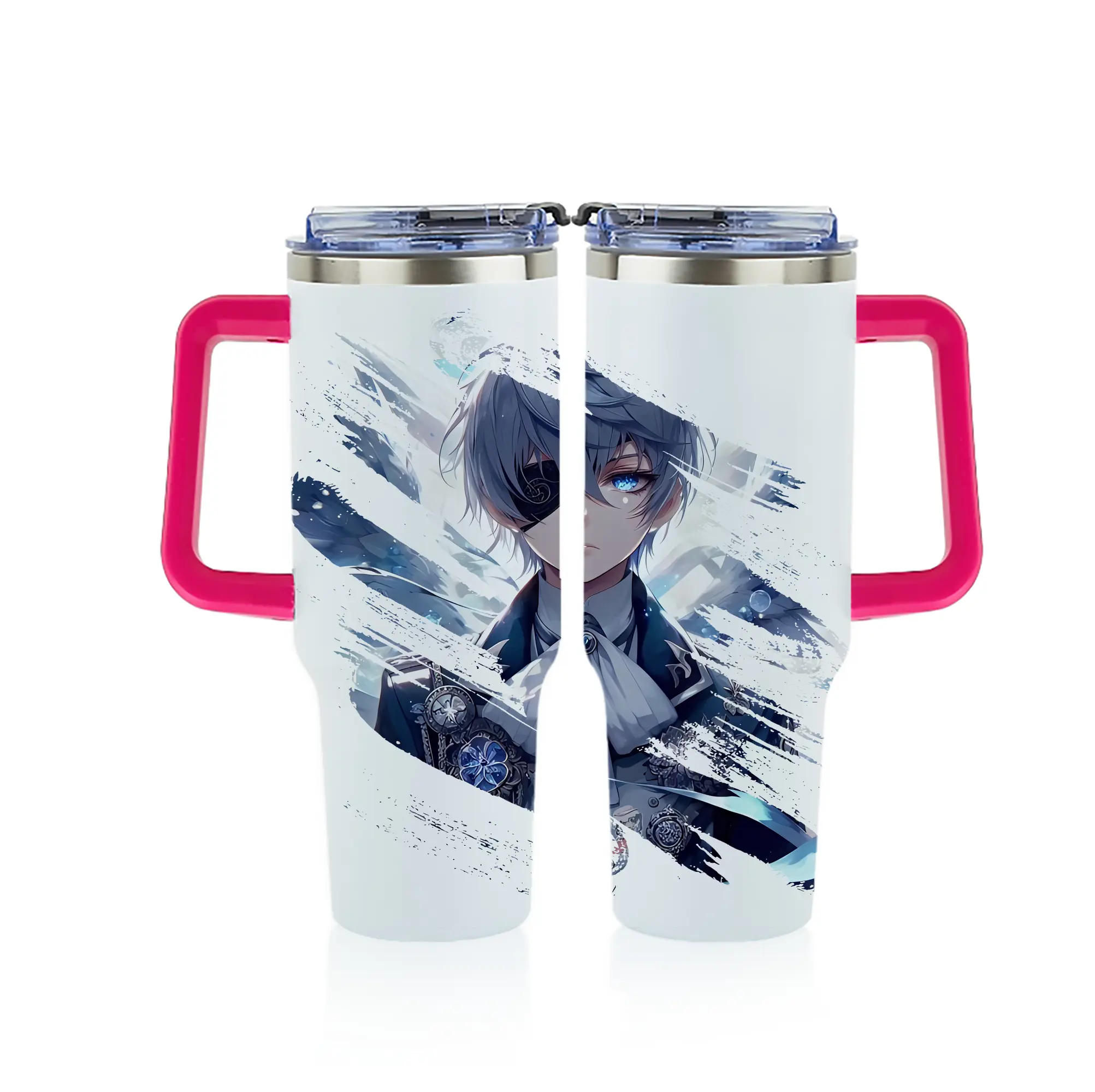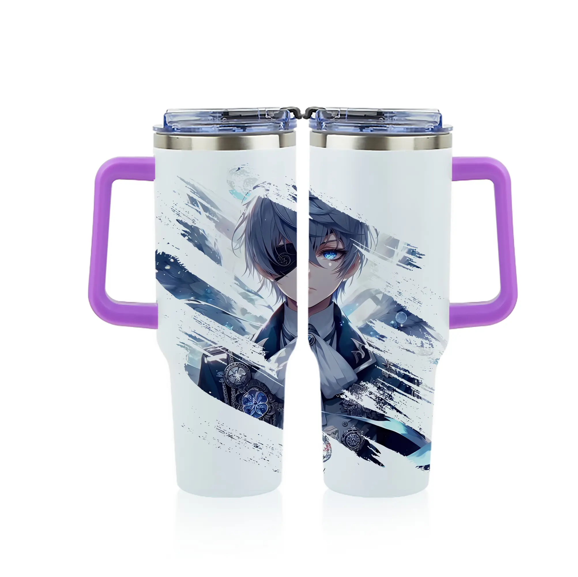 黒執事 グッズ,シエル・ファントムハイヴ - 1200mL フルプリント車用タンブラー ・ 304ステンレス 内側 ・ 201ステンレス 外側 ・ 保温 保冷 ・ 通勤 ドライブ アウトドア用
