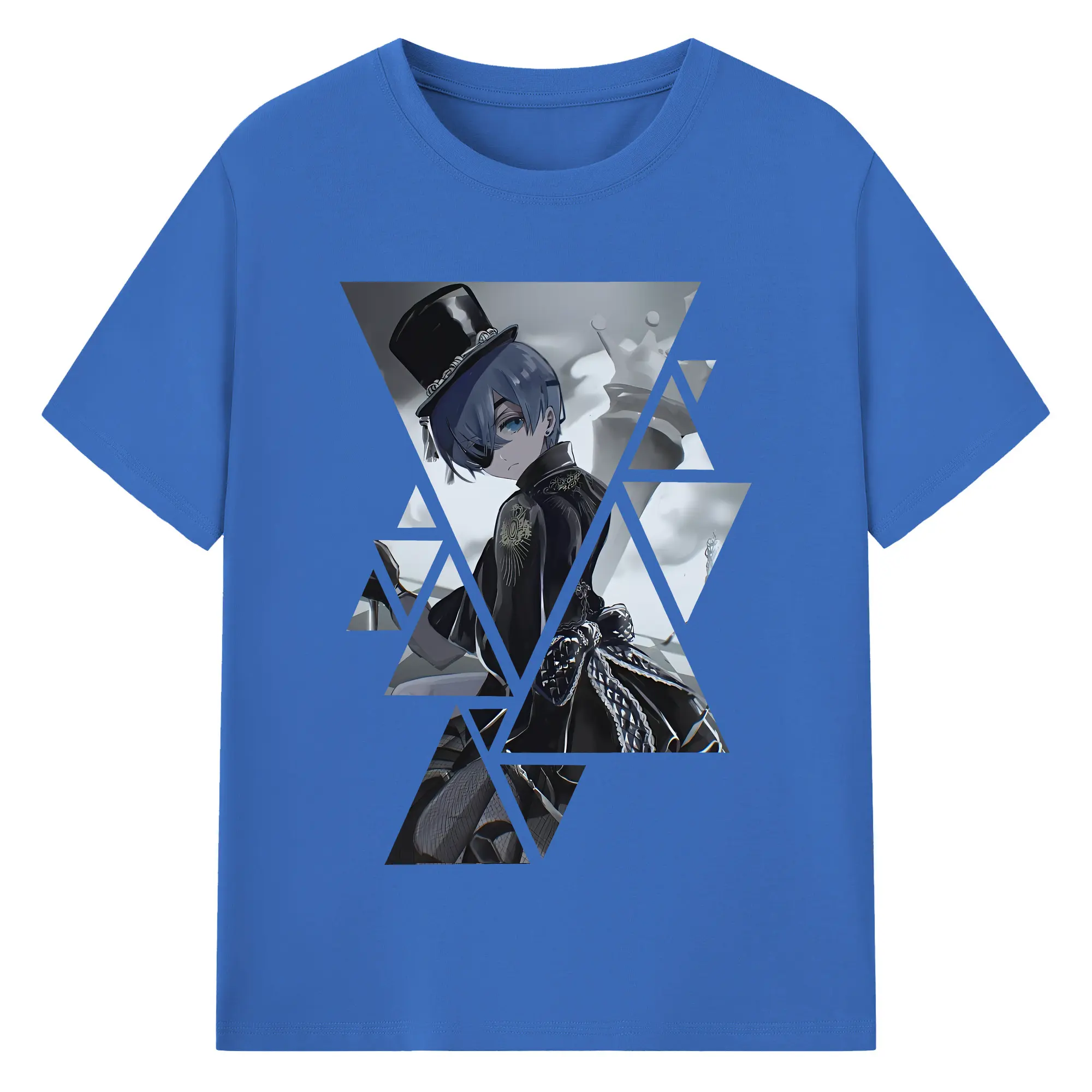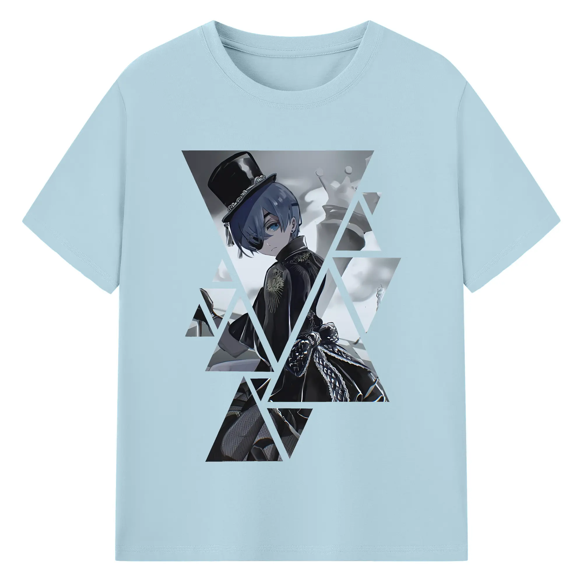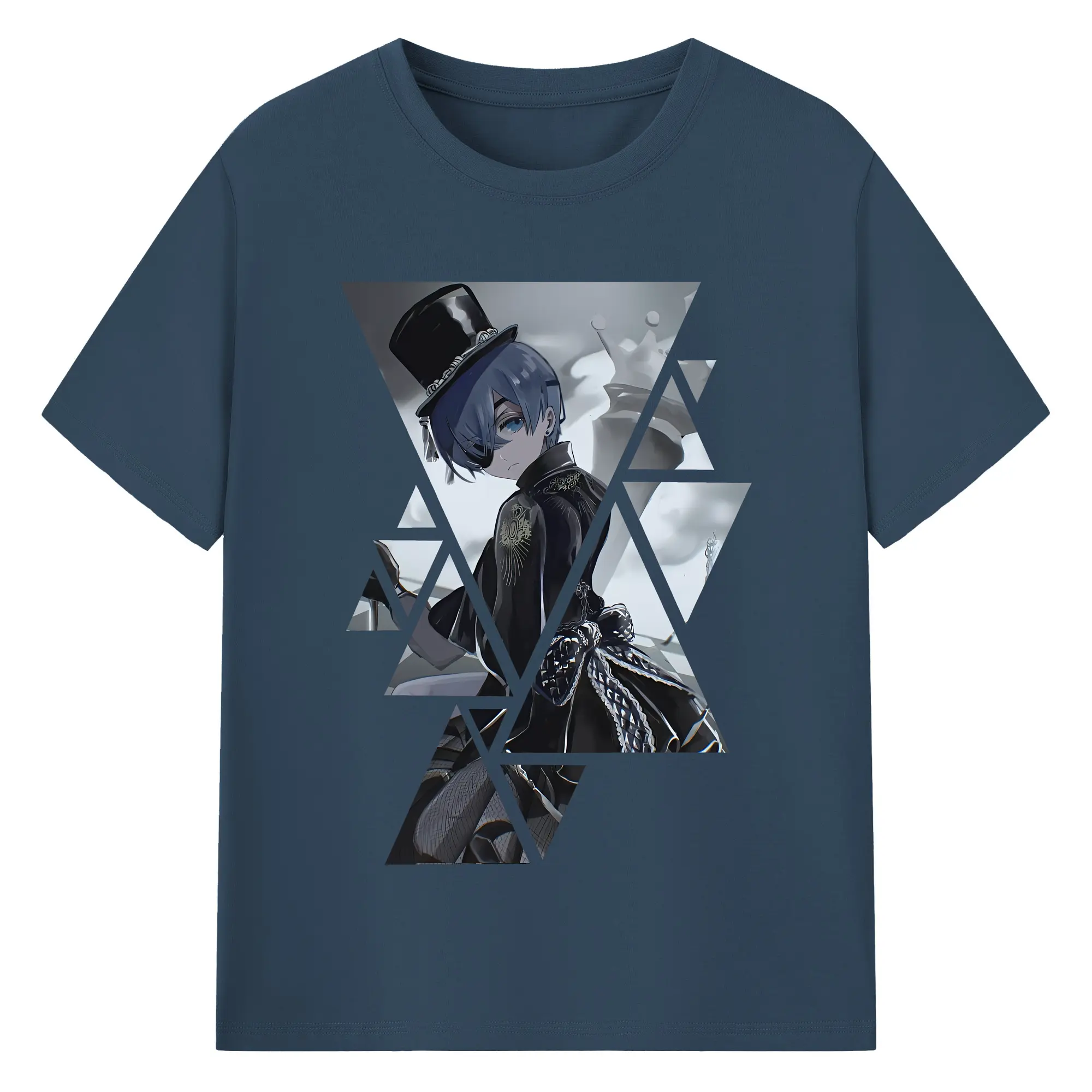 黒執事 グッズ,シエル・ファントムハイヴ - 綿100% 半袖Tシャツ ・ バックプリント ・ 快適 通気性 ・ 日常使い 散歩 スポーツ用