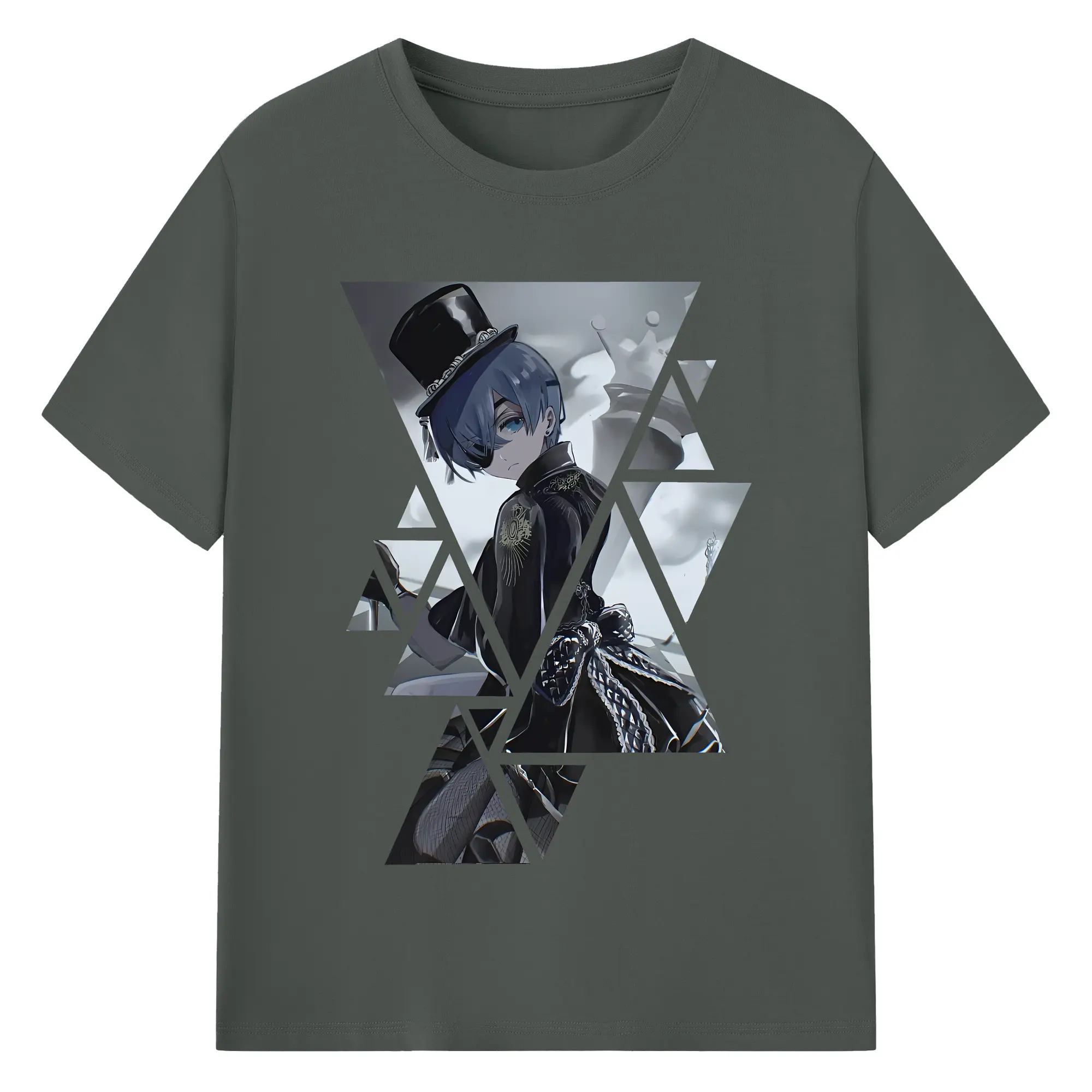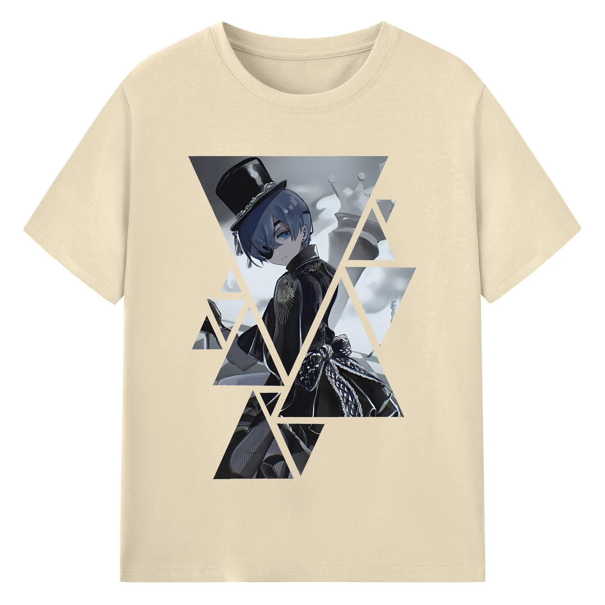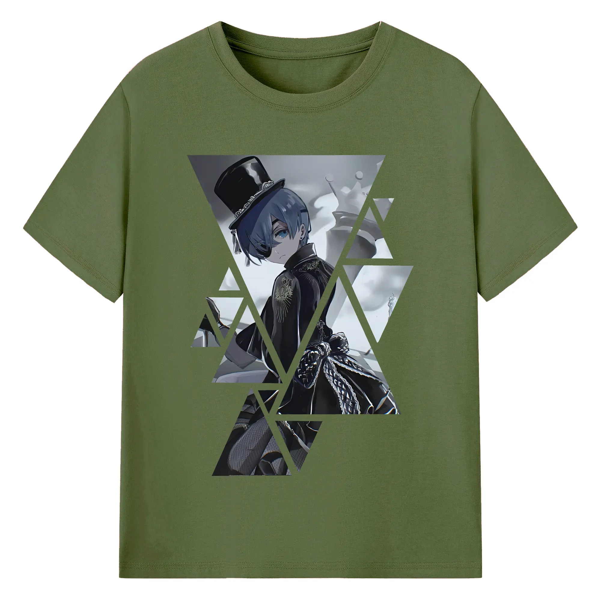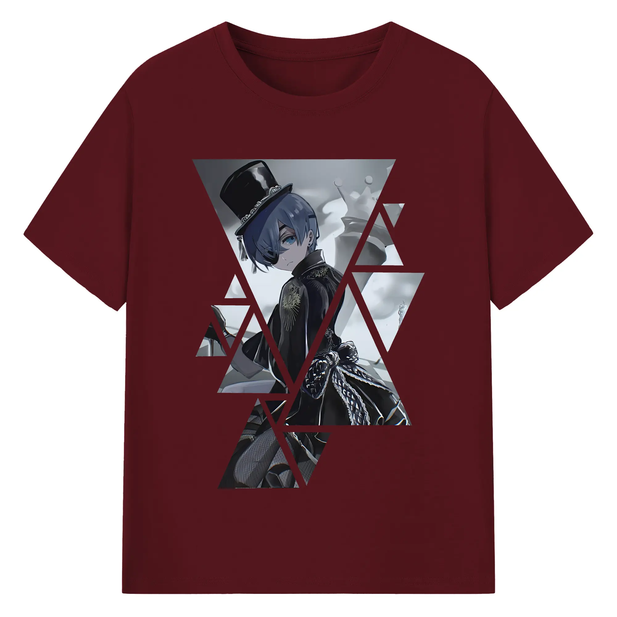 黒執事 グッズ,シエル・ファントムハイヴ - 綿100% 半袖Tシャツ ・ バックプリント ・ 快適 通気性 ・ 日常使い 散歩 スポーツ用