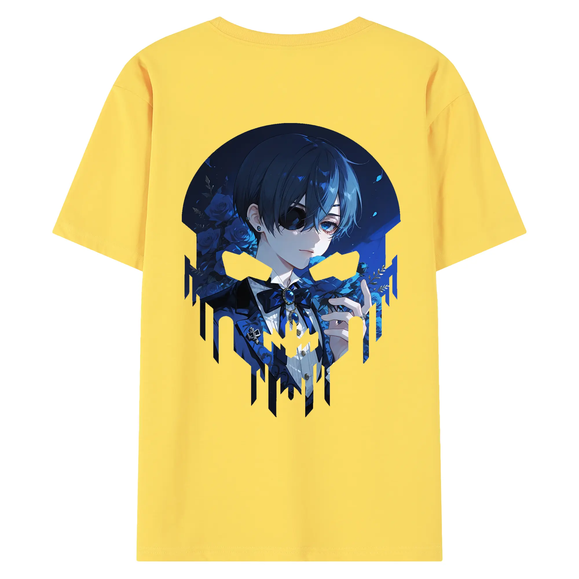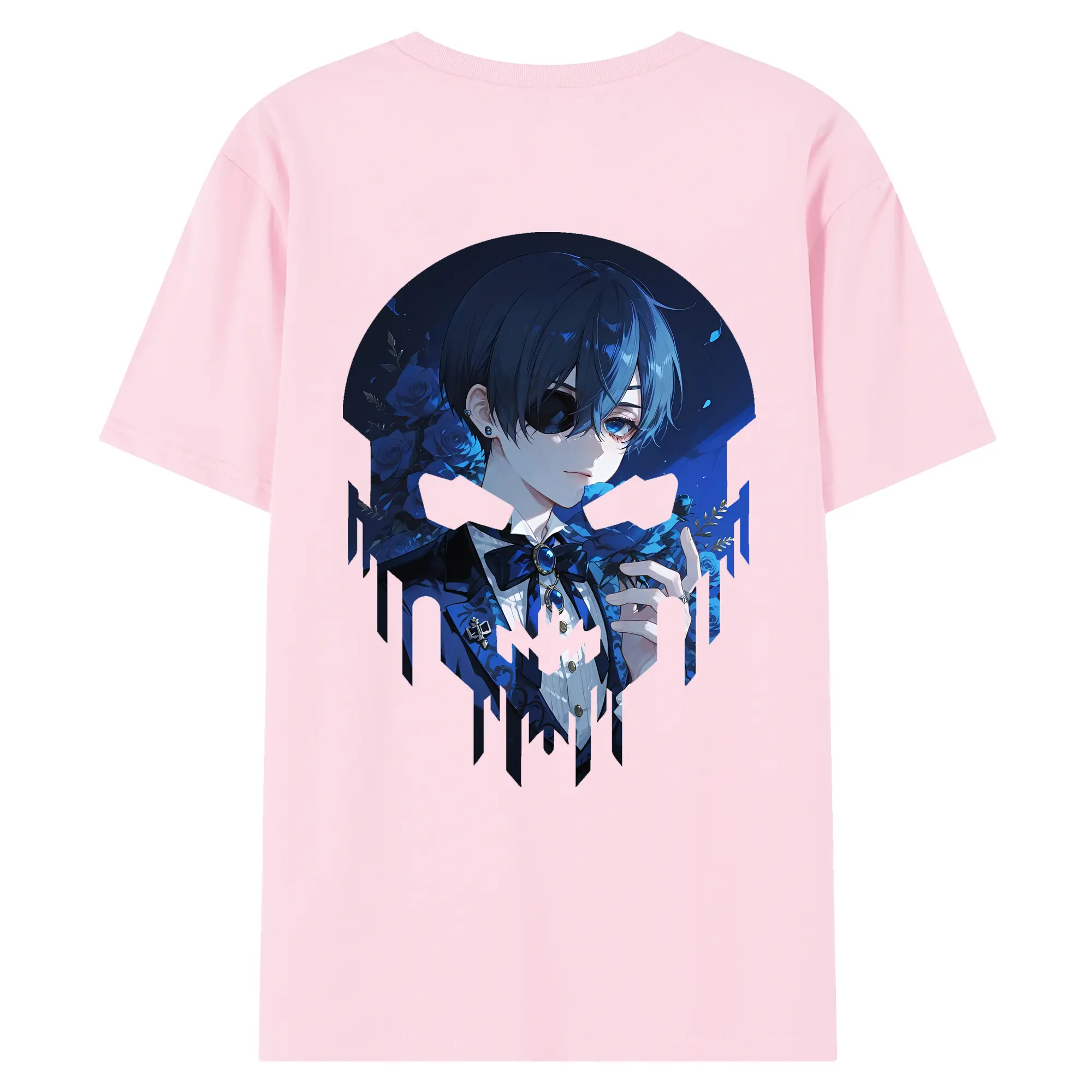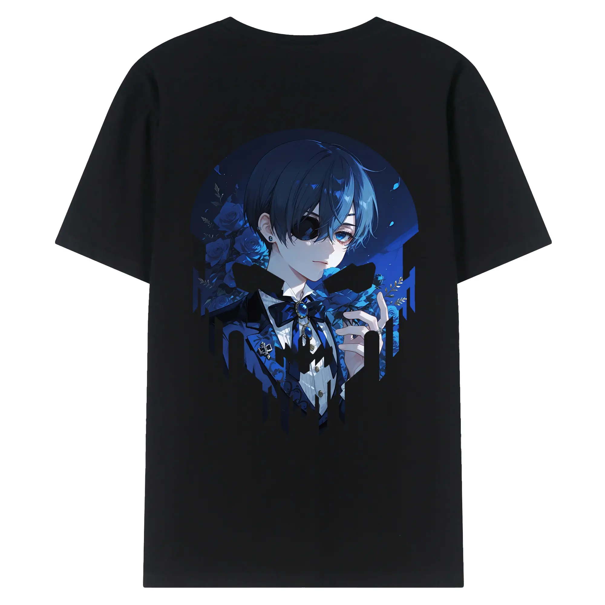 黒執事 グッズ,シエル・ファントムハイヴ - 綿100% 半袖Tシャツ ・ フロントプリント ・ 快適 通気性 ・ 日常使い 散歩 スポーツ用