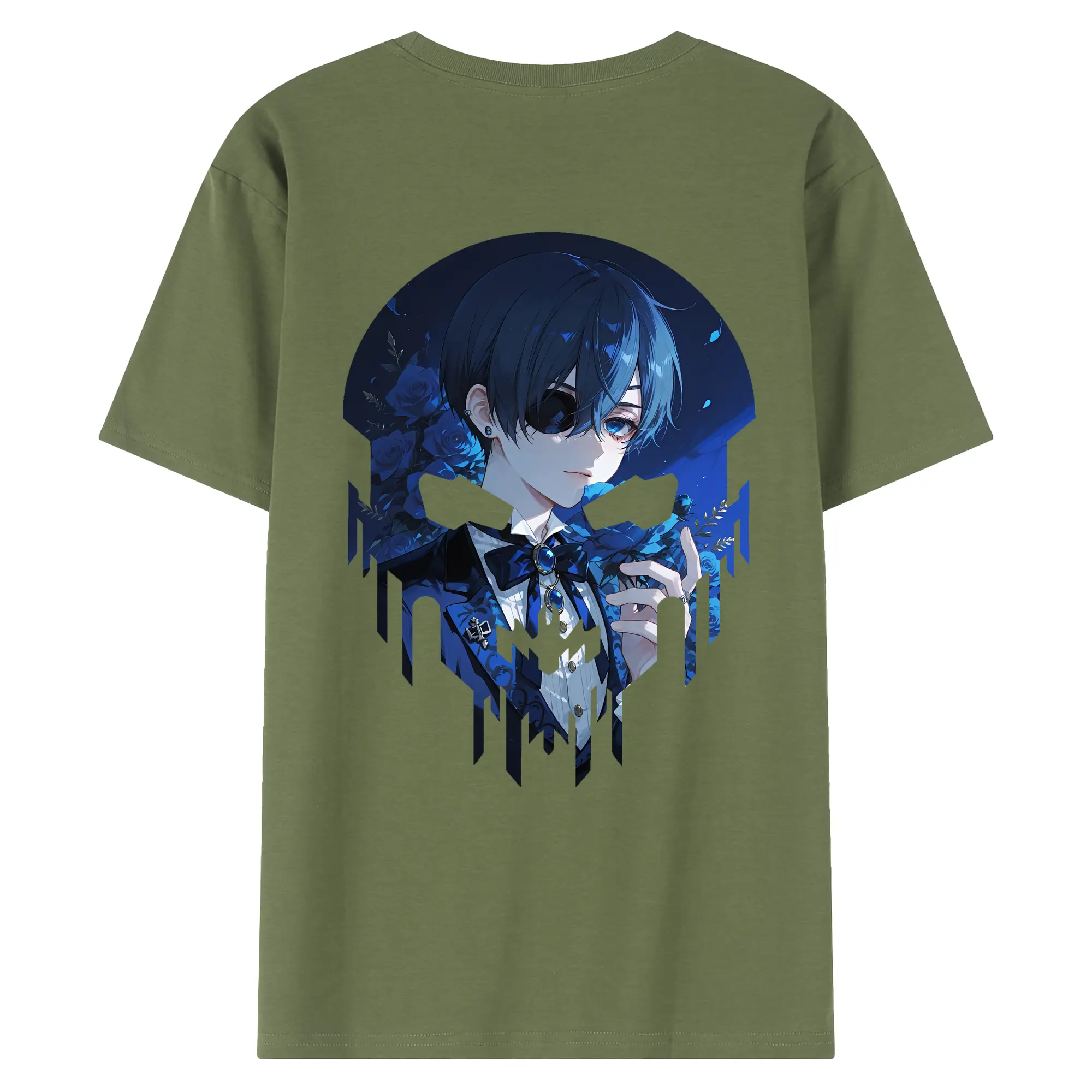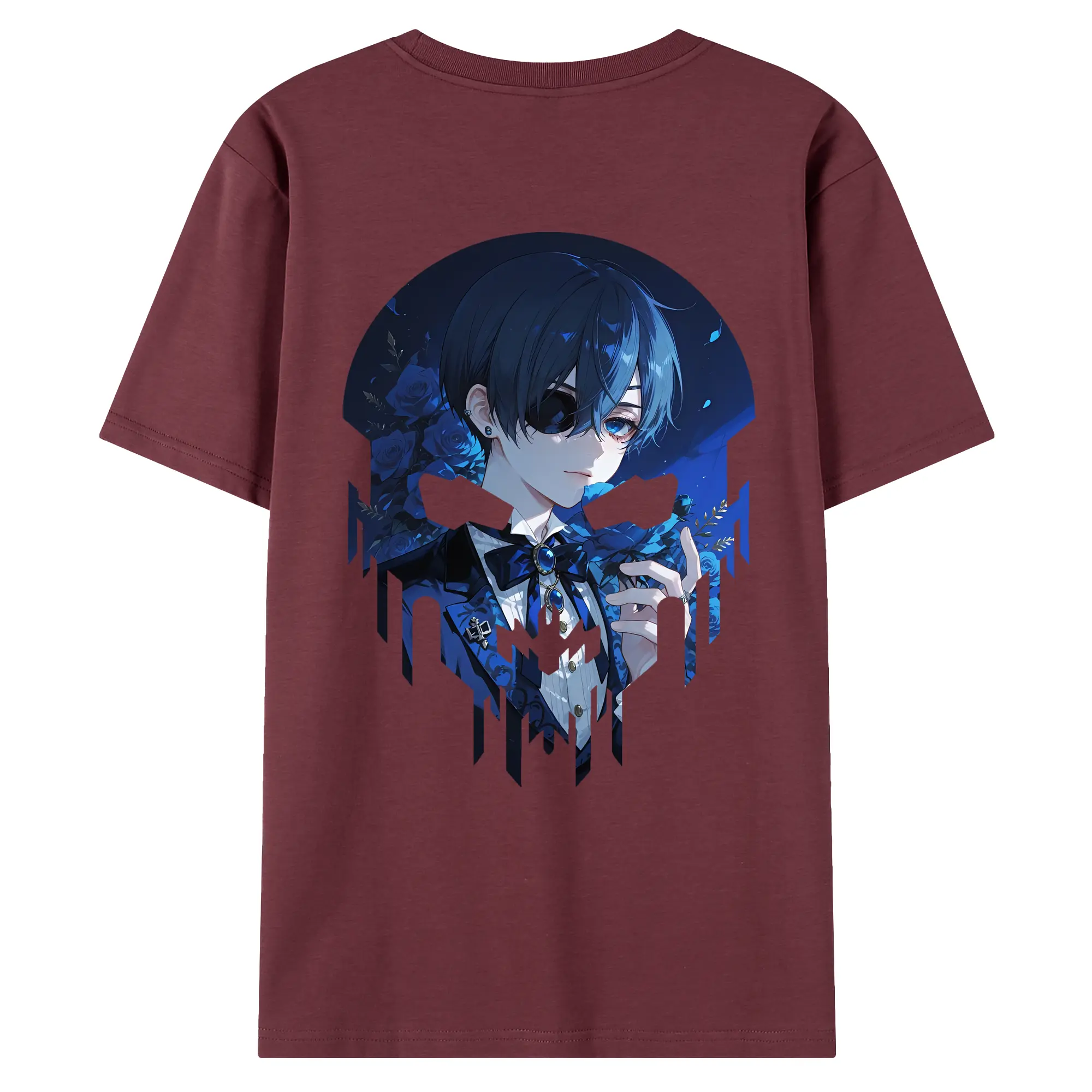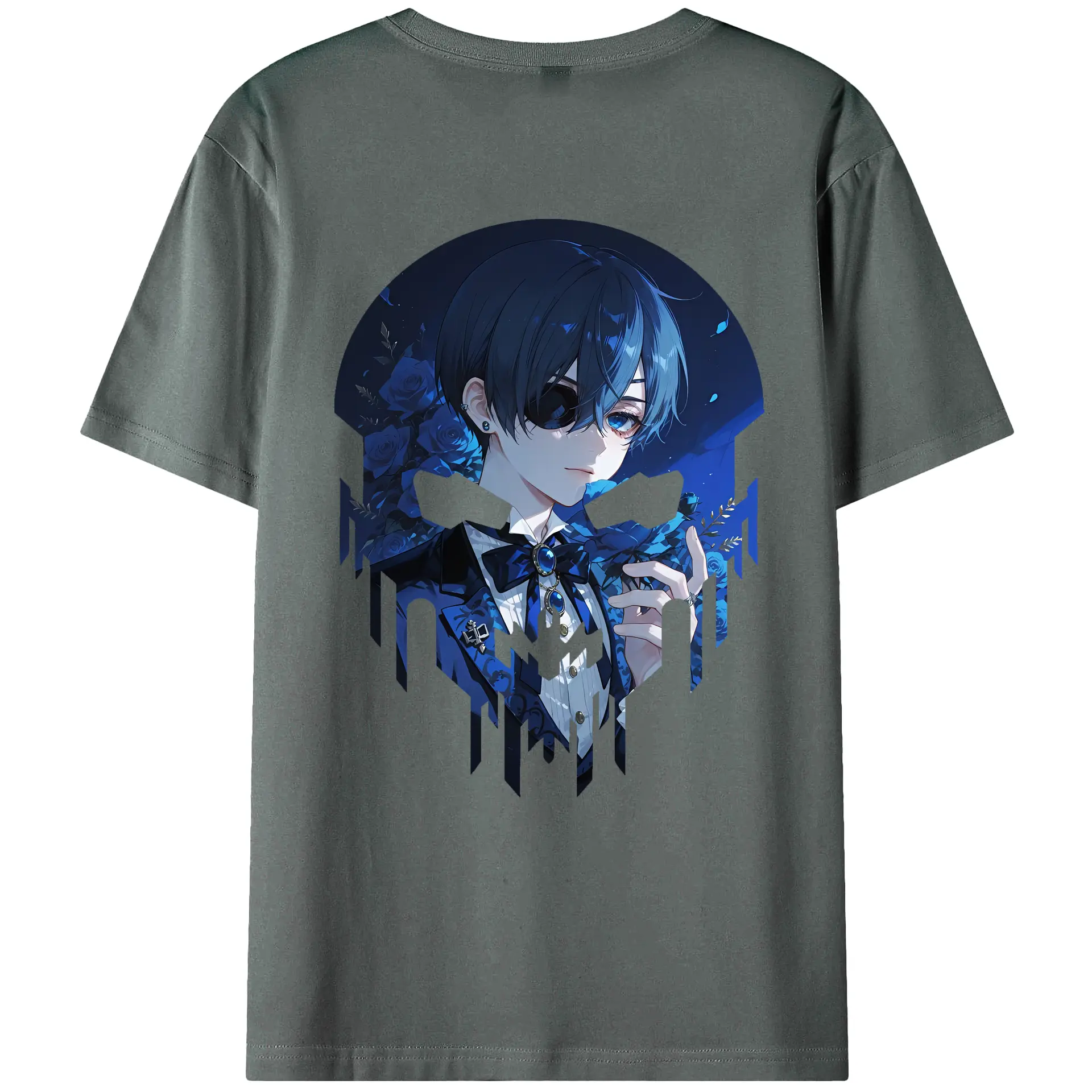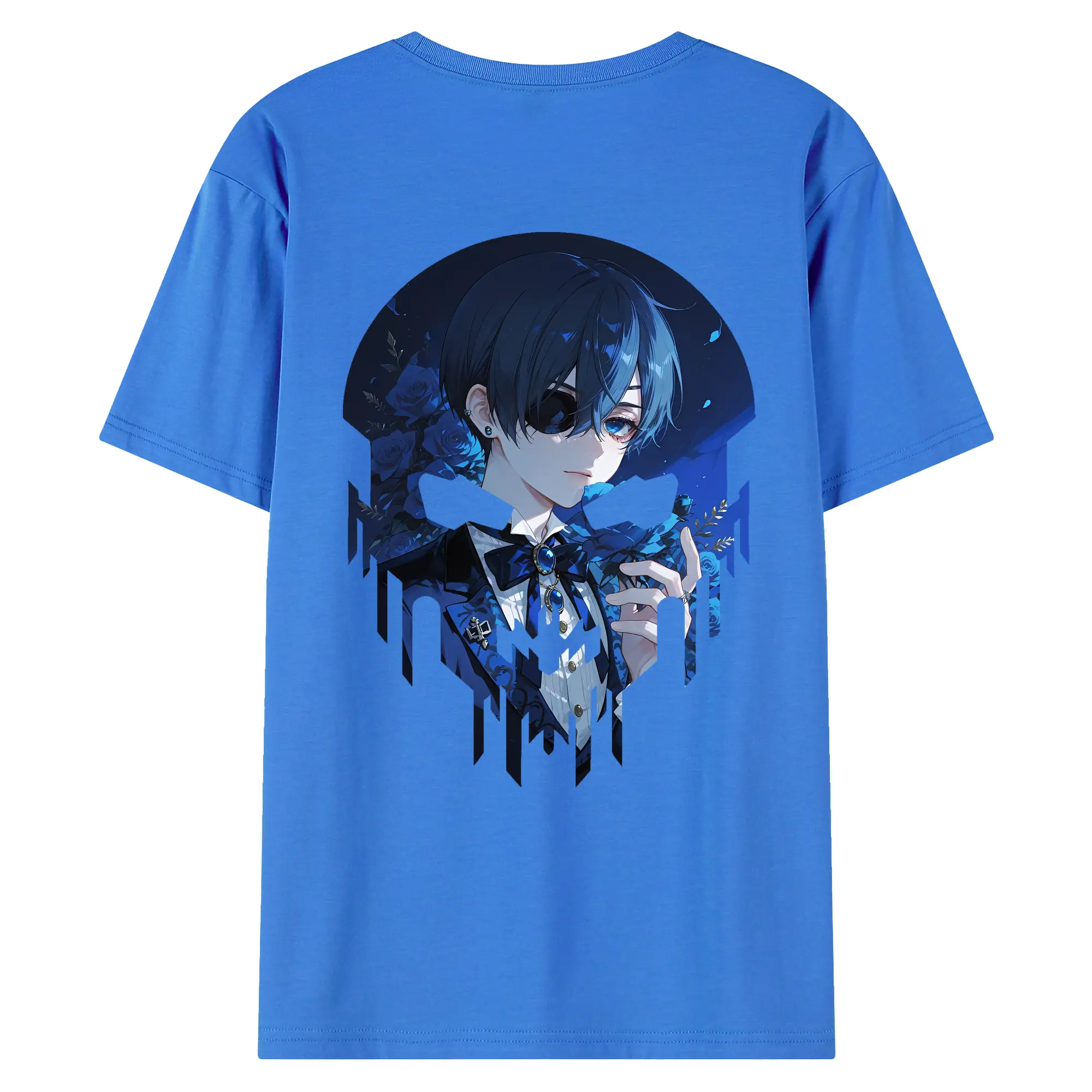 黒執事 グッズ,シエル・ファントムハイヴ - 綿100% 半袖Tシャツ ・ フロントプリント ・ 快適 通気性 ・ 日常使い 散歩 スポーツ用