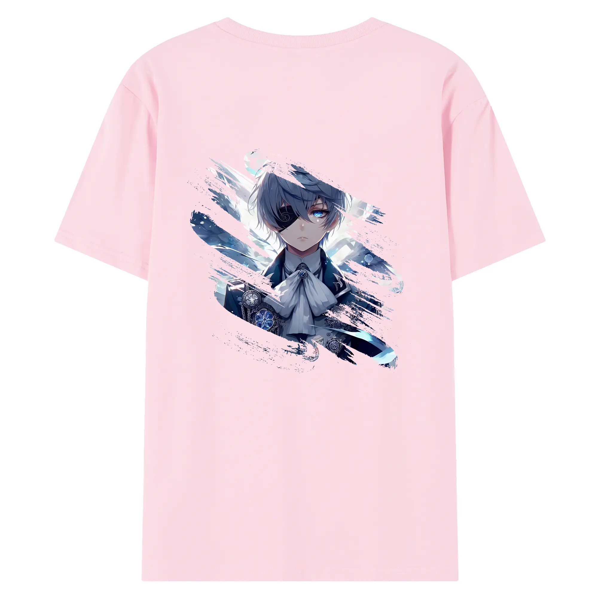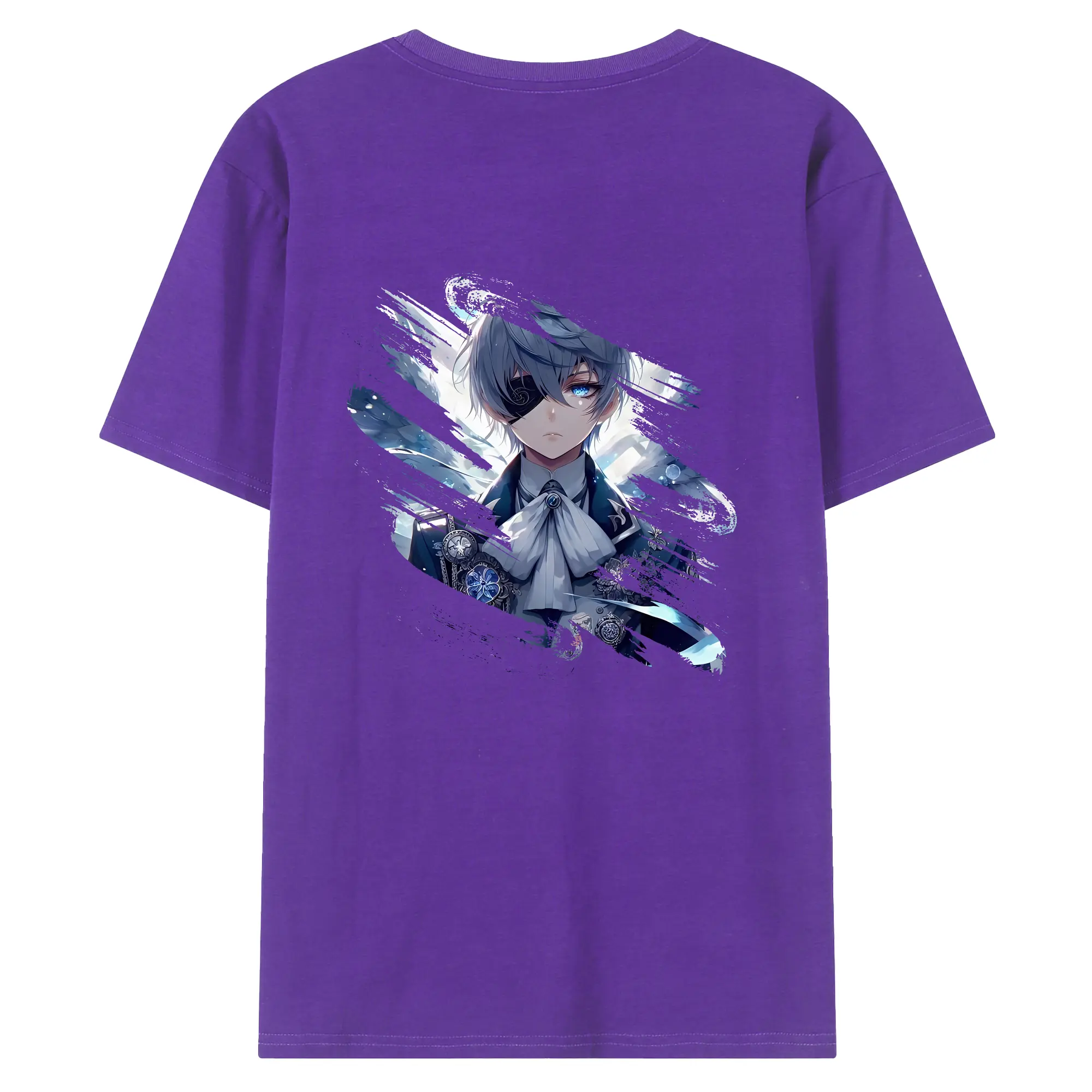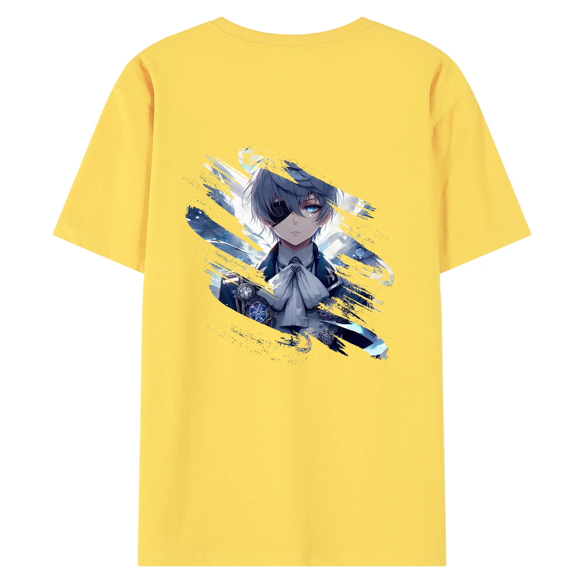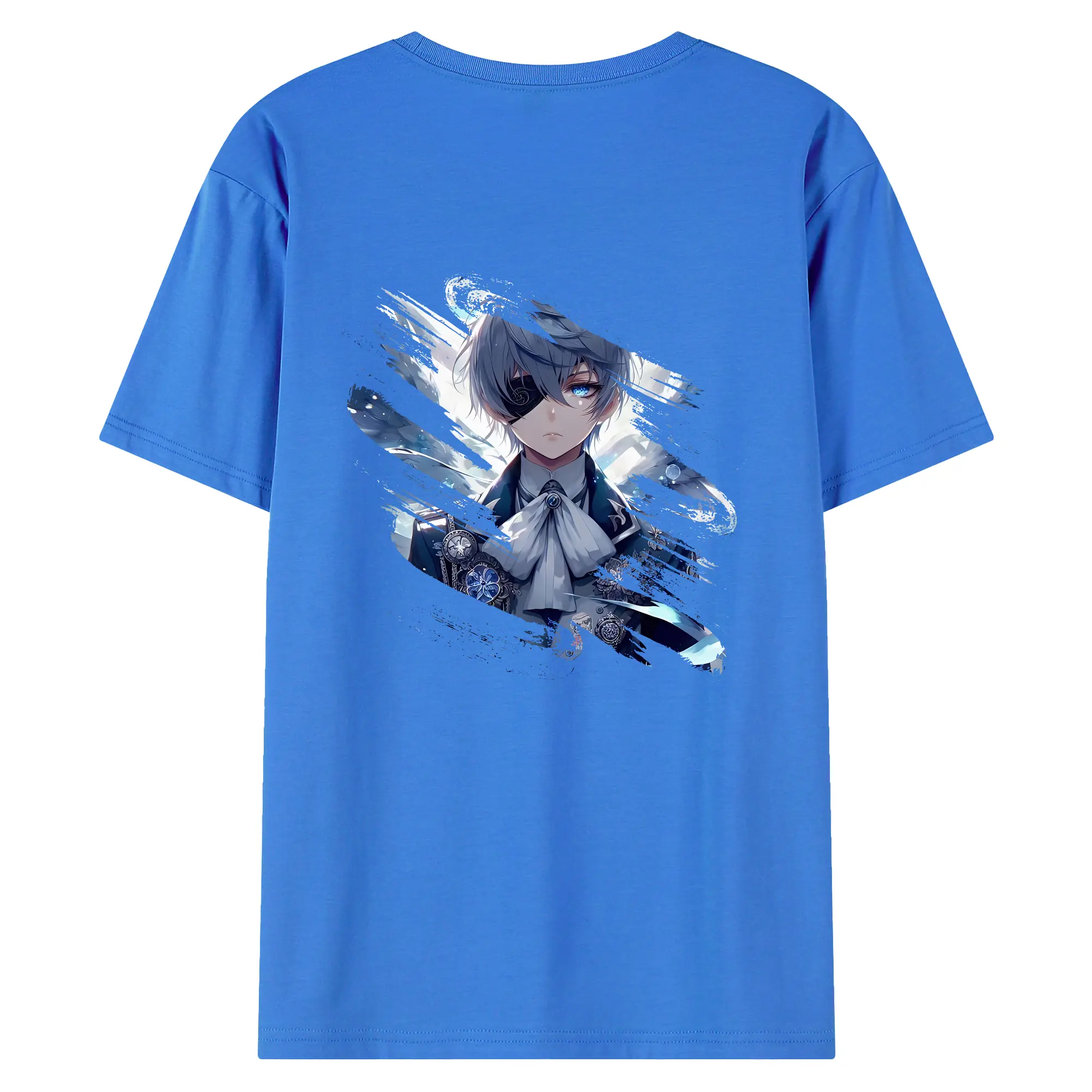 黒執事 グッズ,シエル・ファントムハイヴ - 綿100% 半袖Tシャツ ・ フロントプリント ・ 快適 通気性 ・ 日常使い 散歩 スポーツ用