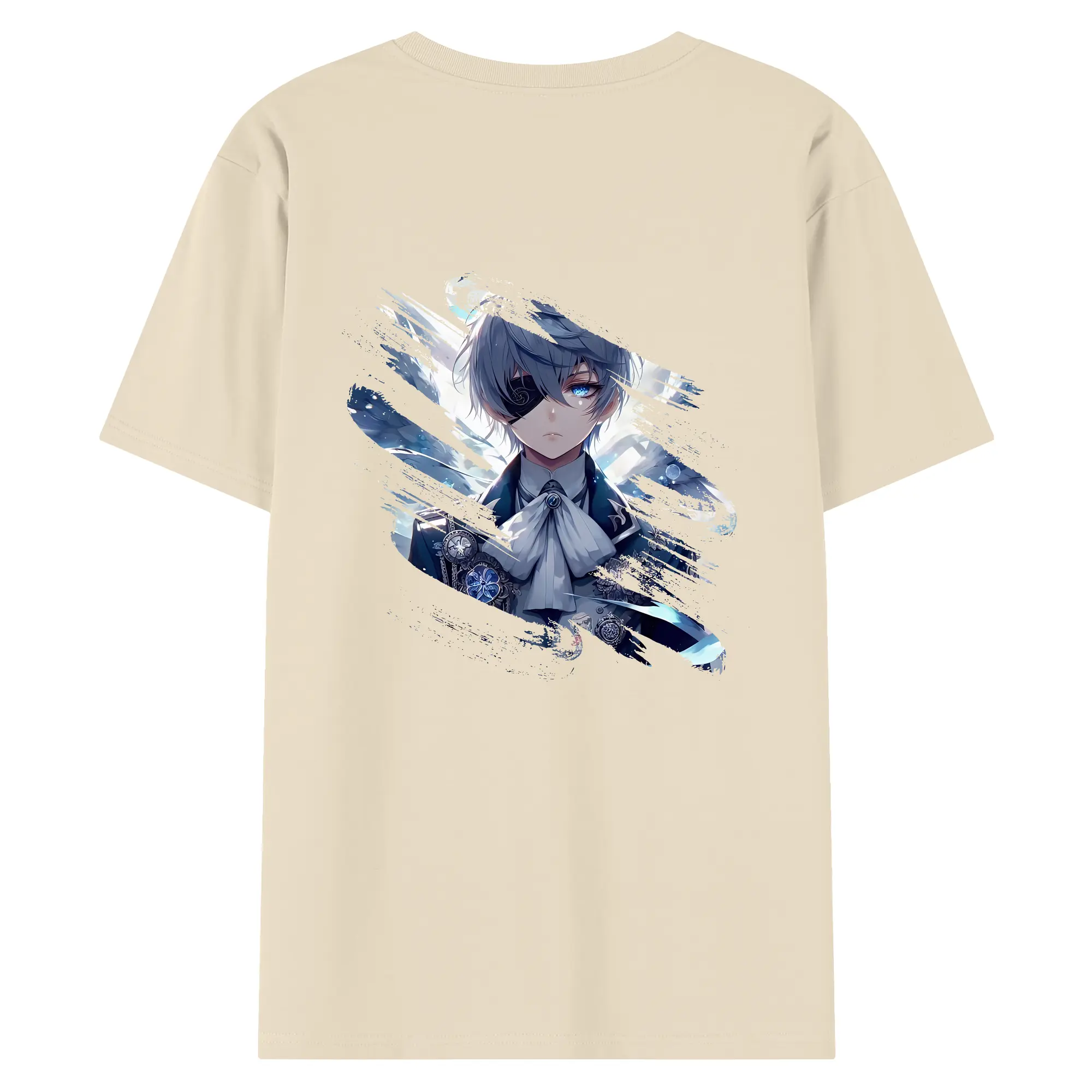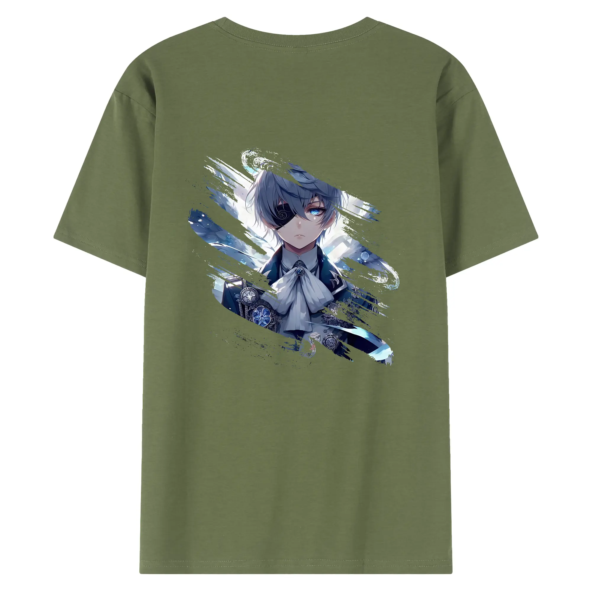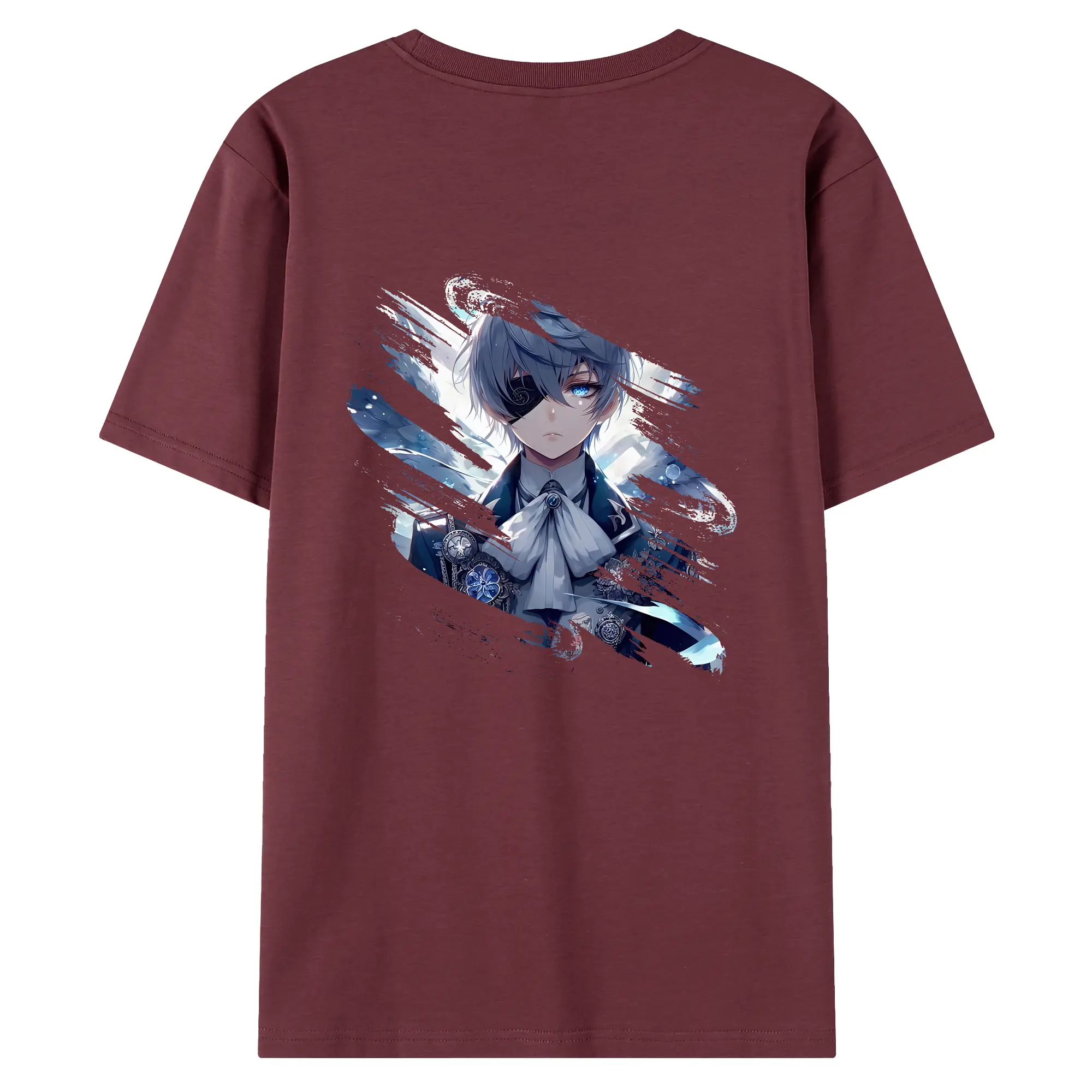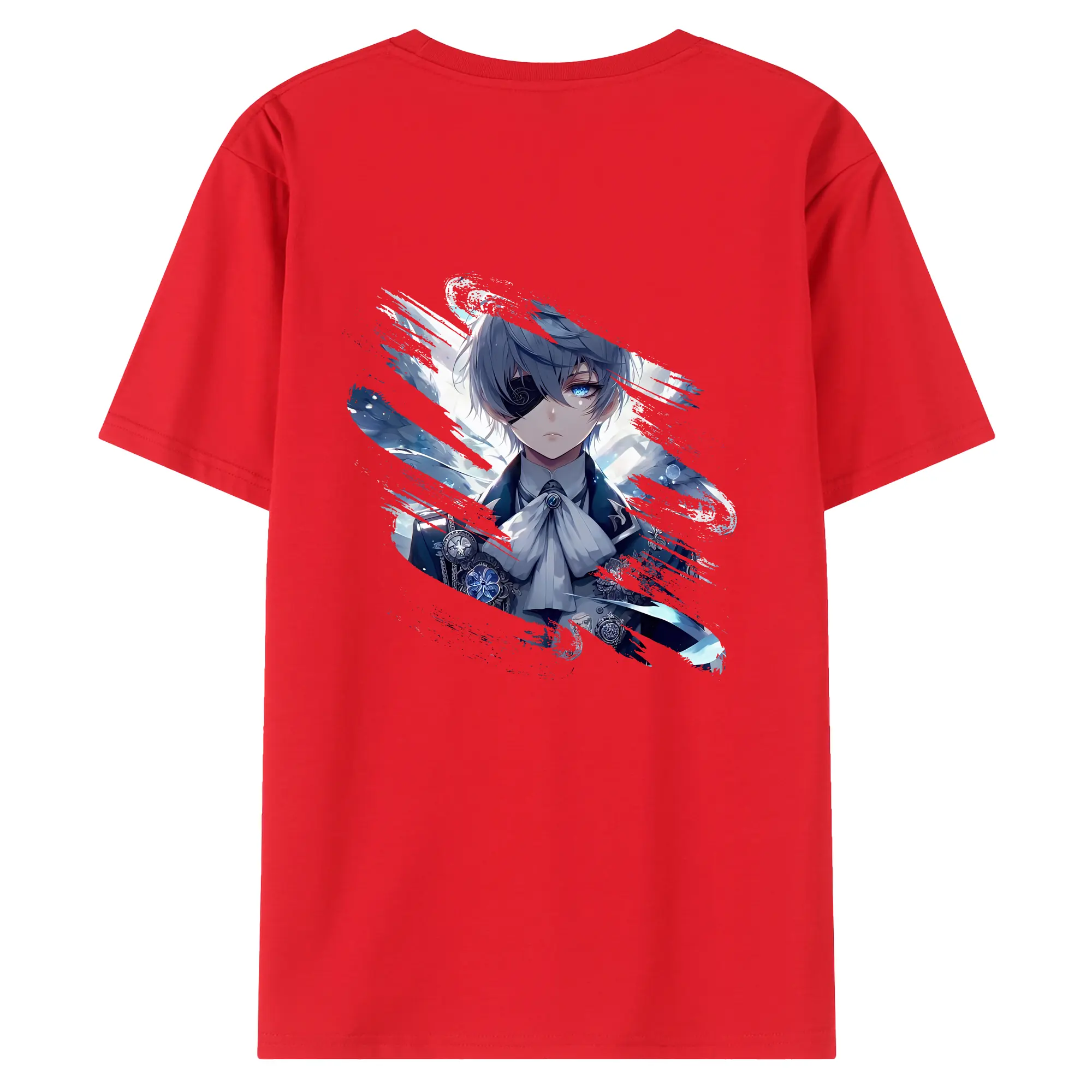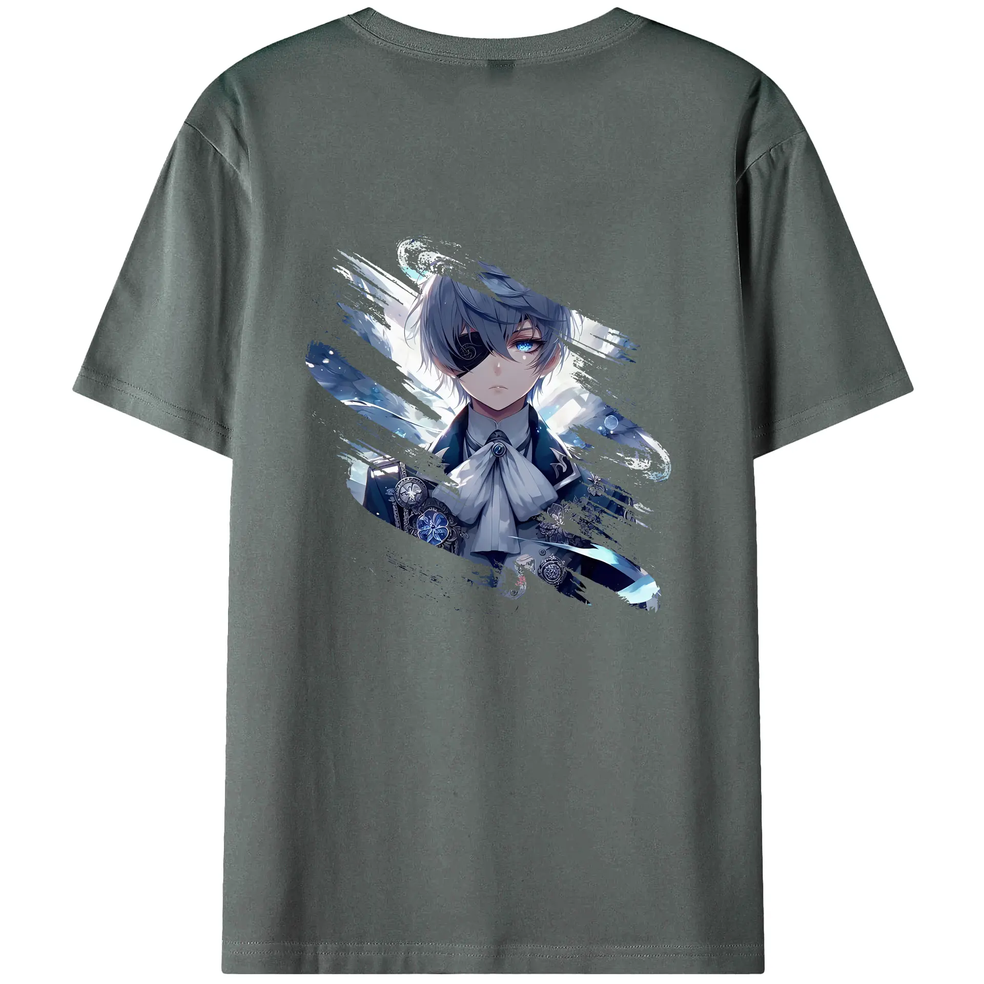 黒執事 グッズ,シエル・ファントムハイヴ - 綿100% 半袖Tシャツ ・ フロントプリント ・ 快適 通気性 ・ 日常使い 散歩 スポーツ用