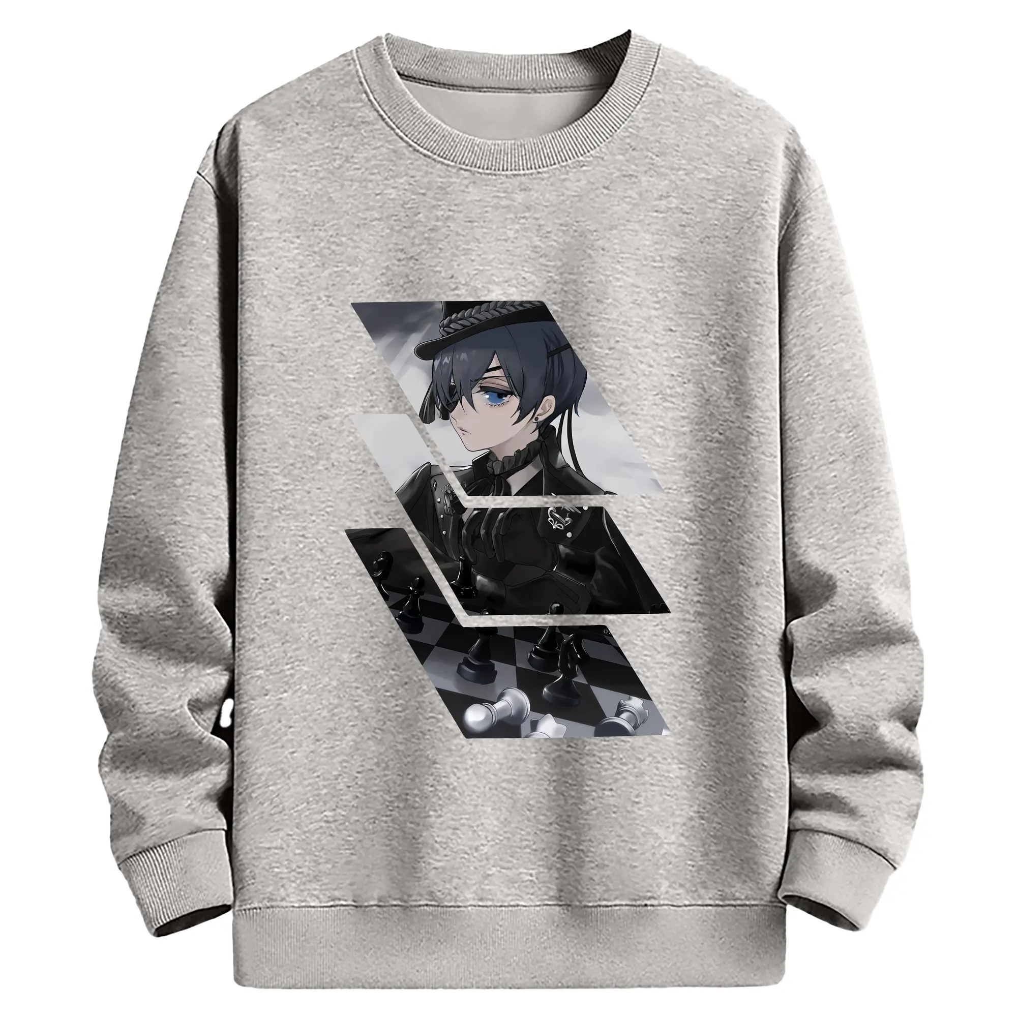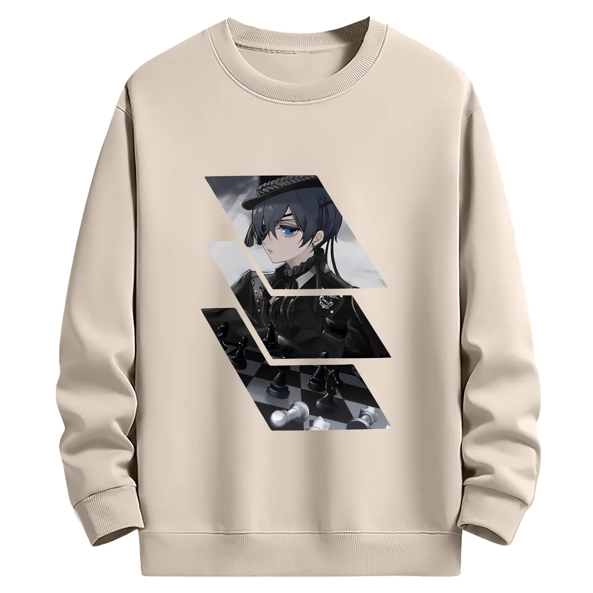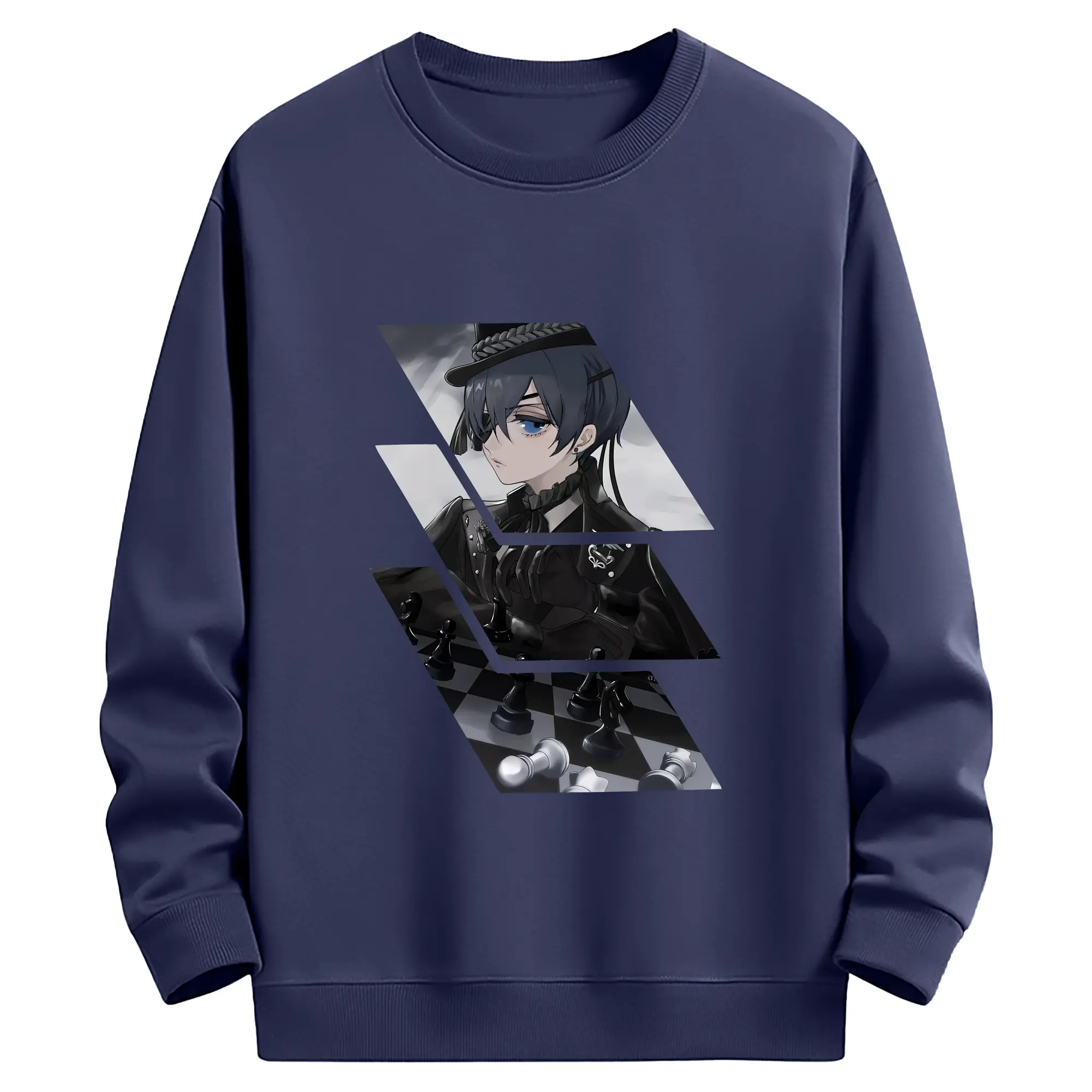 黒執事 グッズ,シエル・ファントムハイヴ - 薄手 クルーネック スウェット 裏毛260g · ポリエステル 春秋向け カジュアル 男女兼用 · トレーナー デイリー スポーツ 散歩に最適