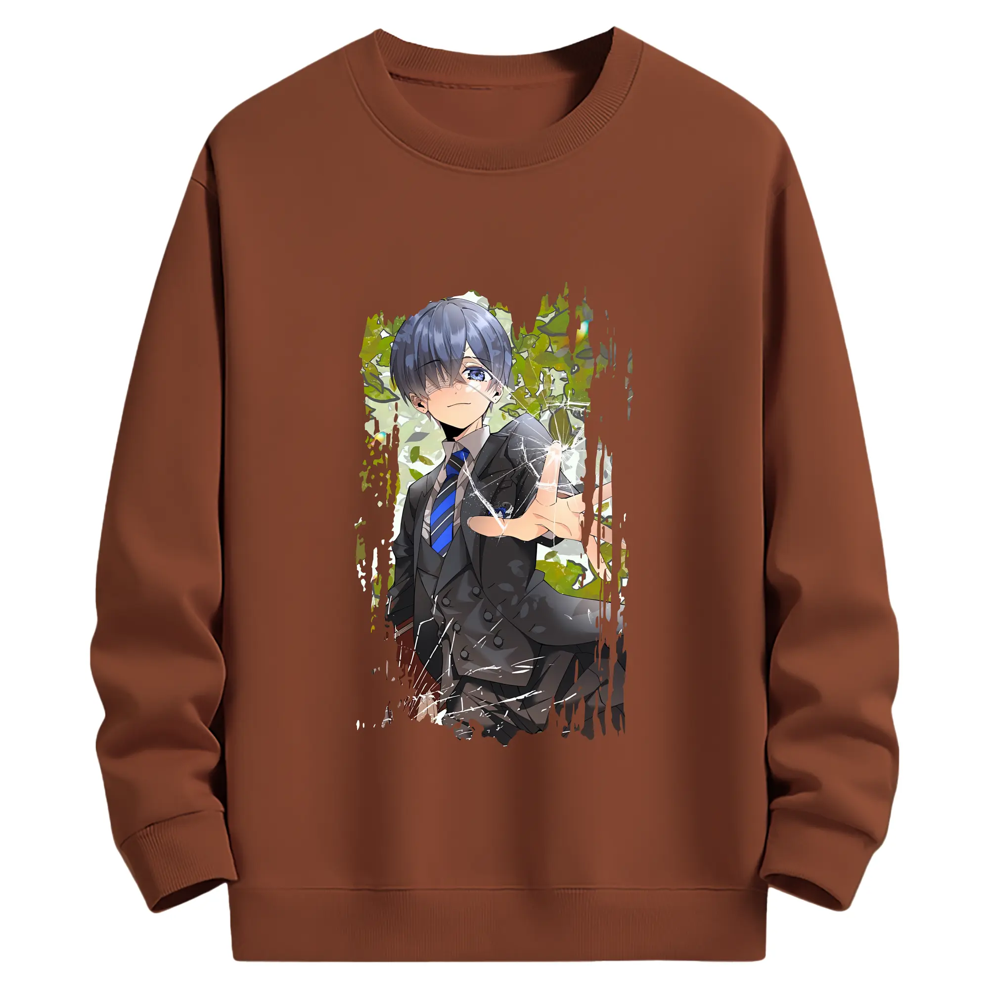 黒執事 グッズ,シエル・ファントムハイヴ - 薄手 クルーネック スウェット 裏毛260g · ポリエステル 春秋向け カジュアル 男女兼用 · トレーナー デイリー スポーツ 散歩に最適