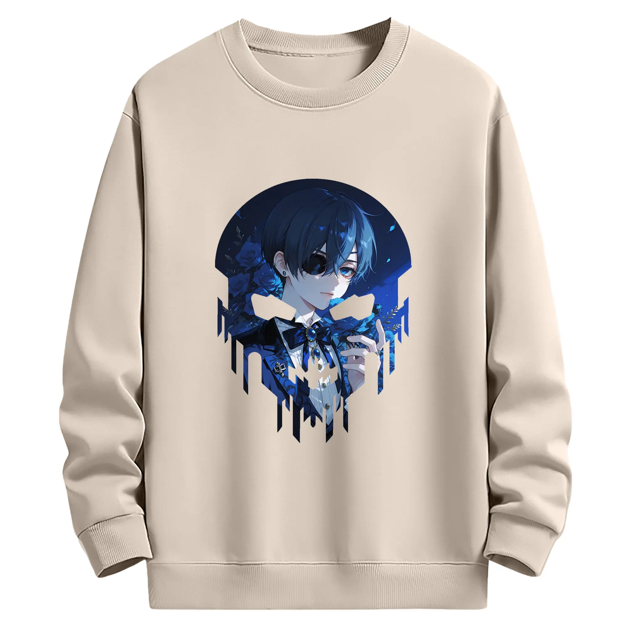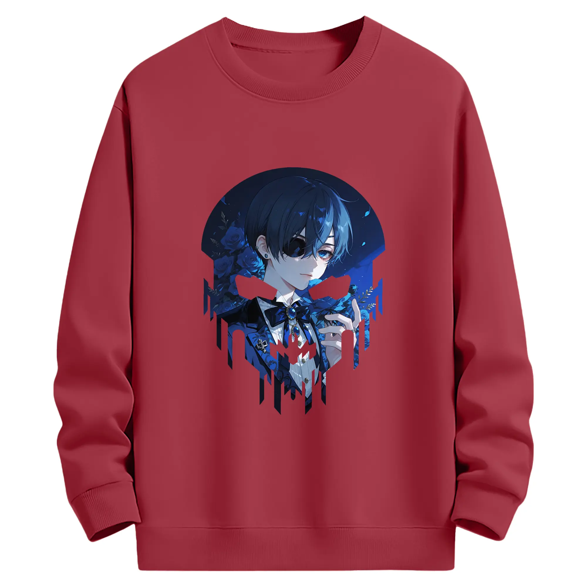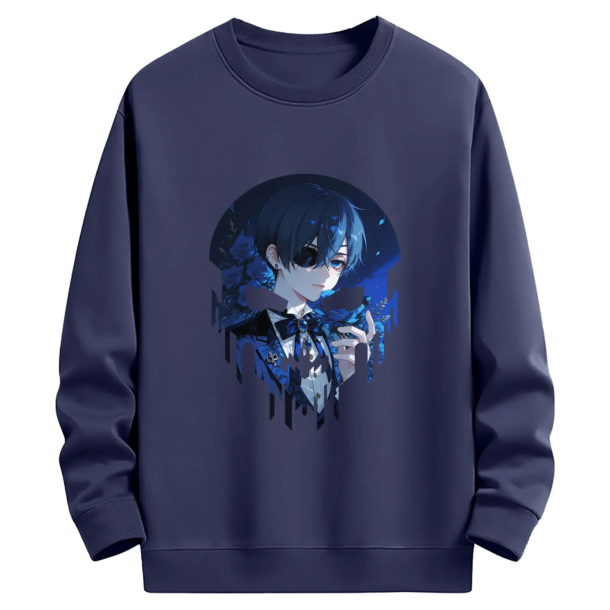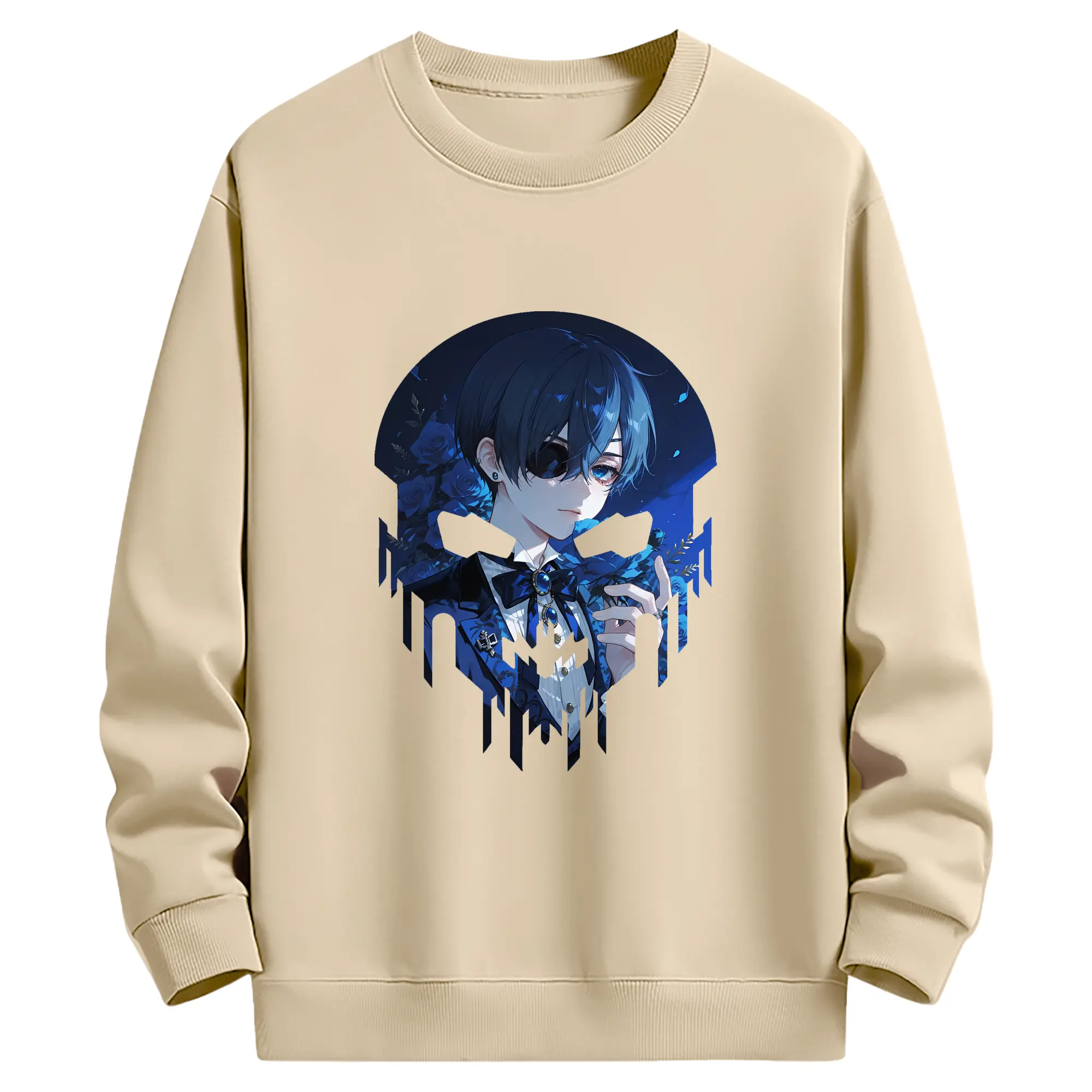 黒執事 グッズ,シエル・ファントムハイヴ - 薄手 クルーネック スウェット 裏毛260g · ポリエステル 春秋向け カジュアル 男女兼用 · トレーナー デイリー スポーツ 散歩に最適