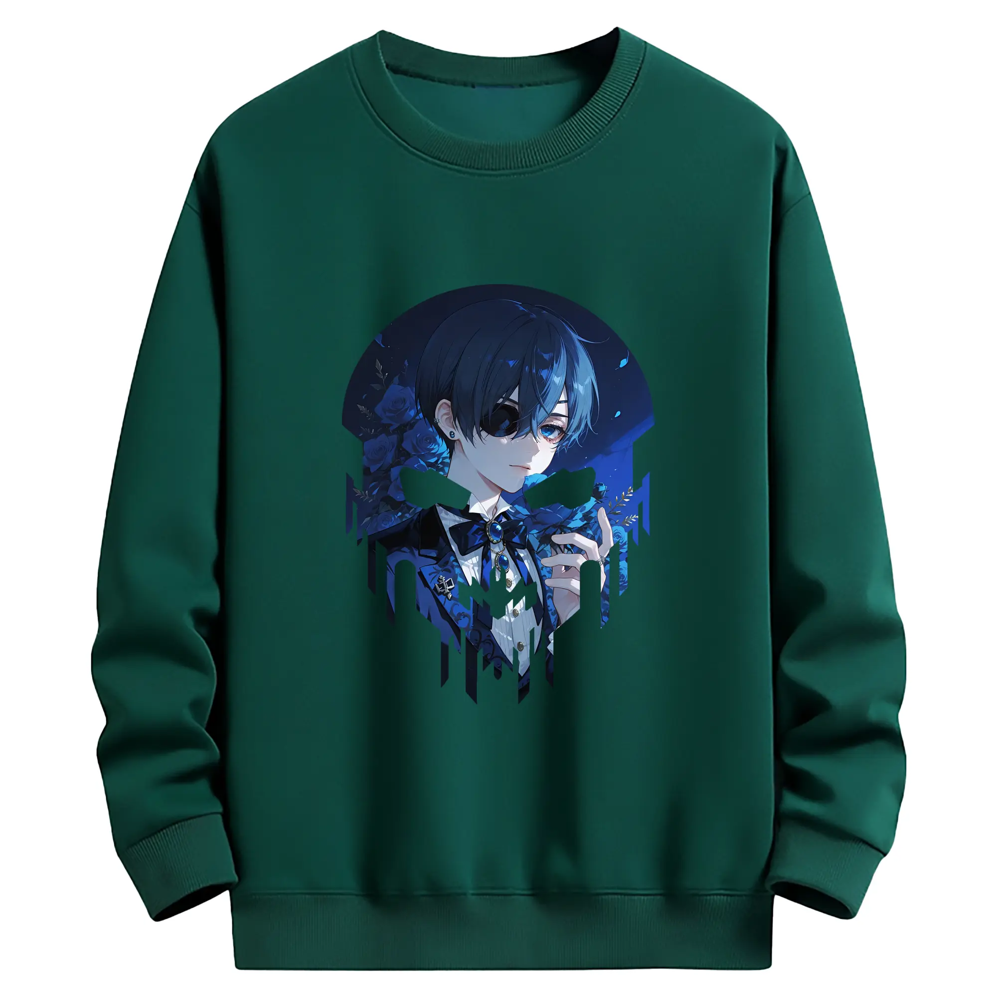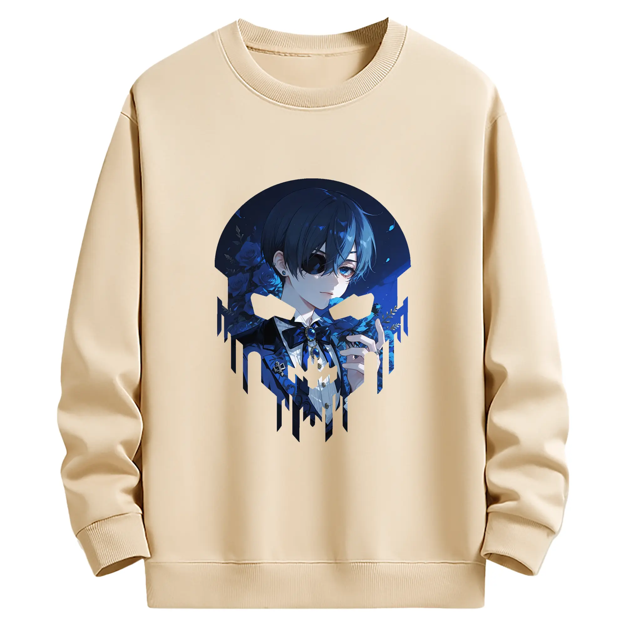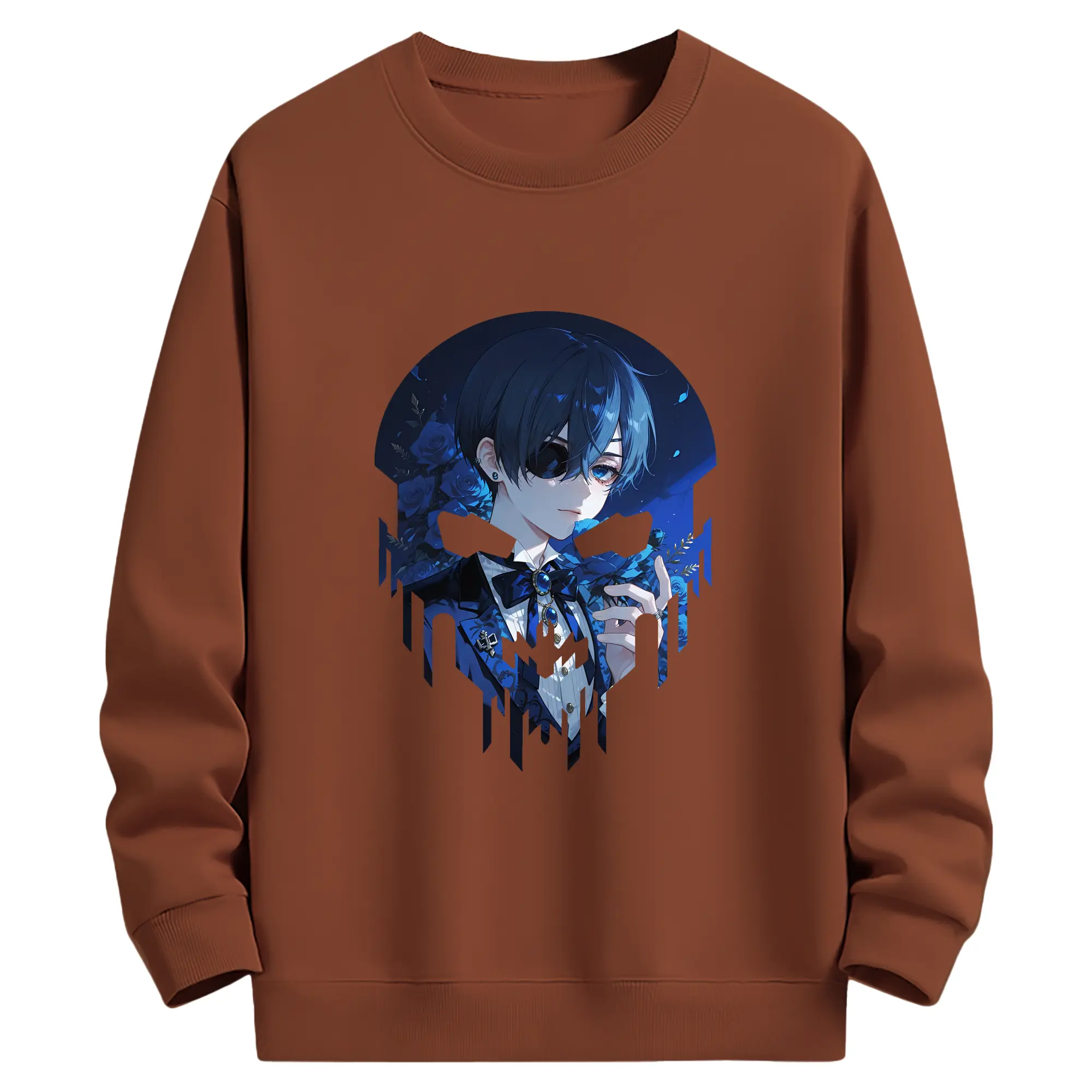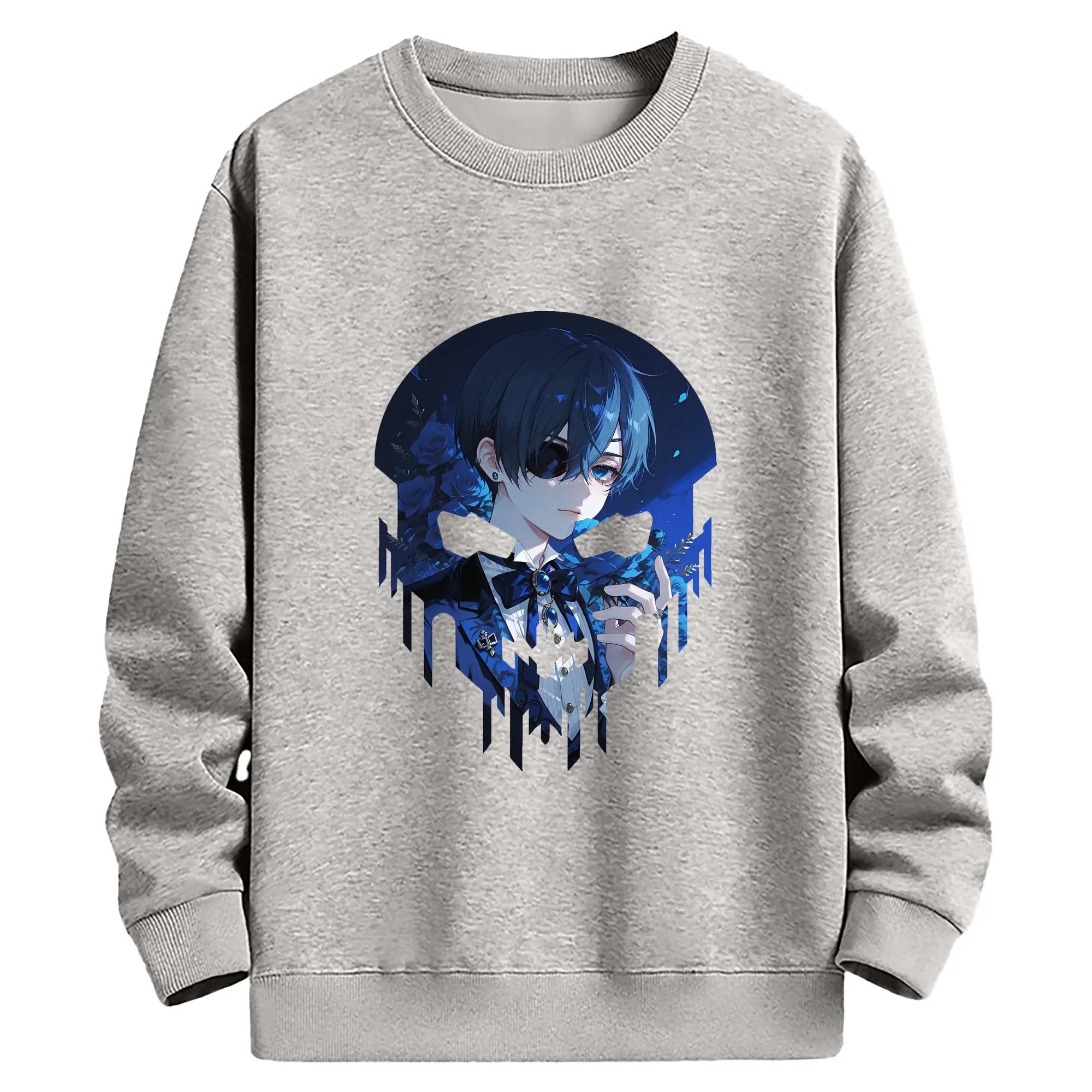黒執事 グッズ,シエル・ファントムハイヴ - 薄手 クルーネック スウェット 裏毛260g · ポリエステル 春秋向け カジュアル 男女兼用 · トレーナー デイリー スポーツ 散歩に最適