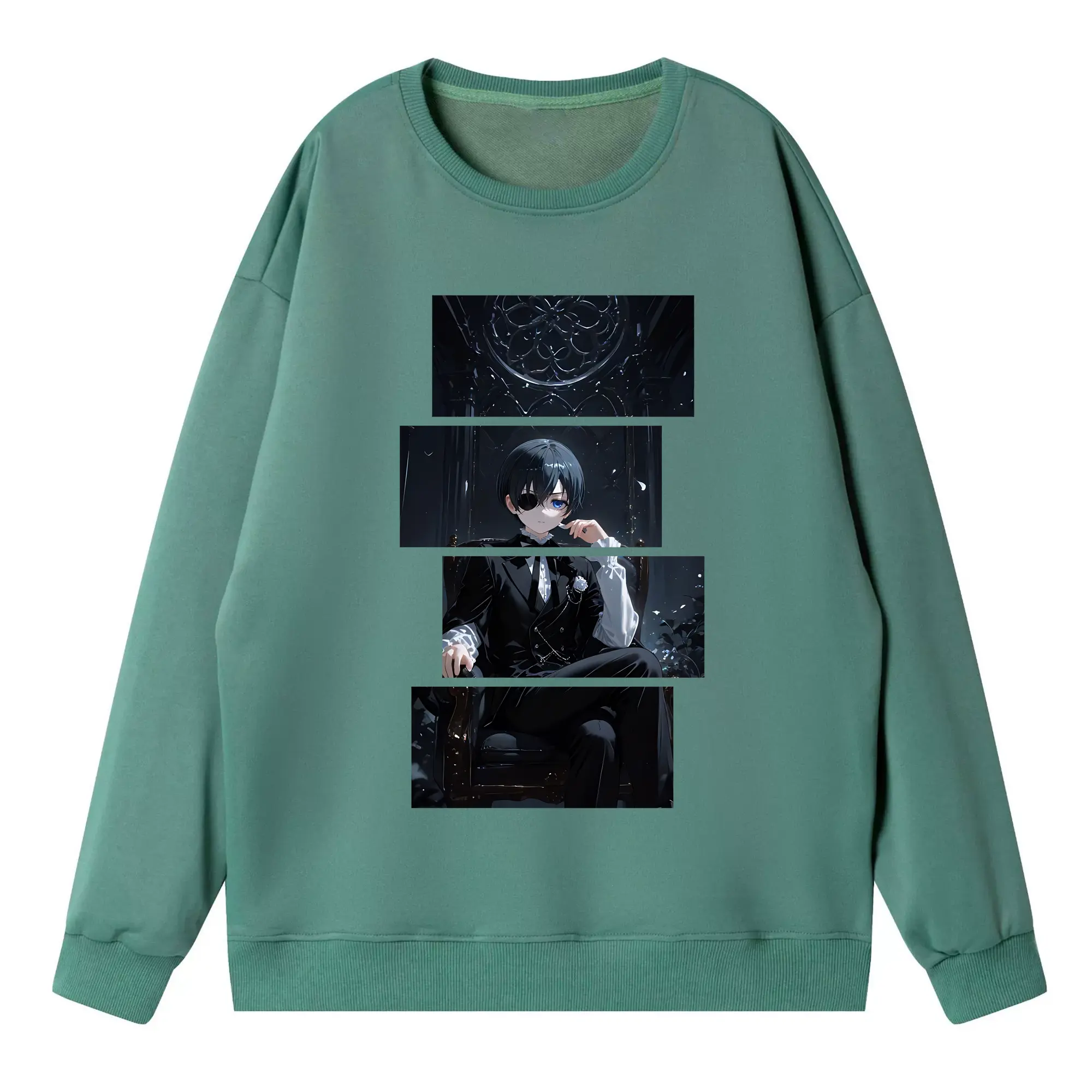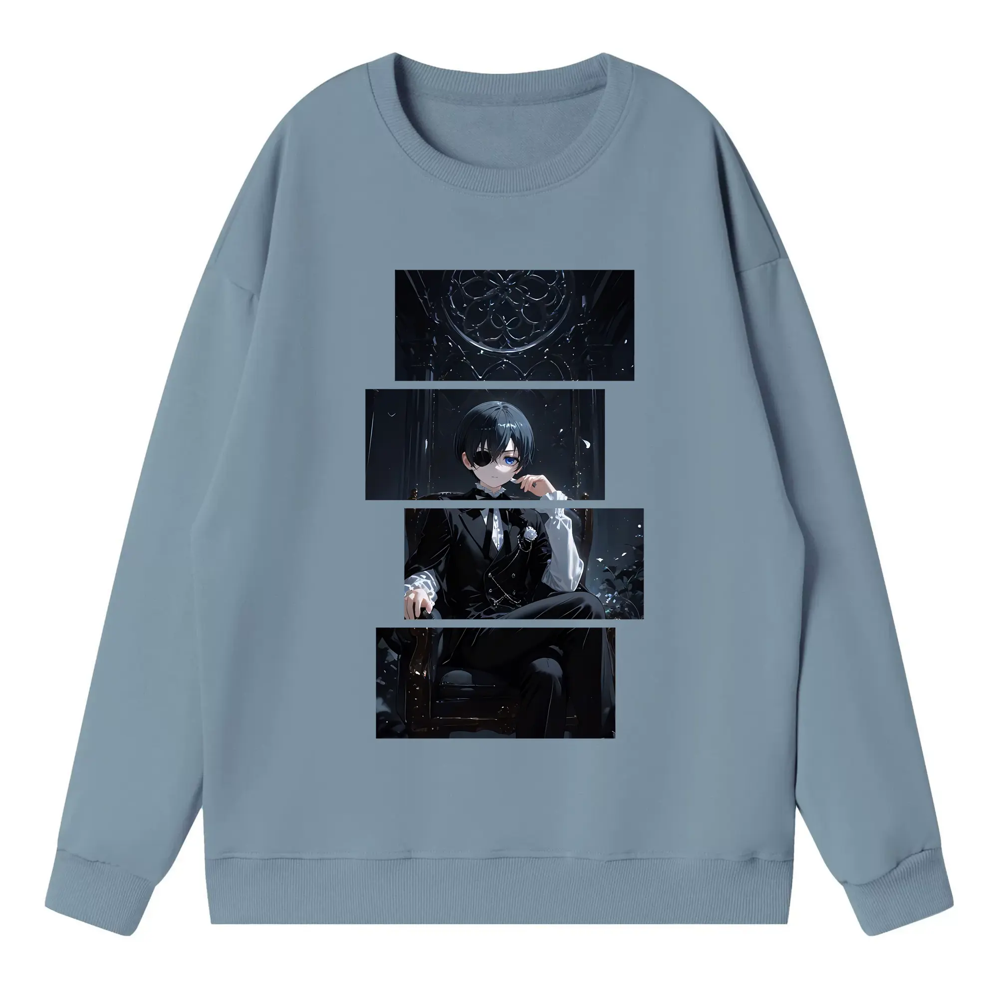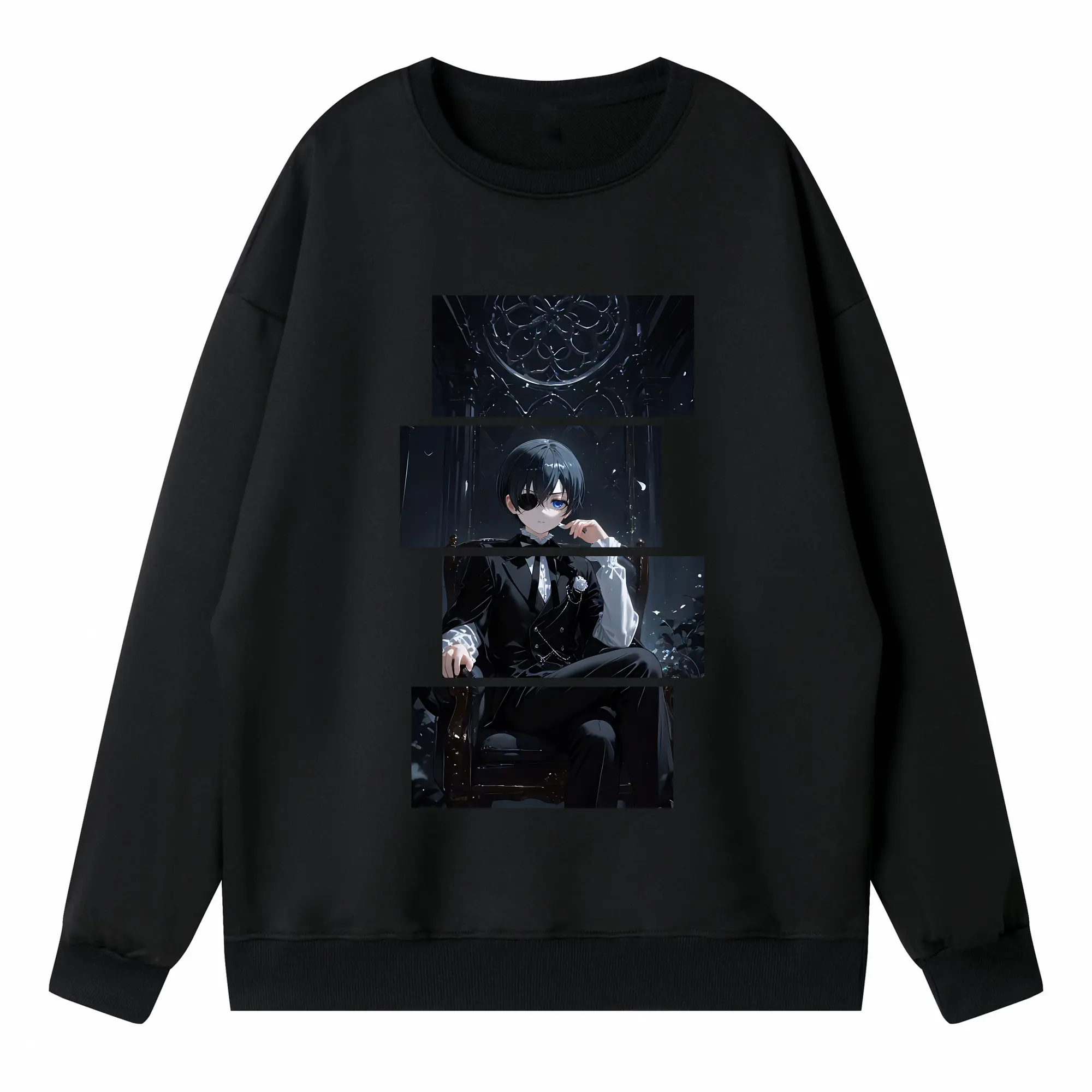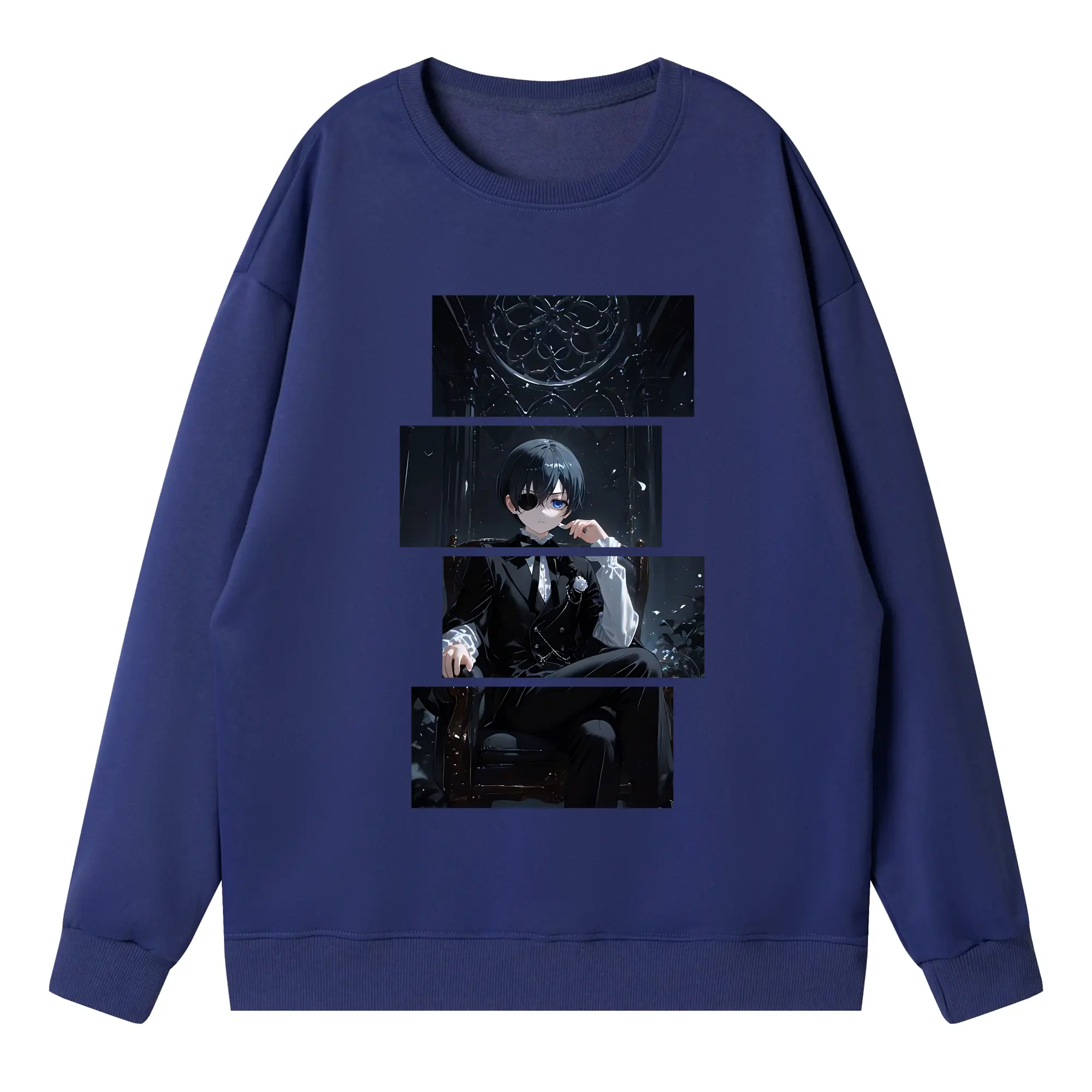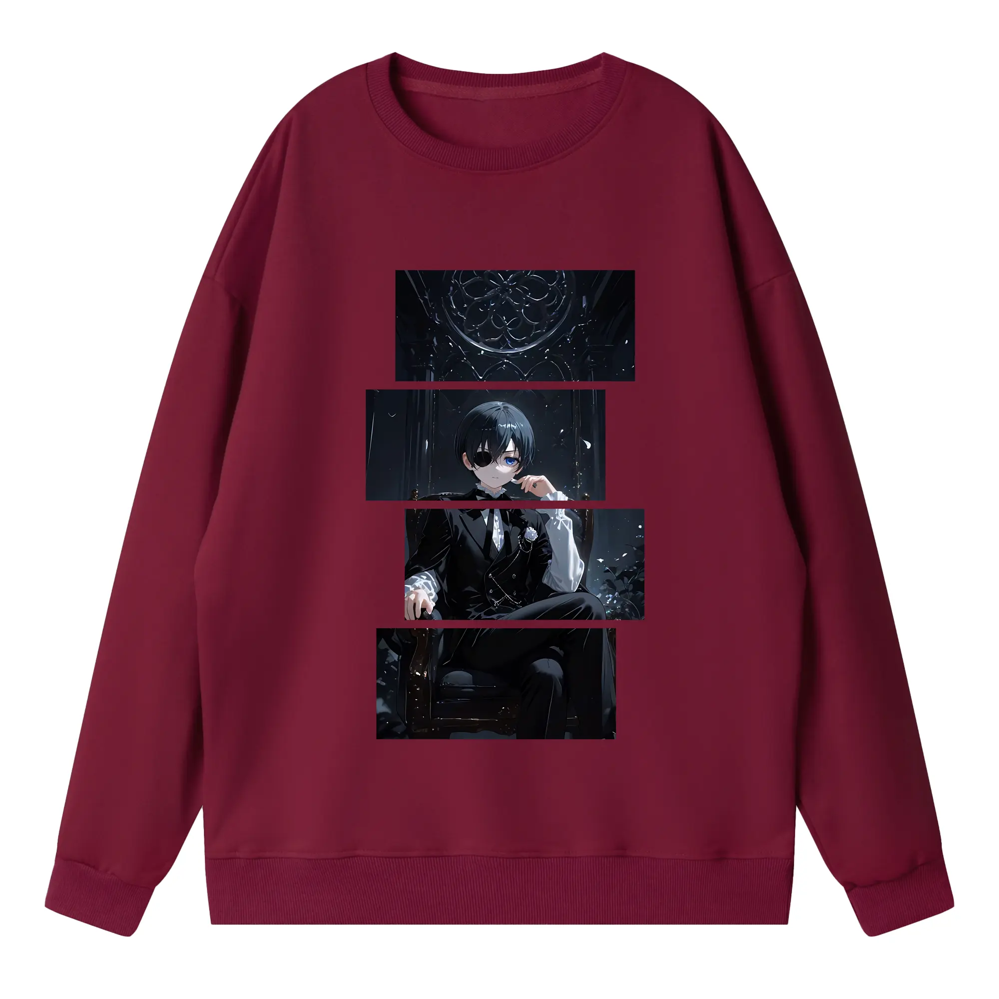 黒執事 グッズ,シエル・ファントムハイヴ - 高品質 クルーネック スウェット ・ コットン59% ポリエステル41% ・ ユニセックス 長袖 トレーナー ・ カジュアル デイリー スポーツ 散歩用