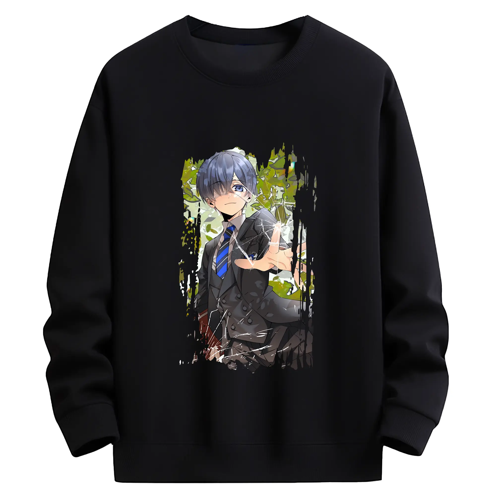 黒執事 グッズ,シエル・ファントムハイヴ - 薄手 クルーネック スウェット 裏毛260g · ポリエステル 春秋向け カジュアル 男女兼用 · トレーナー デイリー スポーツ 散歩に最適