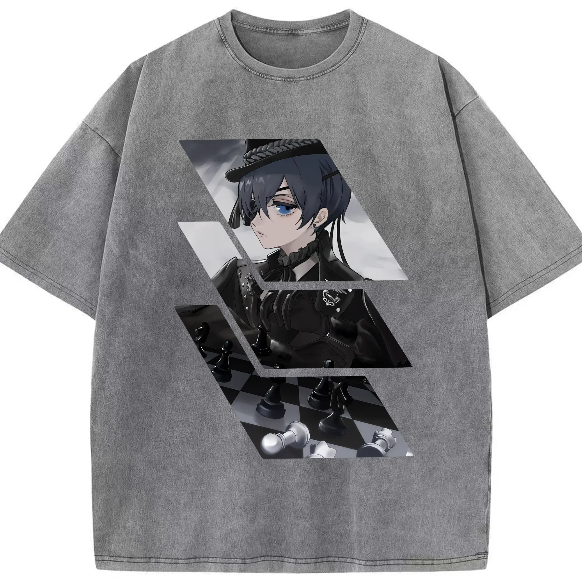 黒執事 グッズ,シエル・ファントムハイヴ - 綿100% ヴィンテージ風 半袖Tシャツ ・ 背面プリント ・ 柔らか肌触り ・ 通気性 快適 ・ スポーツ カジュアル 外出用