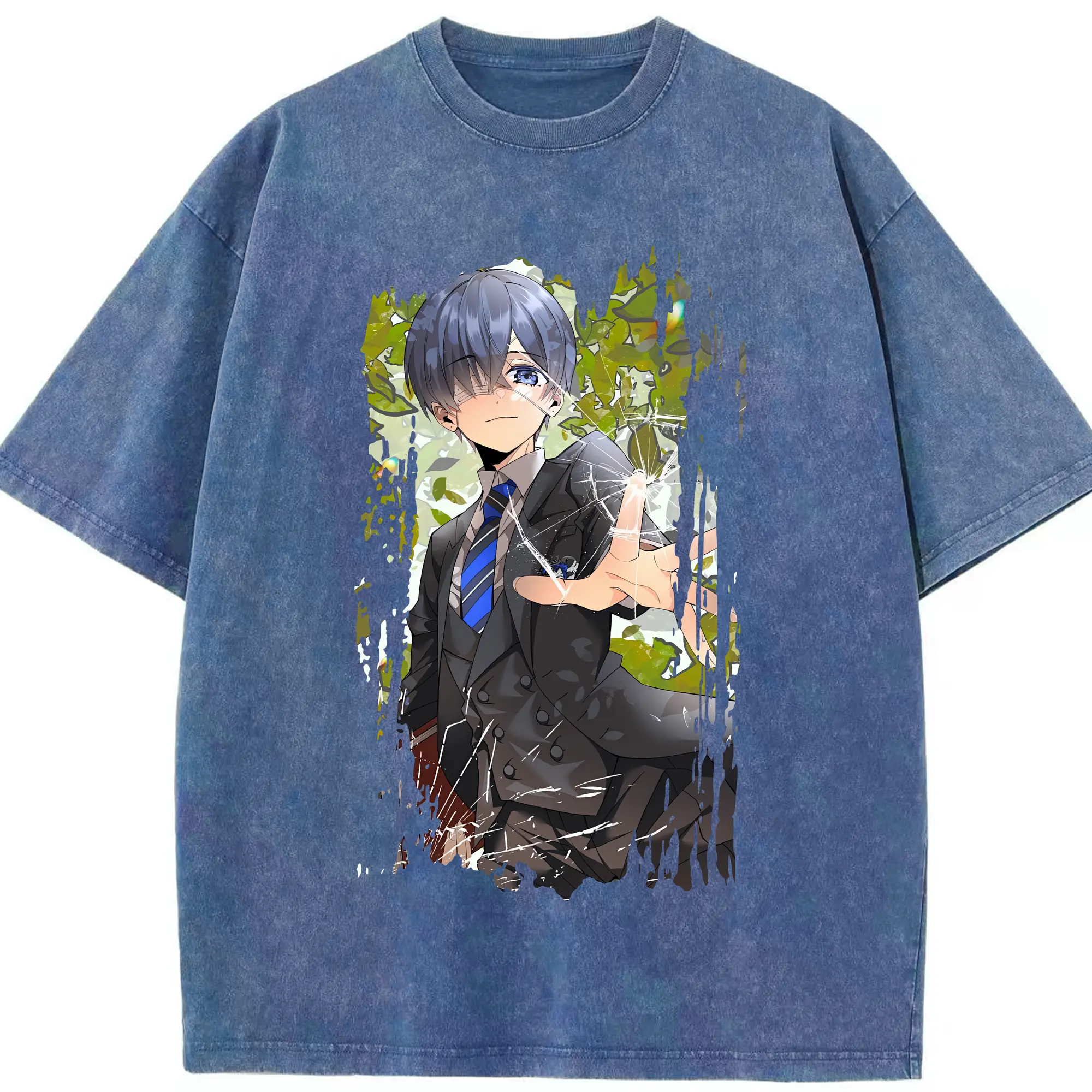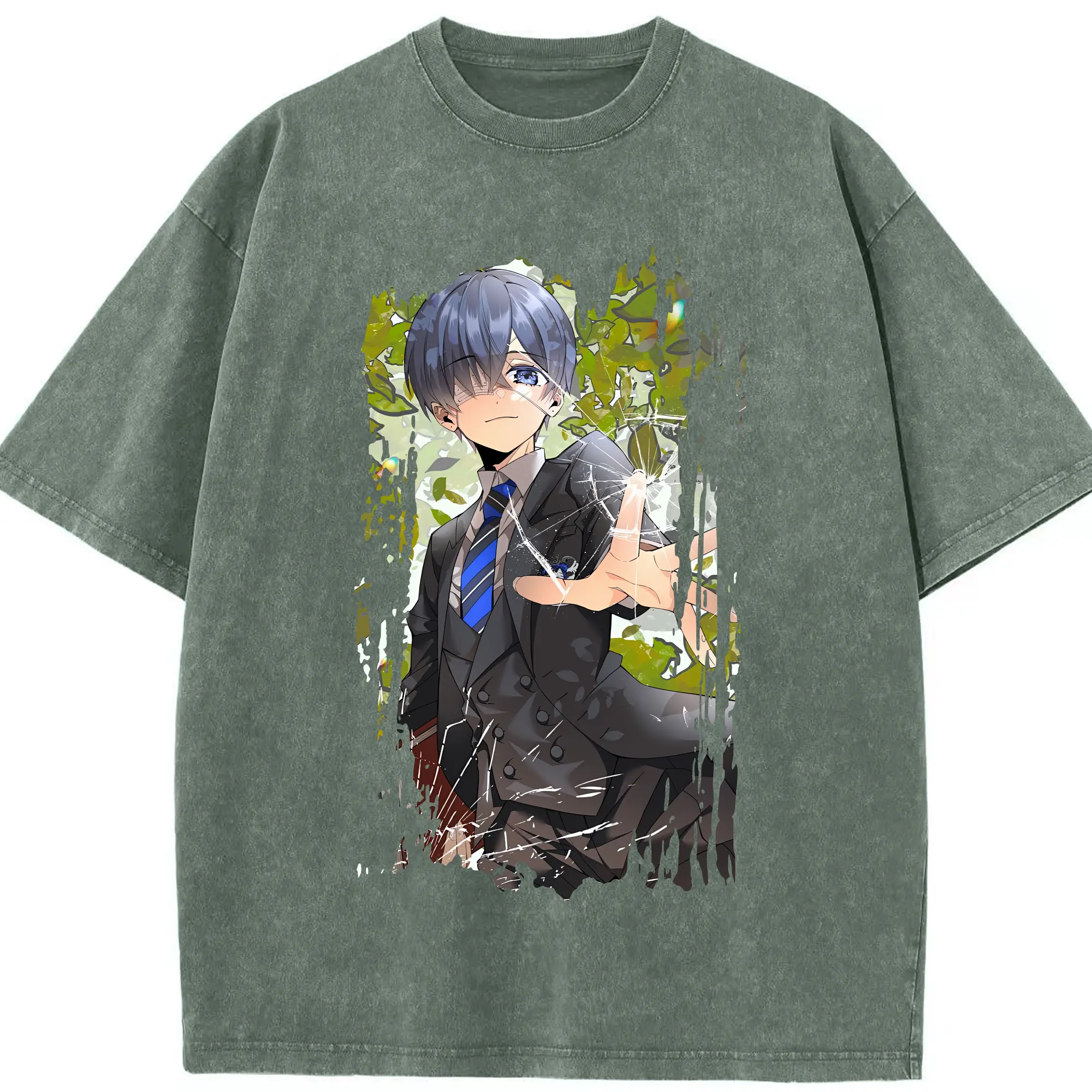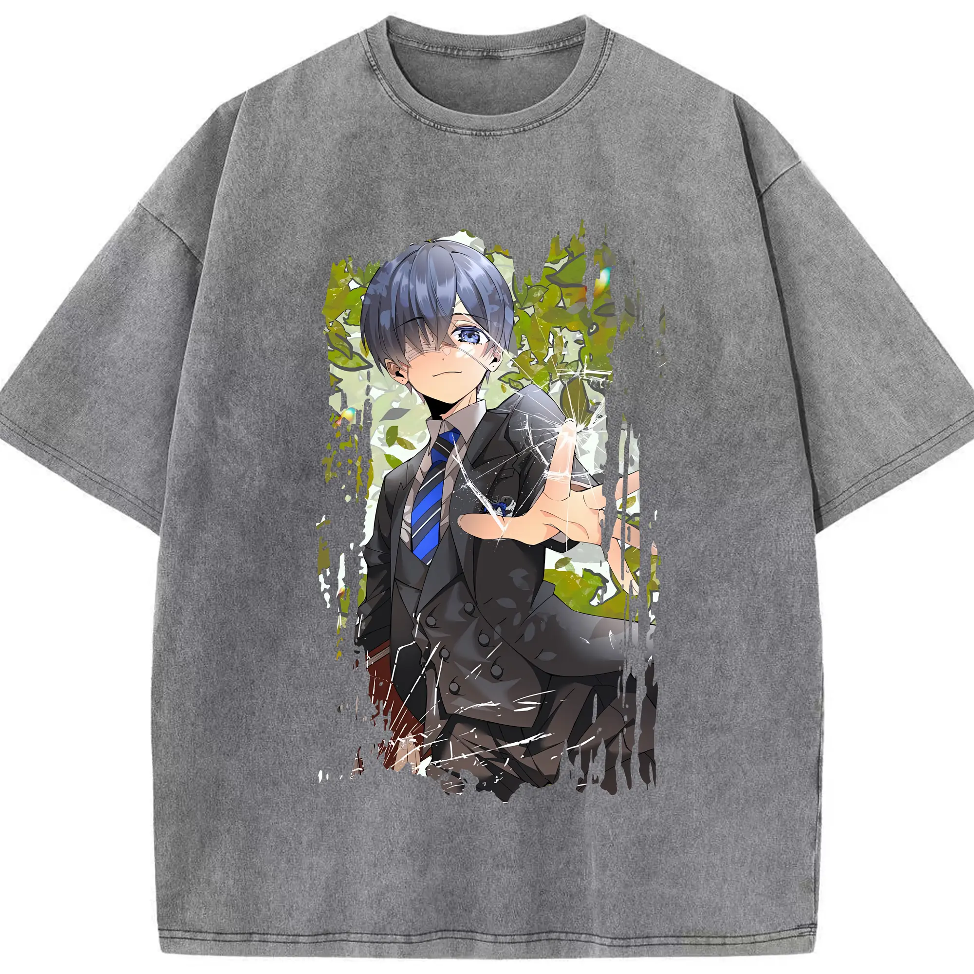 黒執事 グッズ,シエル・ファントムハイヴ - 綿100% ヴィンテージ風 半袖Tシャツ ・ 背面プリント ・ 柔らか肌触り ・ 通気性 快適 ・ スポーツ カジュアル 外出用
