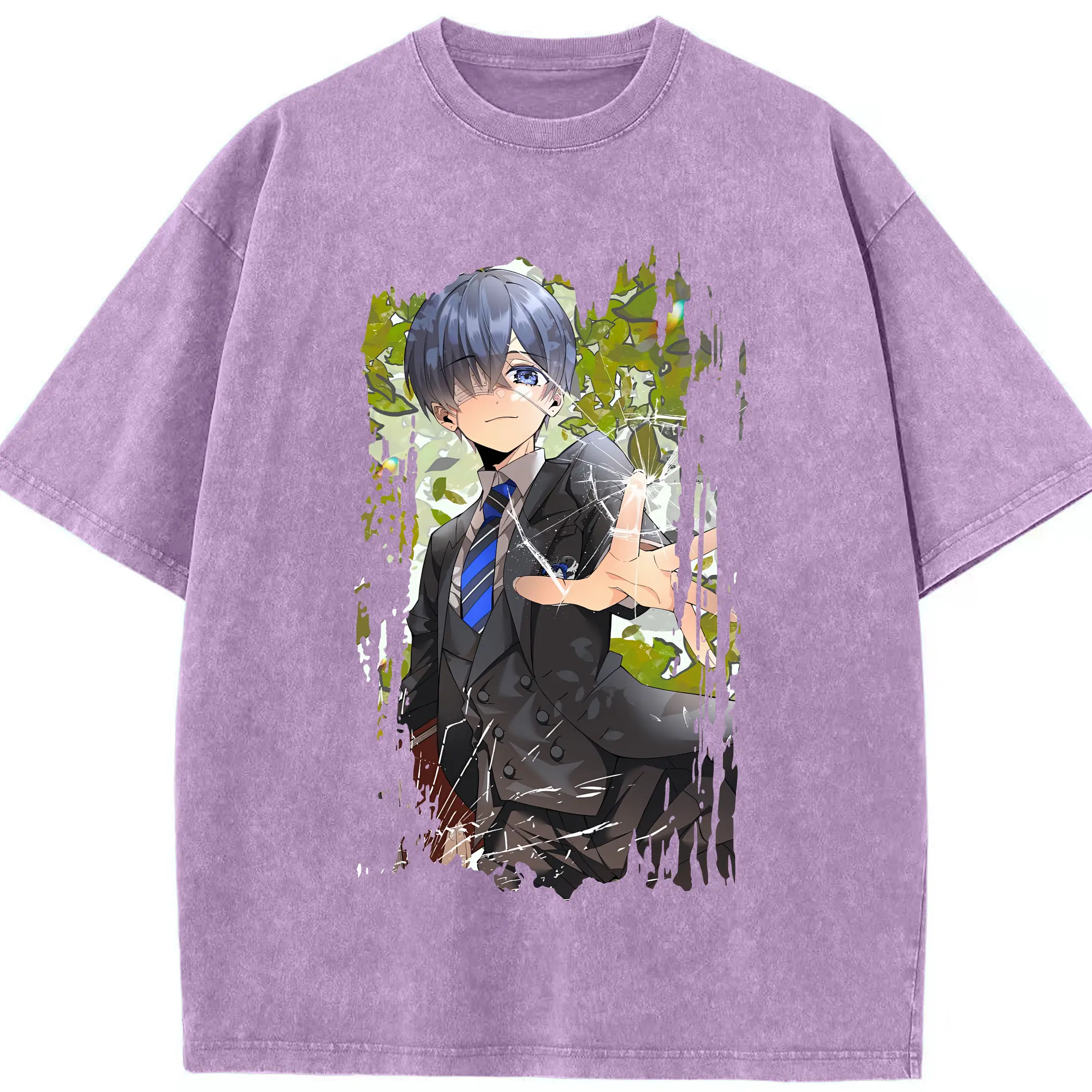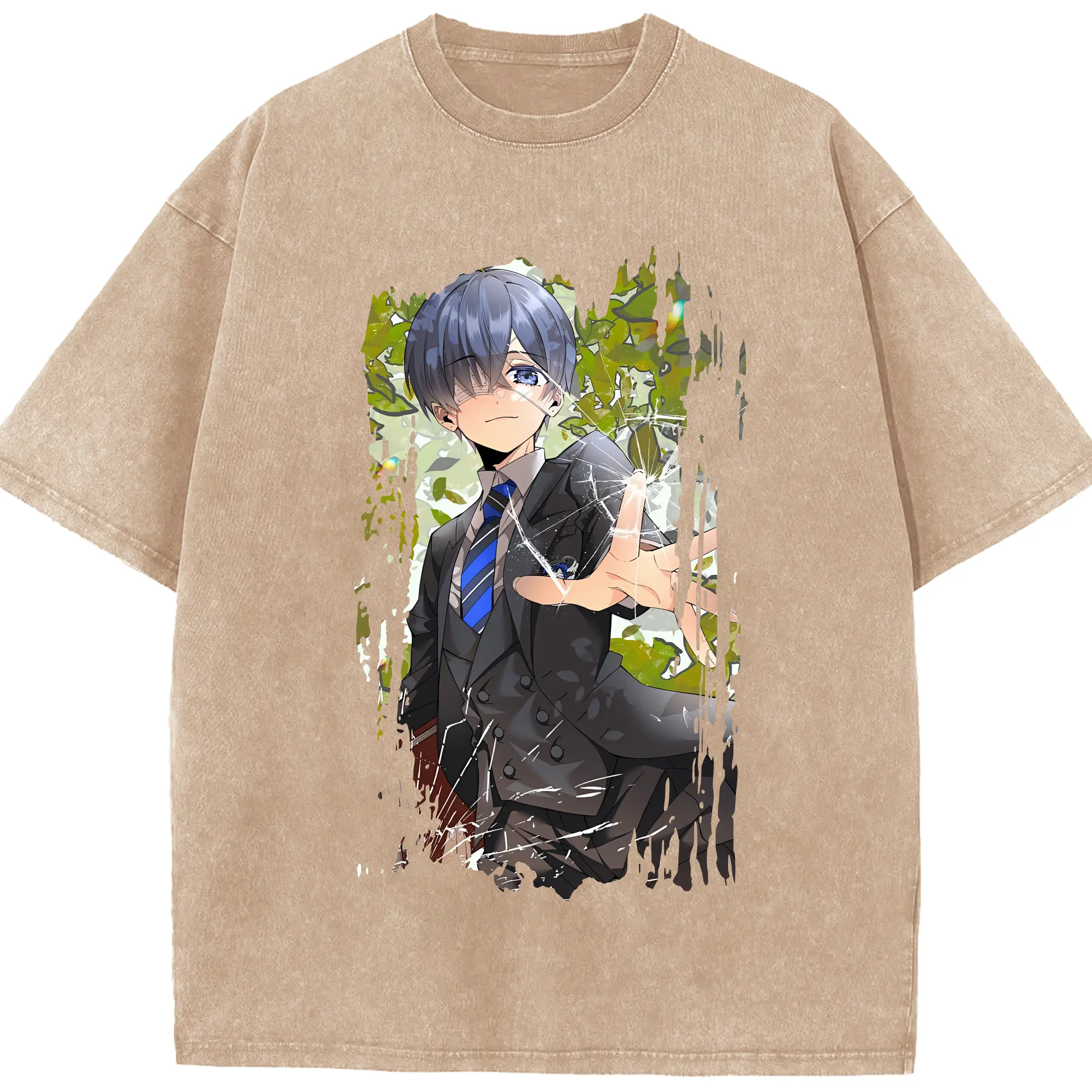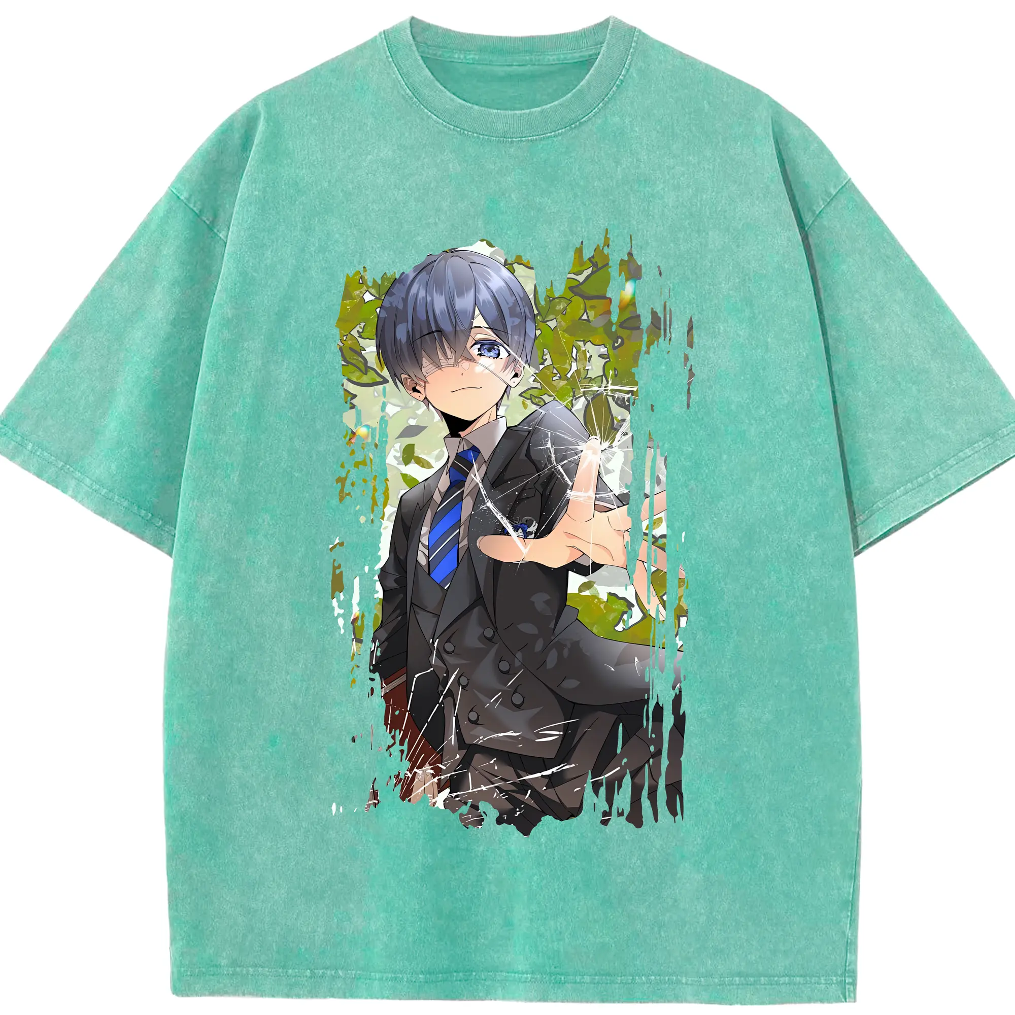 黒執事 グッズ,シエル・ファントムハイヴ - 綿100% ヴィンテージ風 半袖Tシャツ ・ 背面プリント ・ 柔らか肌触り ・ 通気性 快適 ・ スポーツ カジュアル 外出用