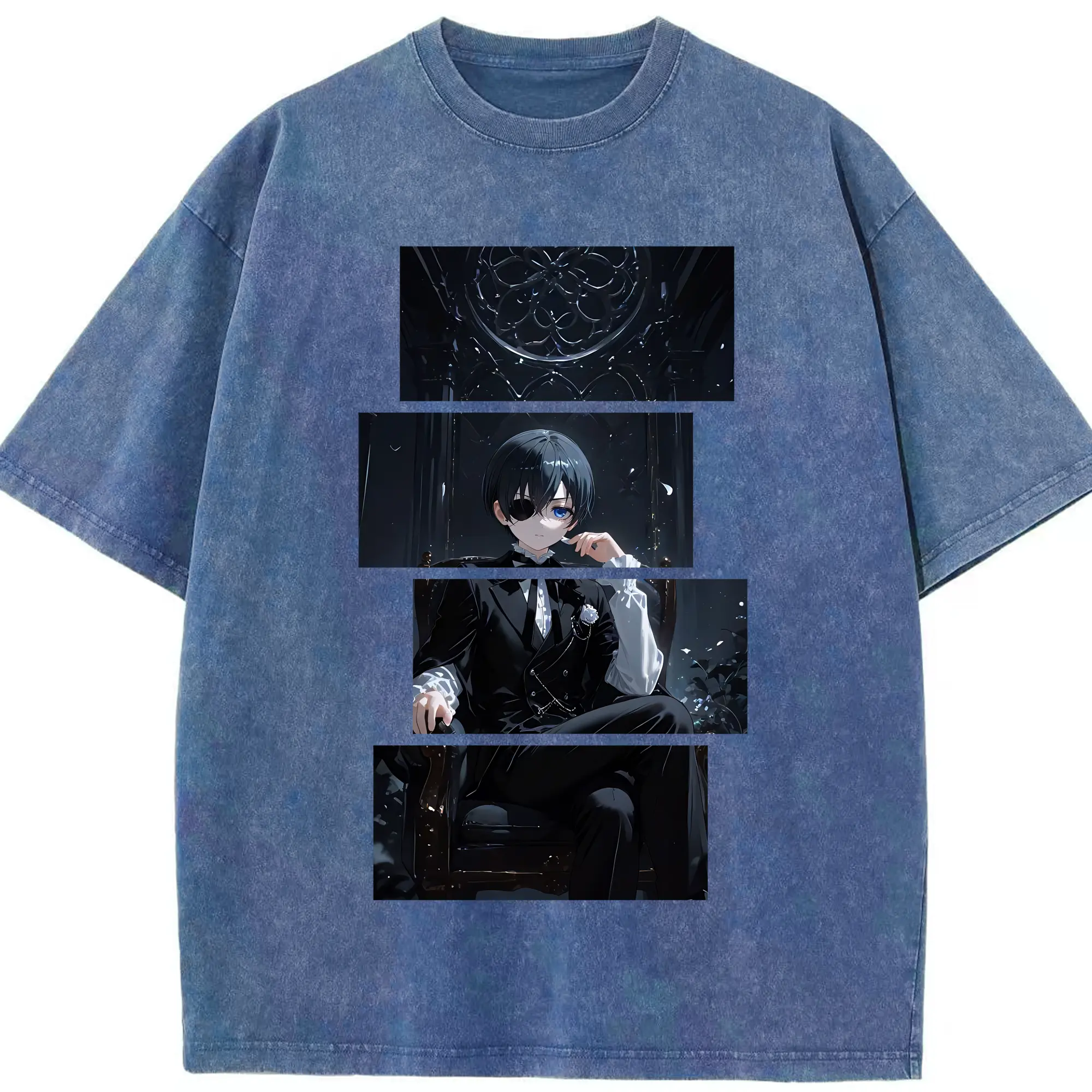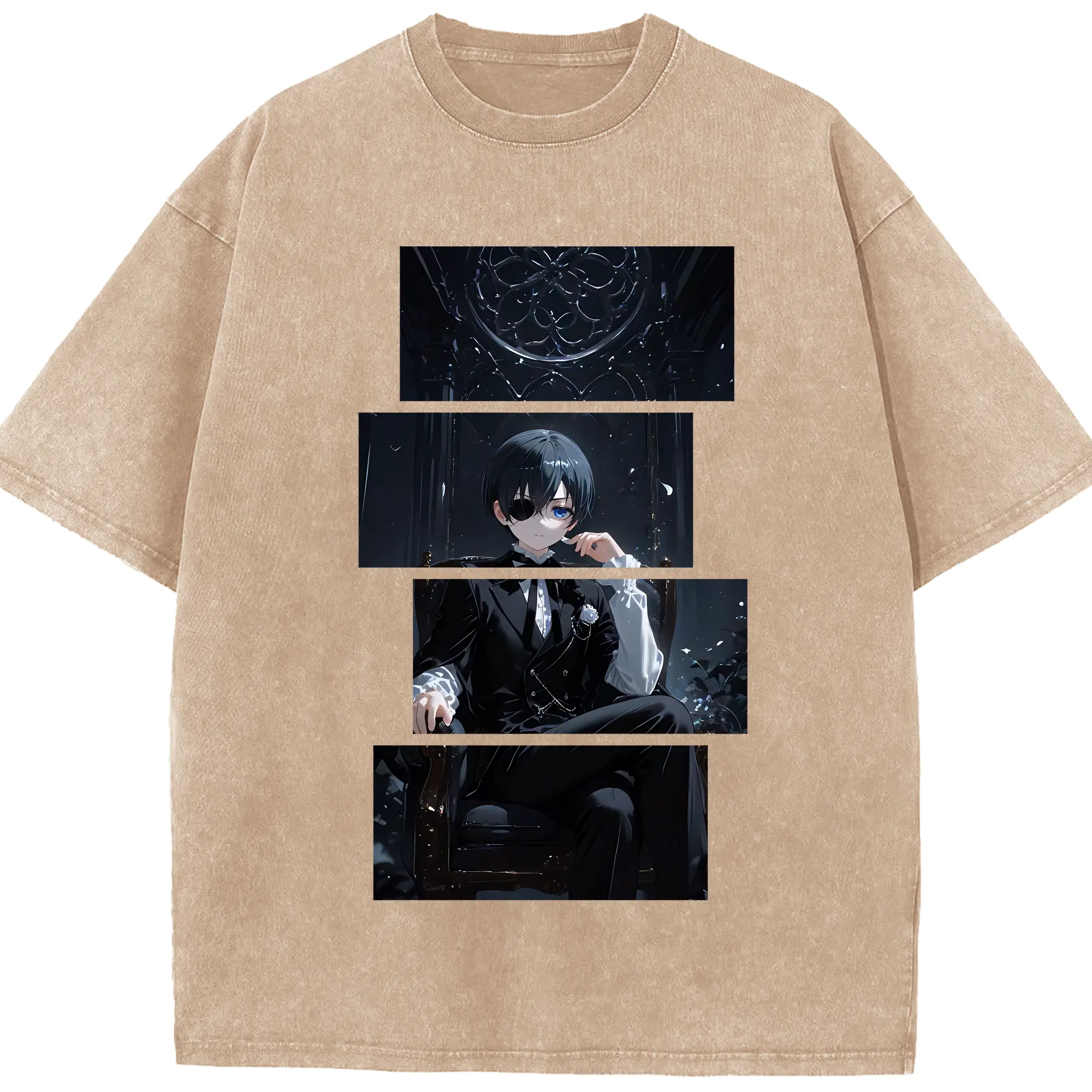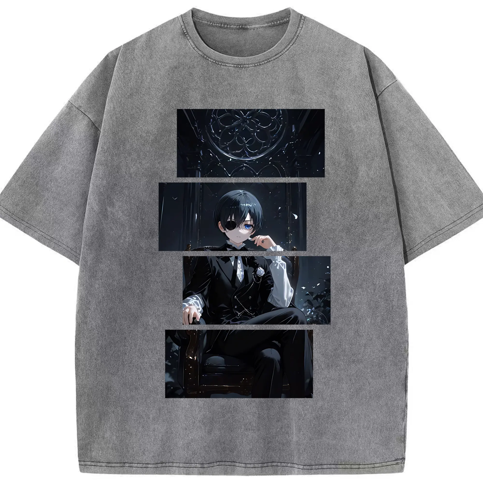 黒執事 グッズ,シエル・ファントムハイヴ - 綿100% ヴィンテージ風 半袖Tシャツ ・ 背面プリント ・ 柔らか肌触り ・ 通気性 快適 ・ スポーツ カジュアル 外出用