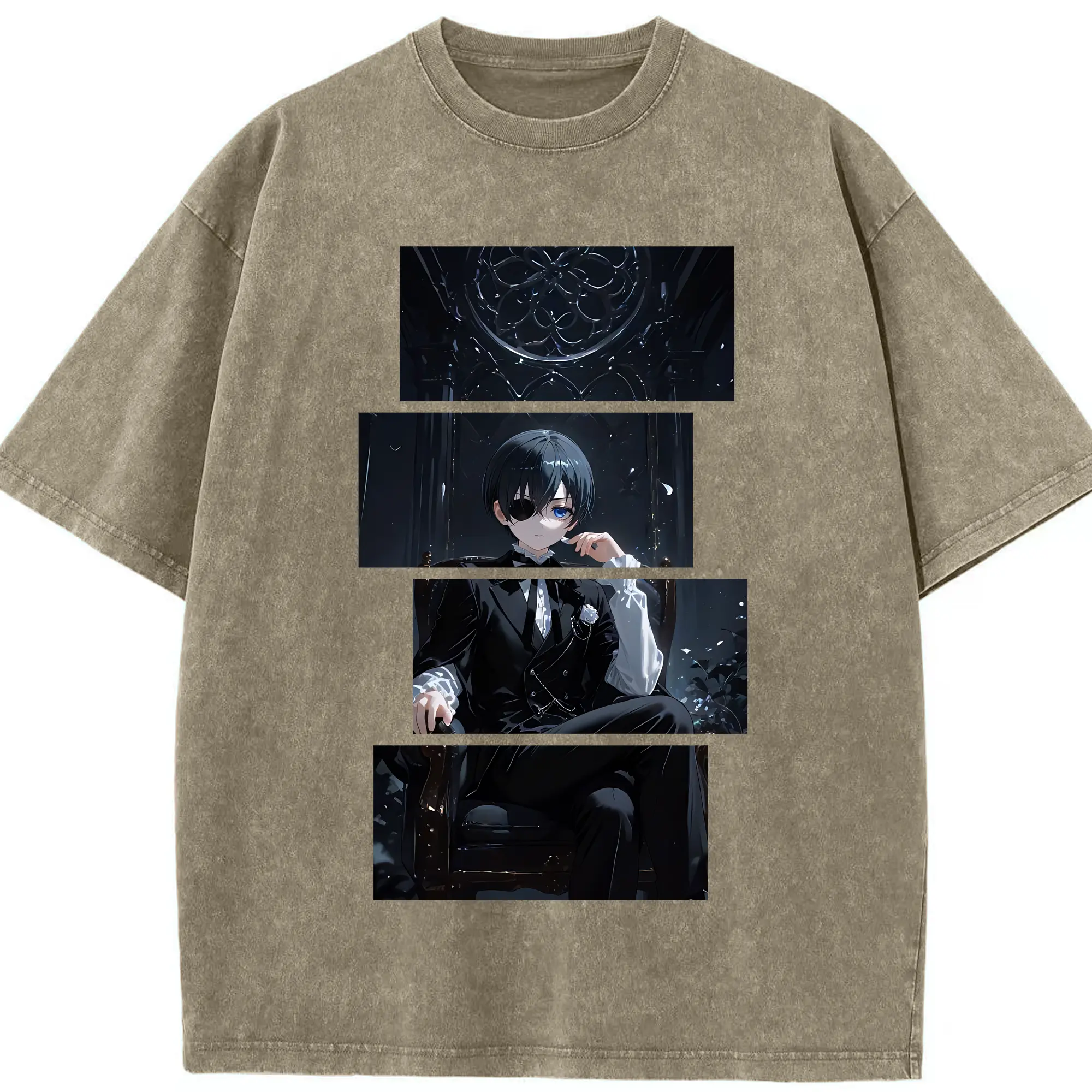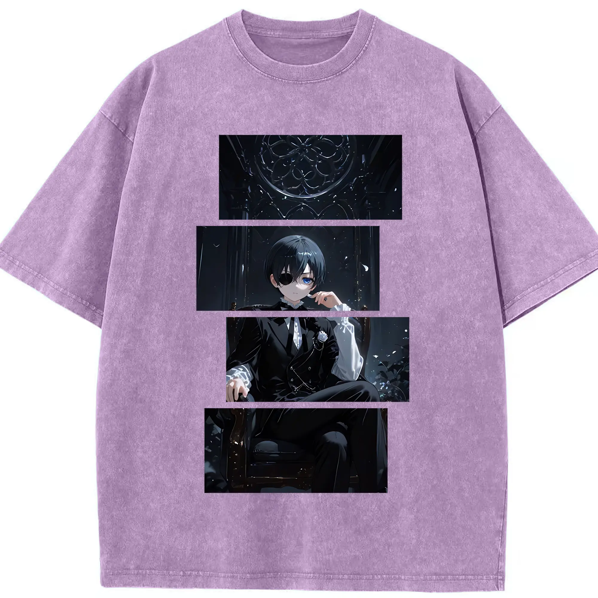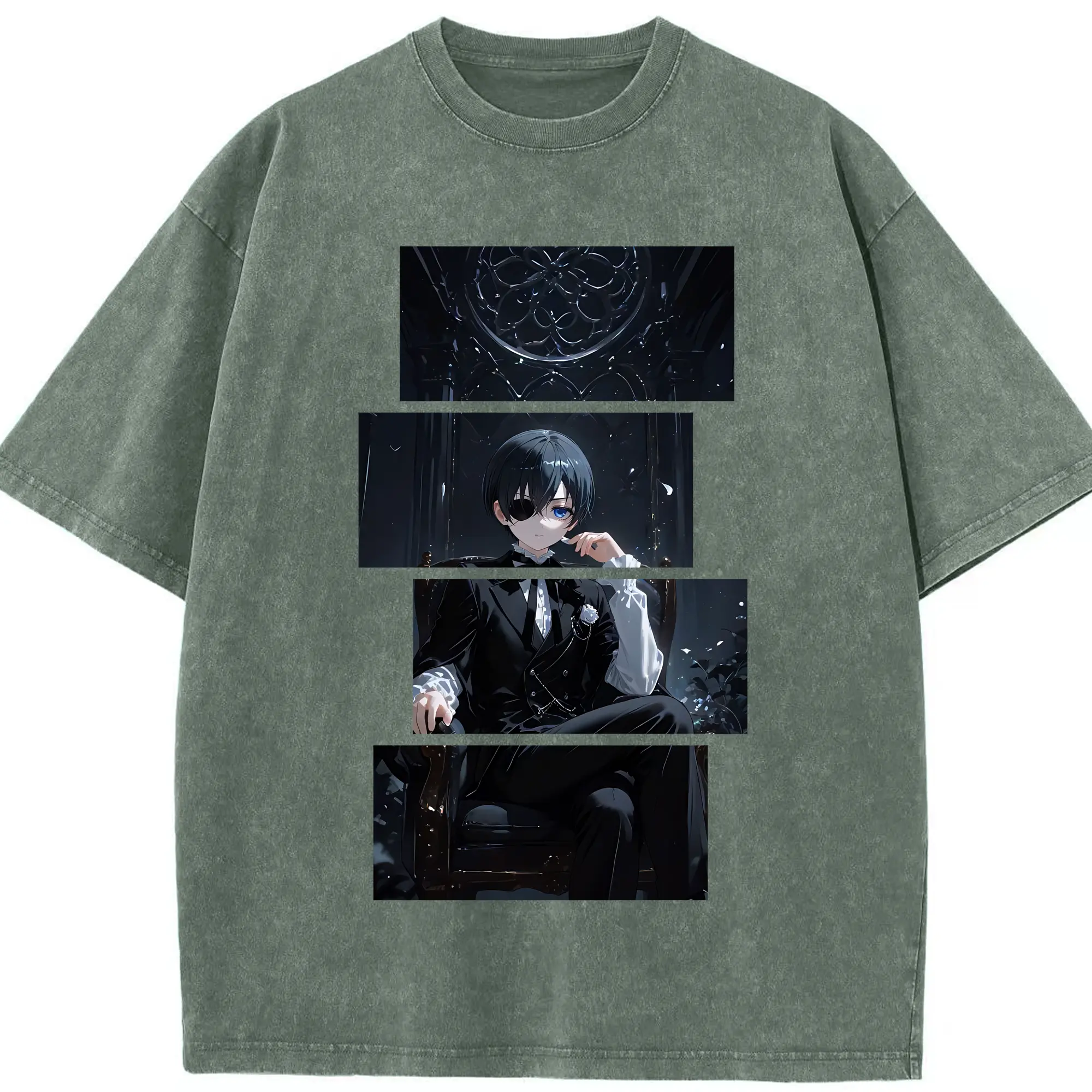 黒執事 グッズ,シエル・ファントムハイヴ - 綿100% ヴィンテージ風 半袖Tシャツ ・ 背面プリント ・ 柔らか肌触り ・ 通気性 快適 ・ スポーツ カジュアル 外出用