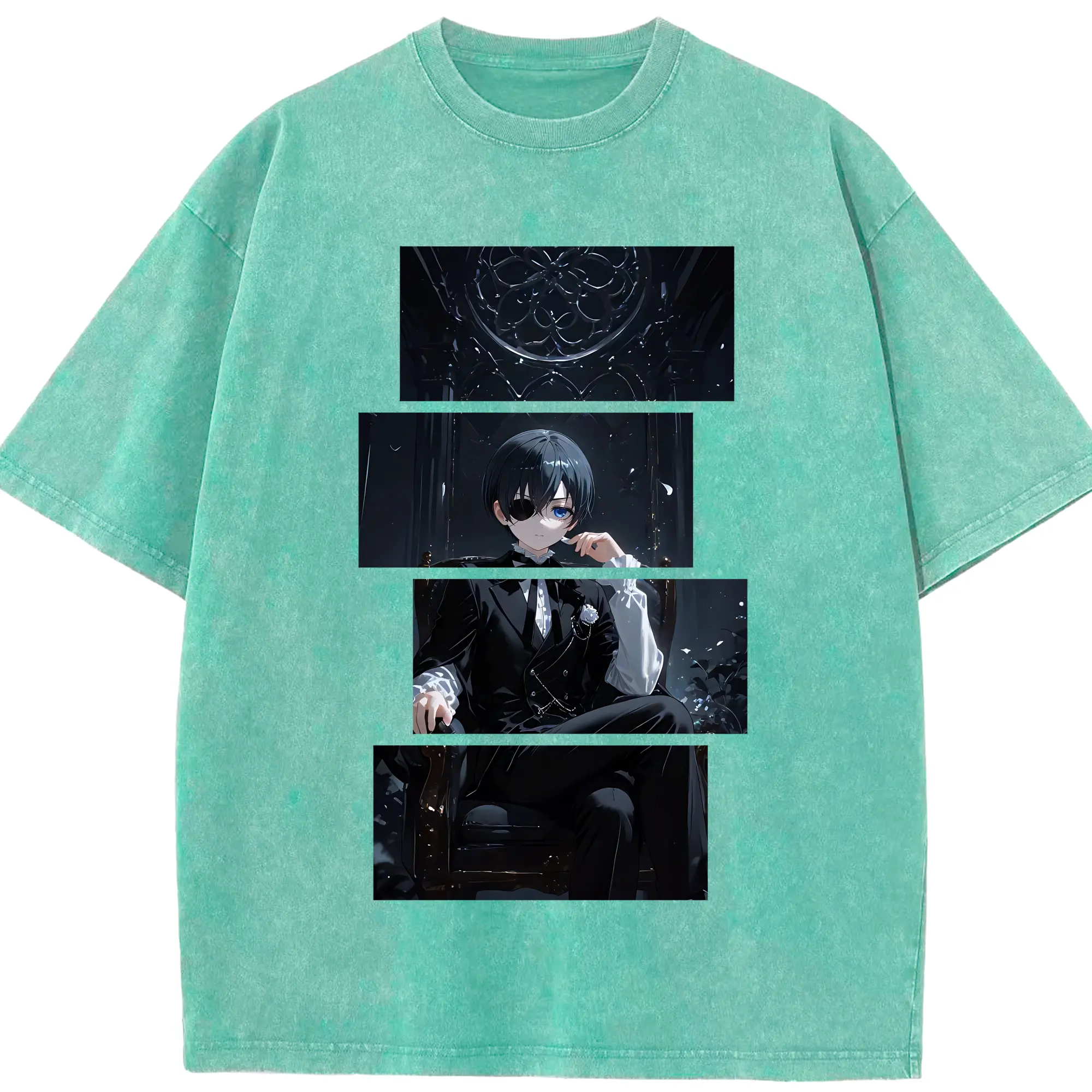 黒執事 グッズ,セバスチャン・ミカエリス - 綿100% ヴィンテージ風 半袖Tシャツ ・ フロントプリント ・ 柔らか肌触り ・ 通気性 快適 ・ スポーツ カジュアル 外出用