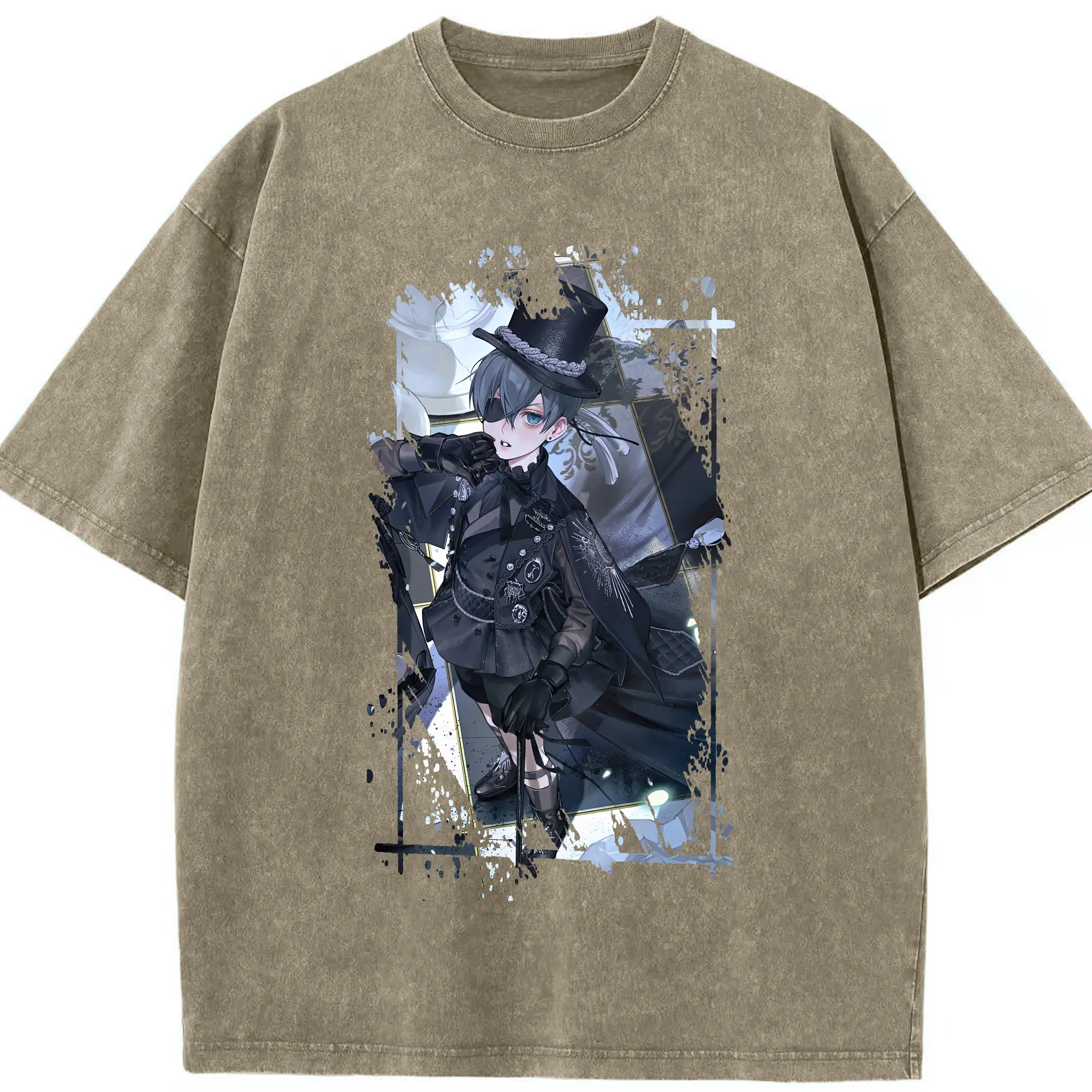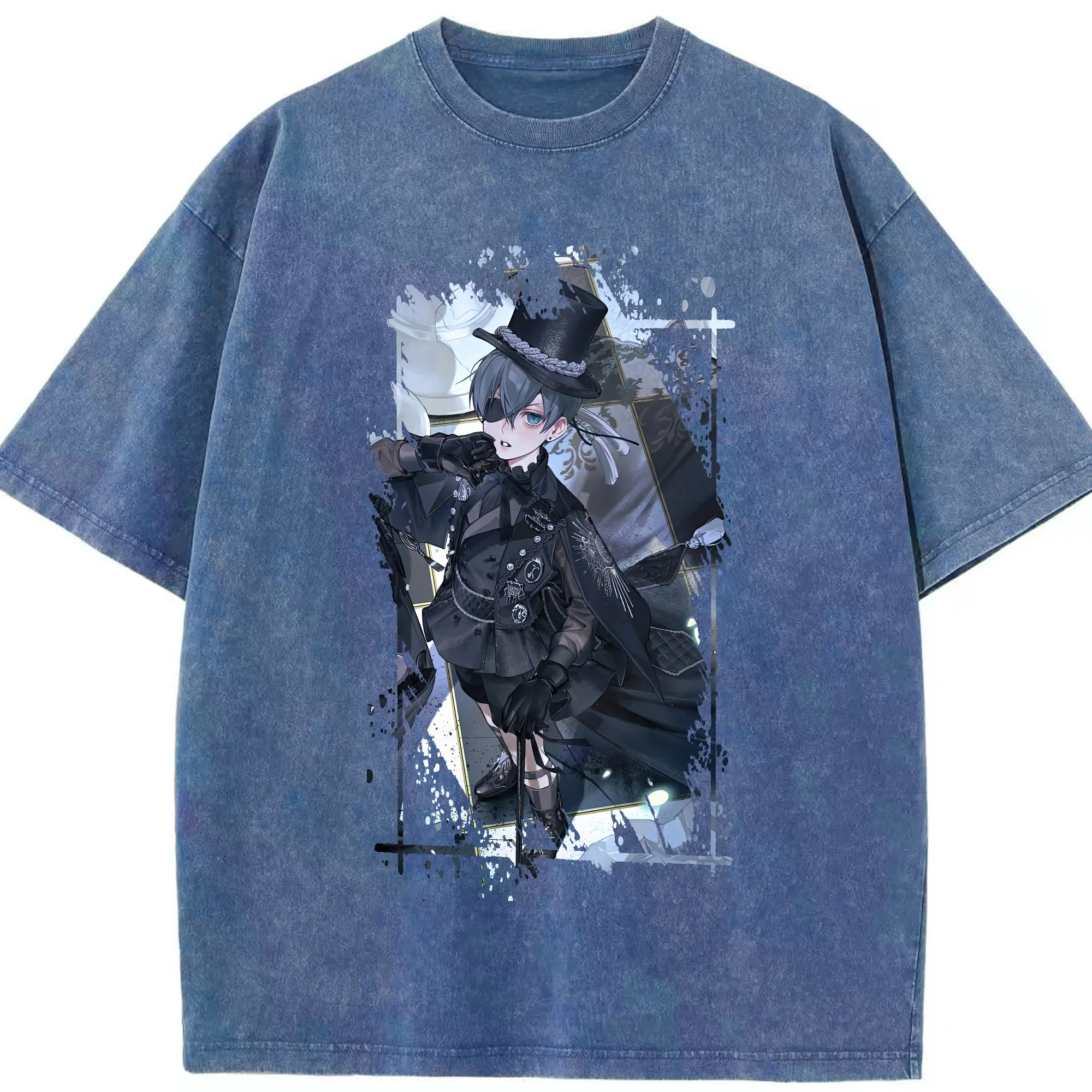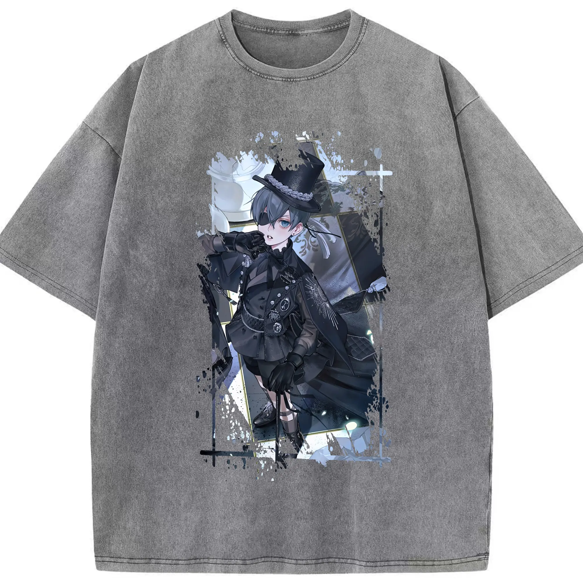 黒執事 グッズ,シエル・ファントムハイヴ - 綿100% ヴィンテージ風 半袖Tシャツ ・ 背面プリント ・ 柔らか肌触り ・ 通気性 快適 ・ スポーツ カジュアル 外出用