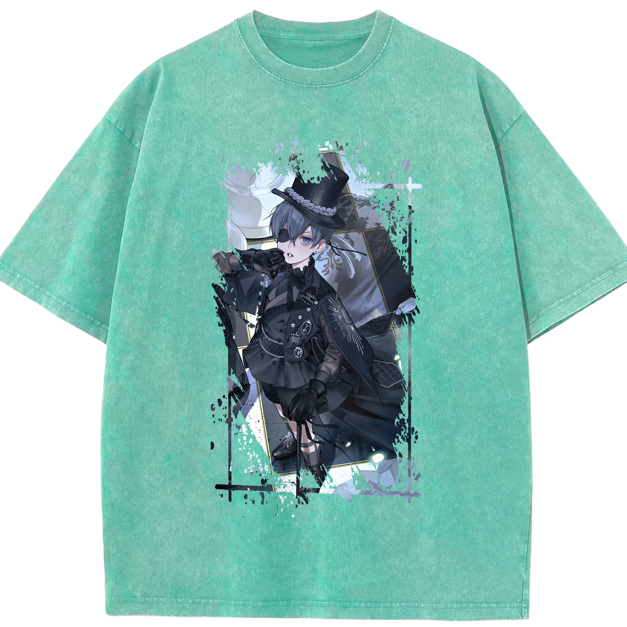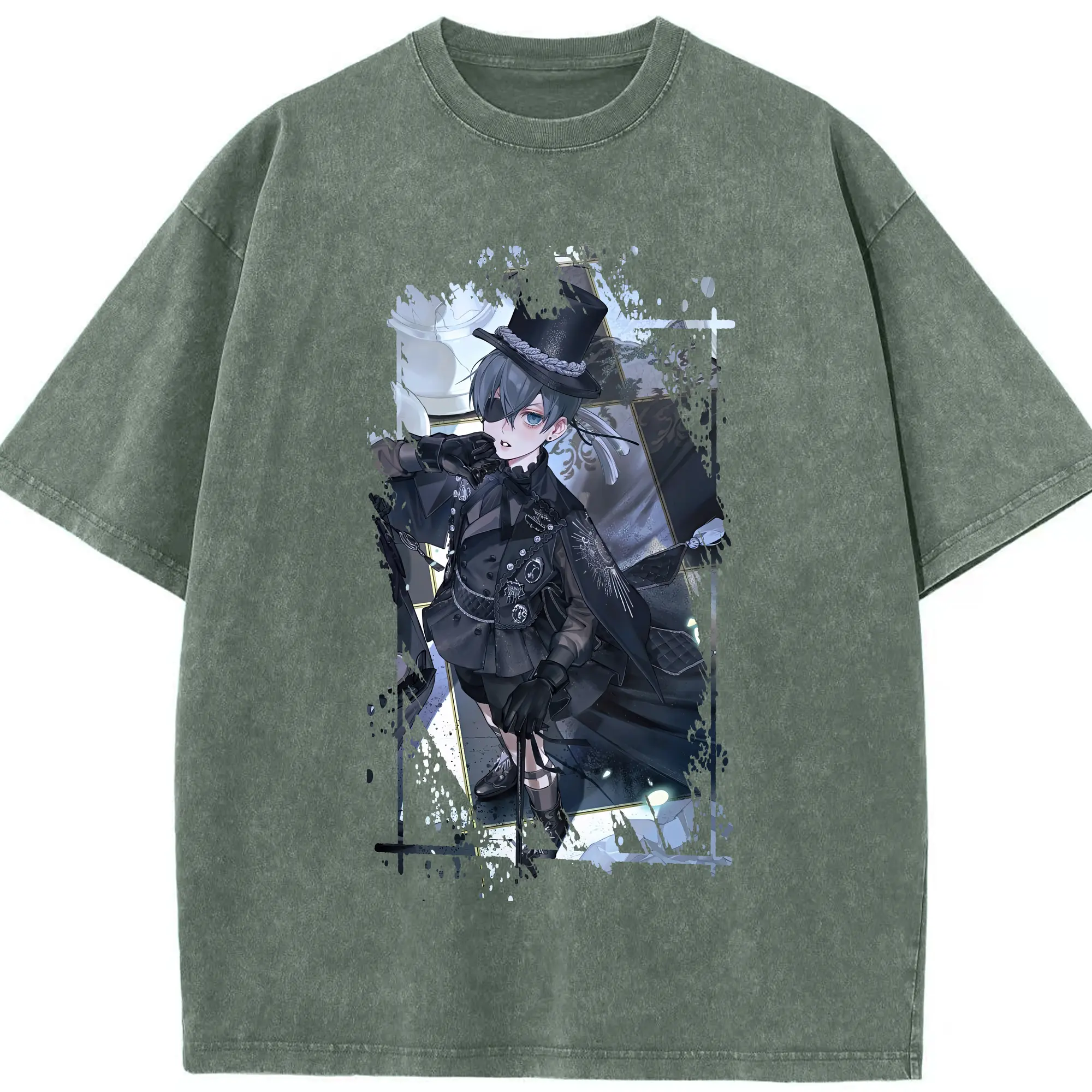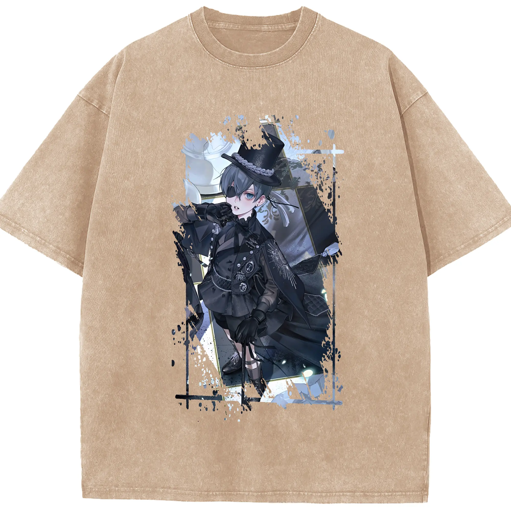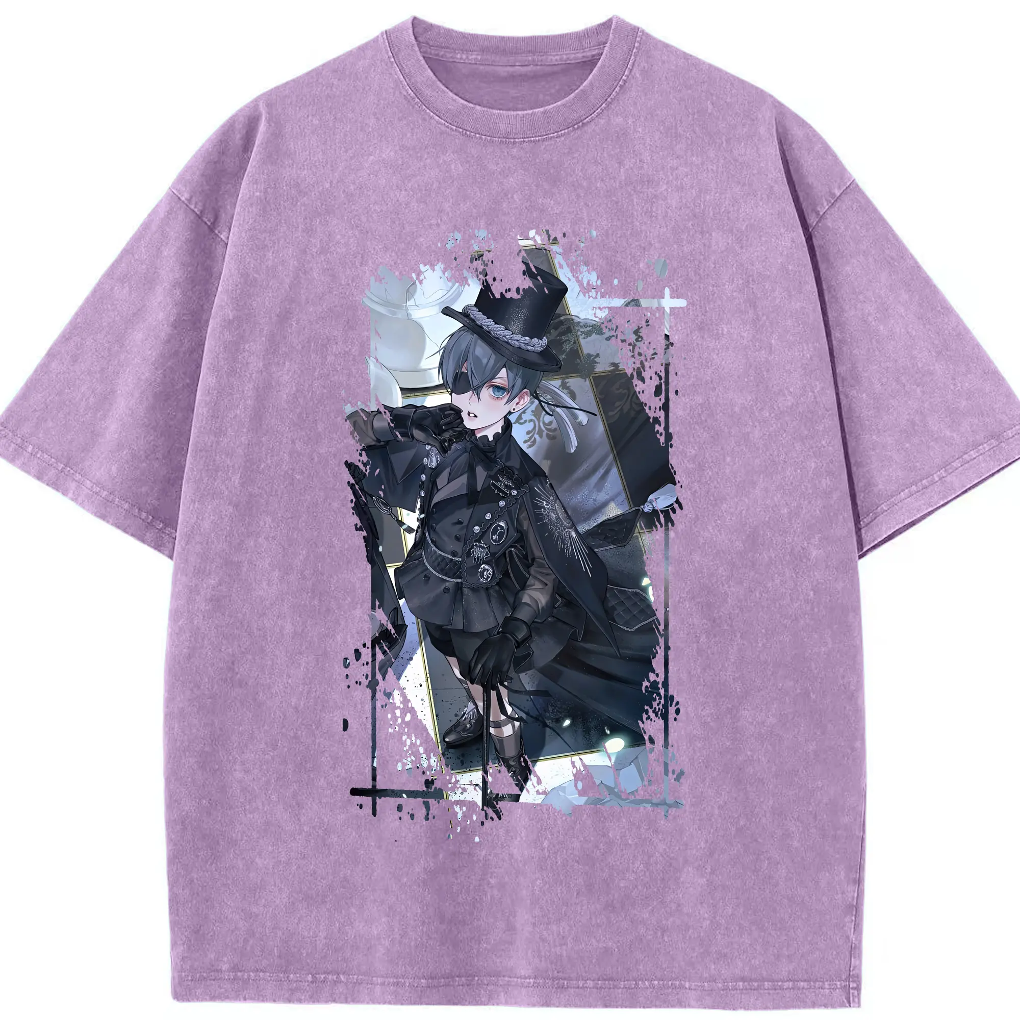 黒執事 グッズ,シエル・ファントムハイヴ - 綿100% ヴィンテージ風 半袖Tシャツ ・ 背面プリント ・ 柔らか肌触り ・ 通気性 快適 ・ スポーツ カジュアル 外出用
