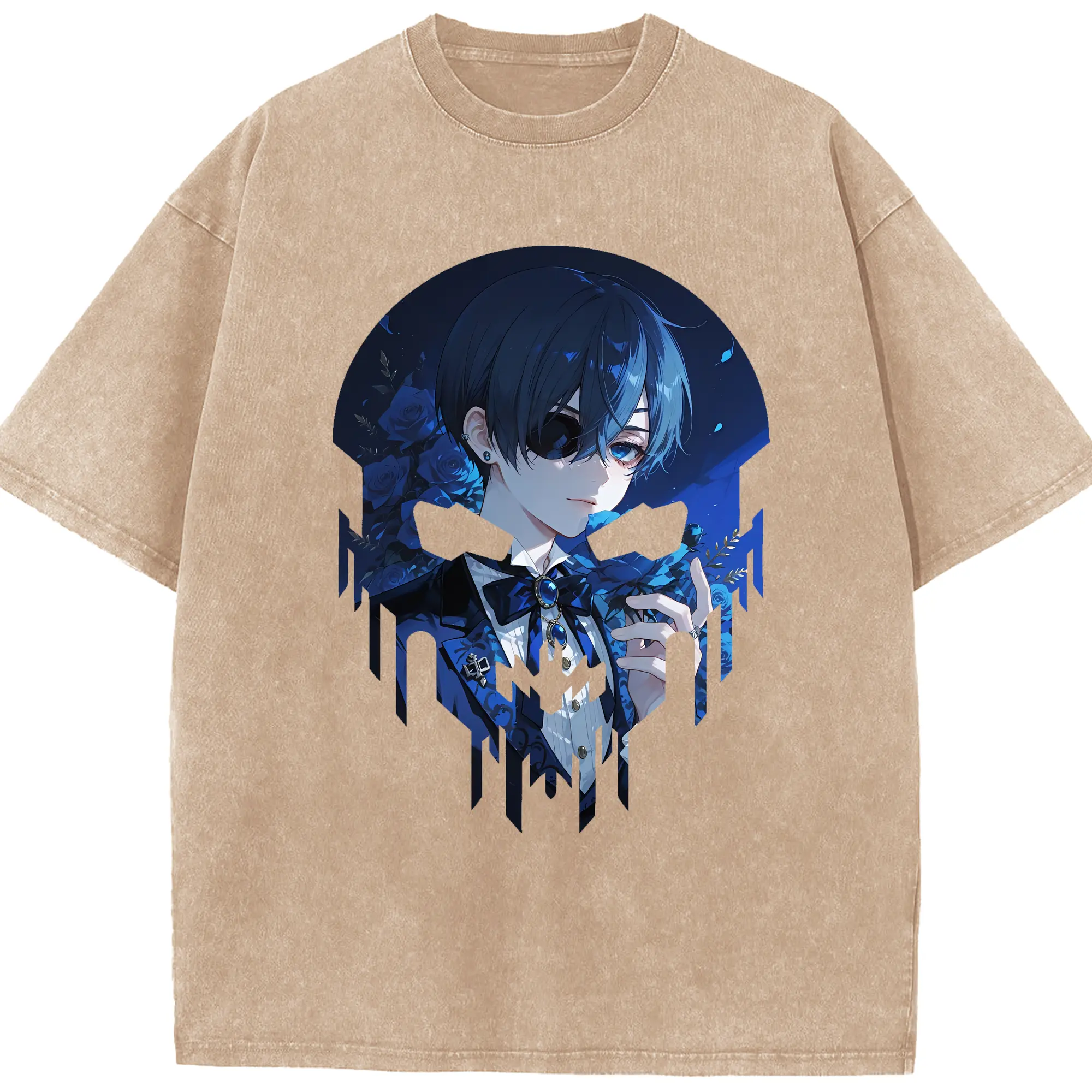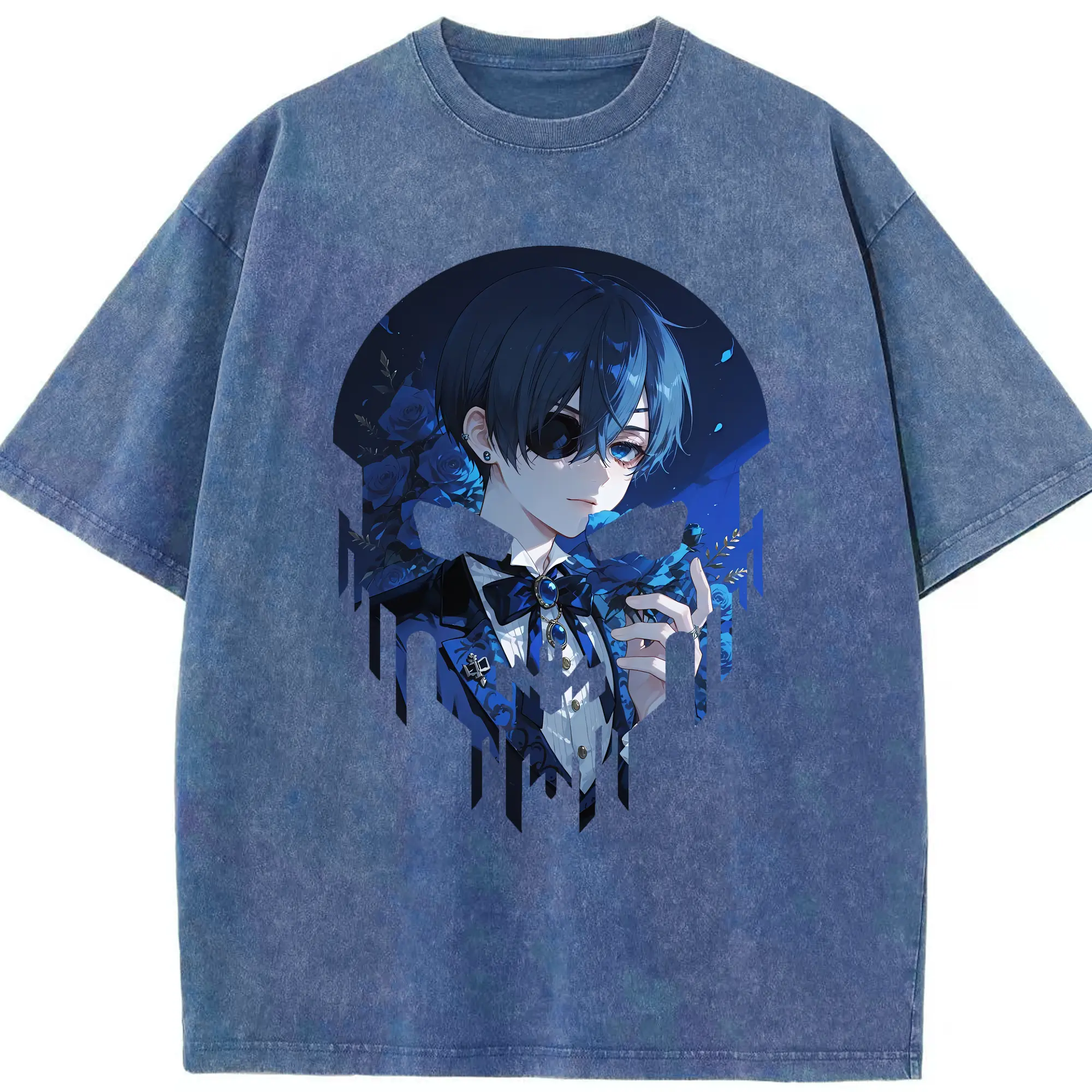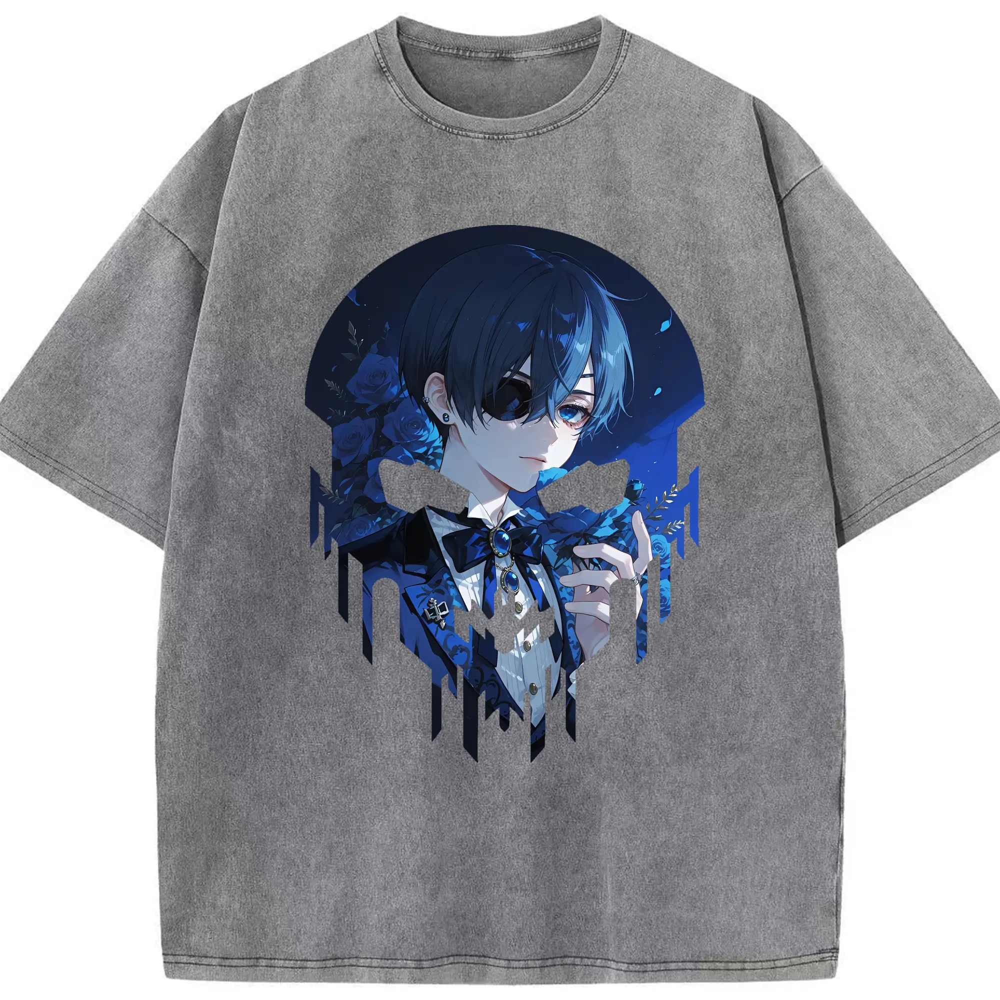 黒執事 グッズ,シエル・ファントムハイヴ - 綿100% ヴィンテージ風 半袖Tシャツ ・ 背面プリント ・ 柔らか肌触り ・ 通気性 快適 ・ スポーツ カジュアル 外出用