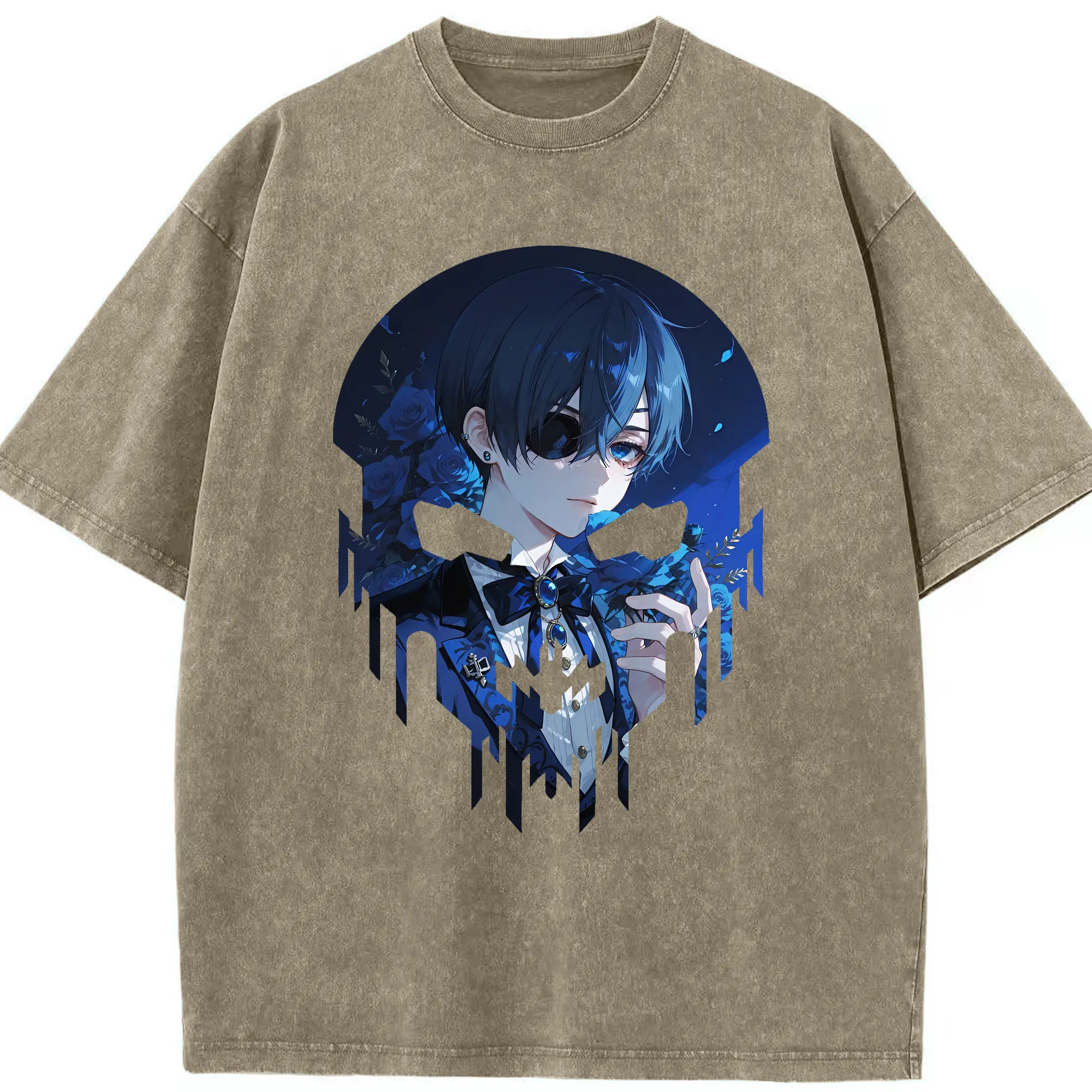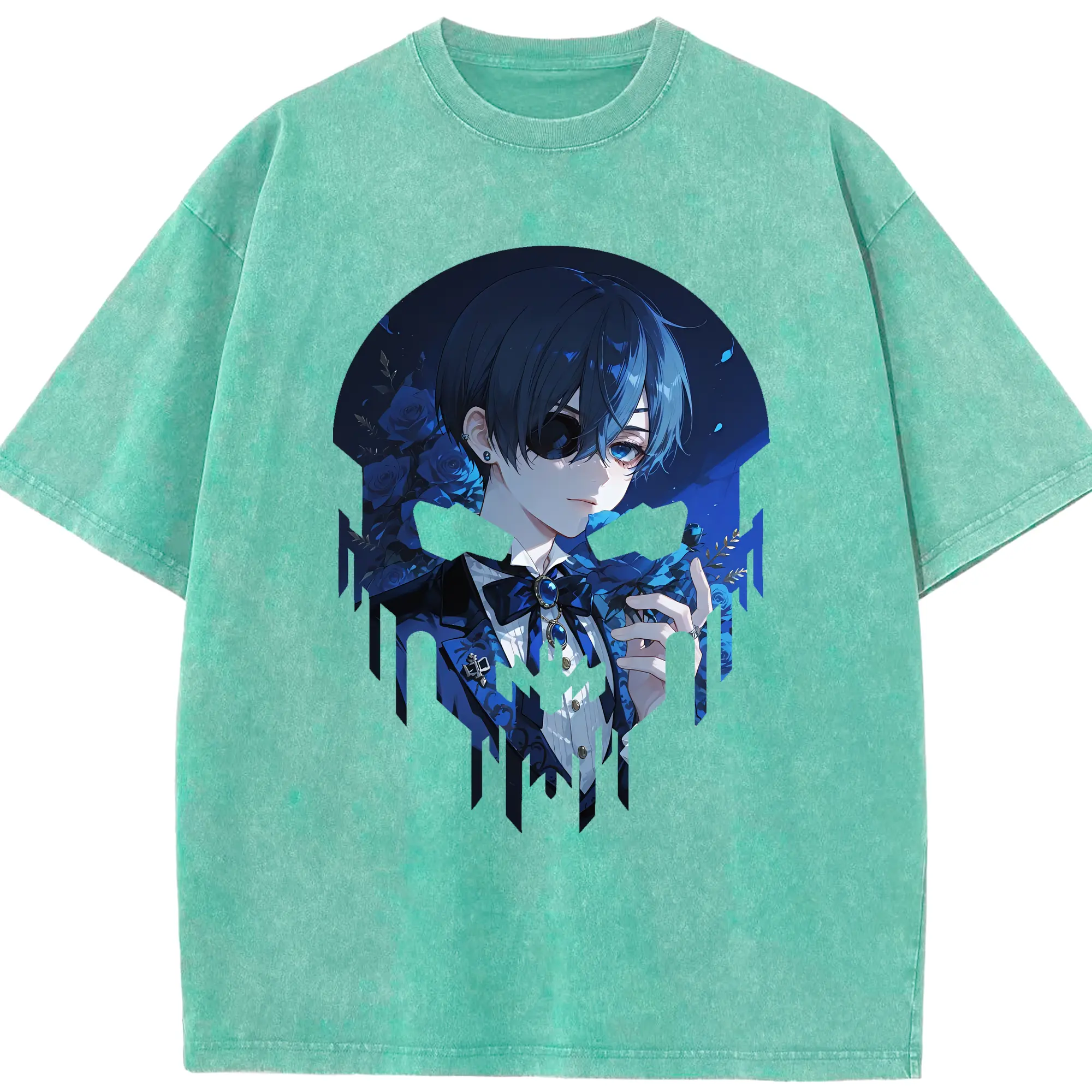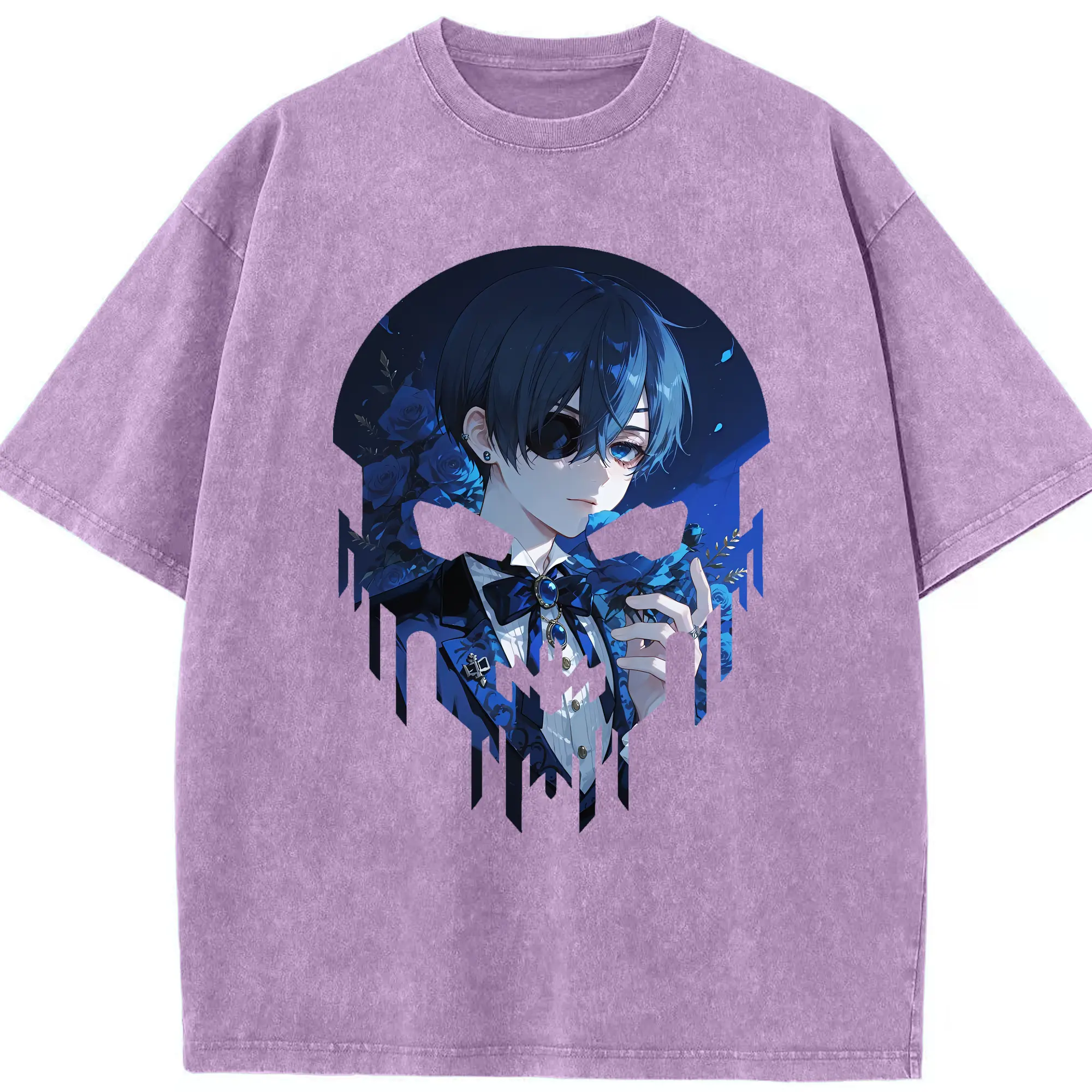 黒執事 グッズ,シエル・ファントムハイヴ - 綿100% ヴィンテージ風 半袖Tシャツ ・ 背面プリント ・ 柔らか肌触り ・ 通気性 快適 ・ スポーツ カジュアル 外出用
