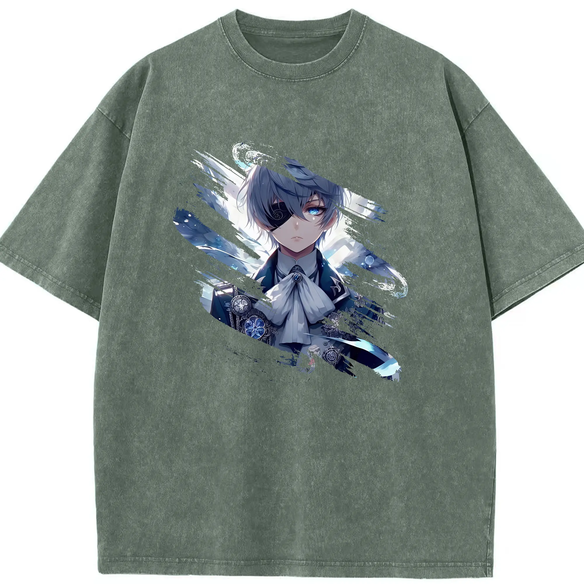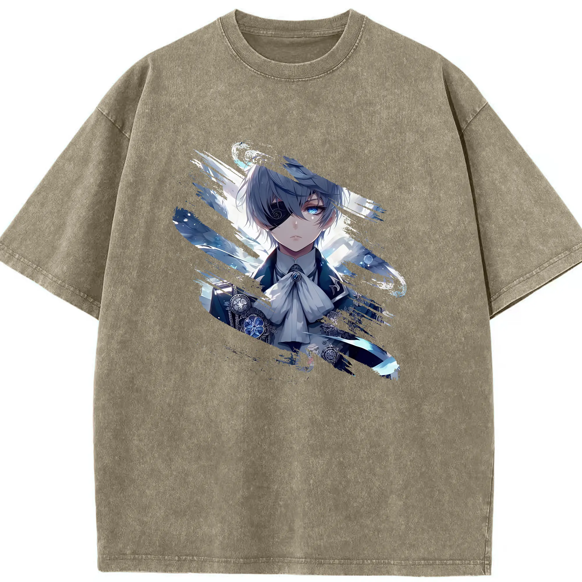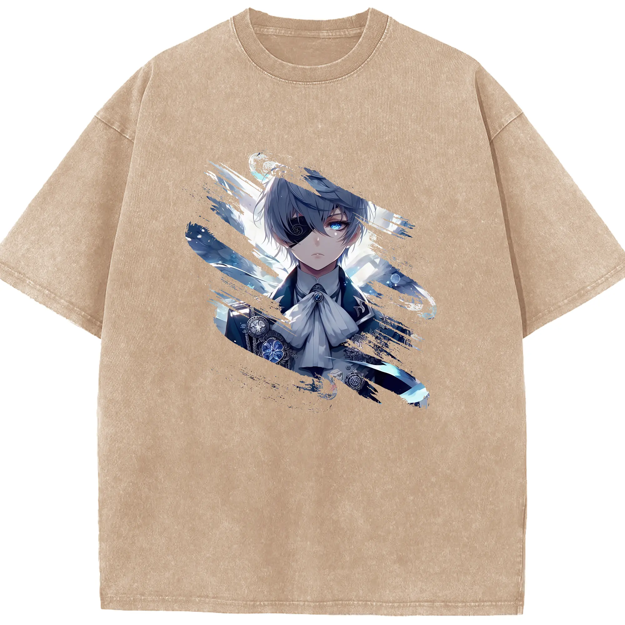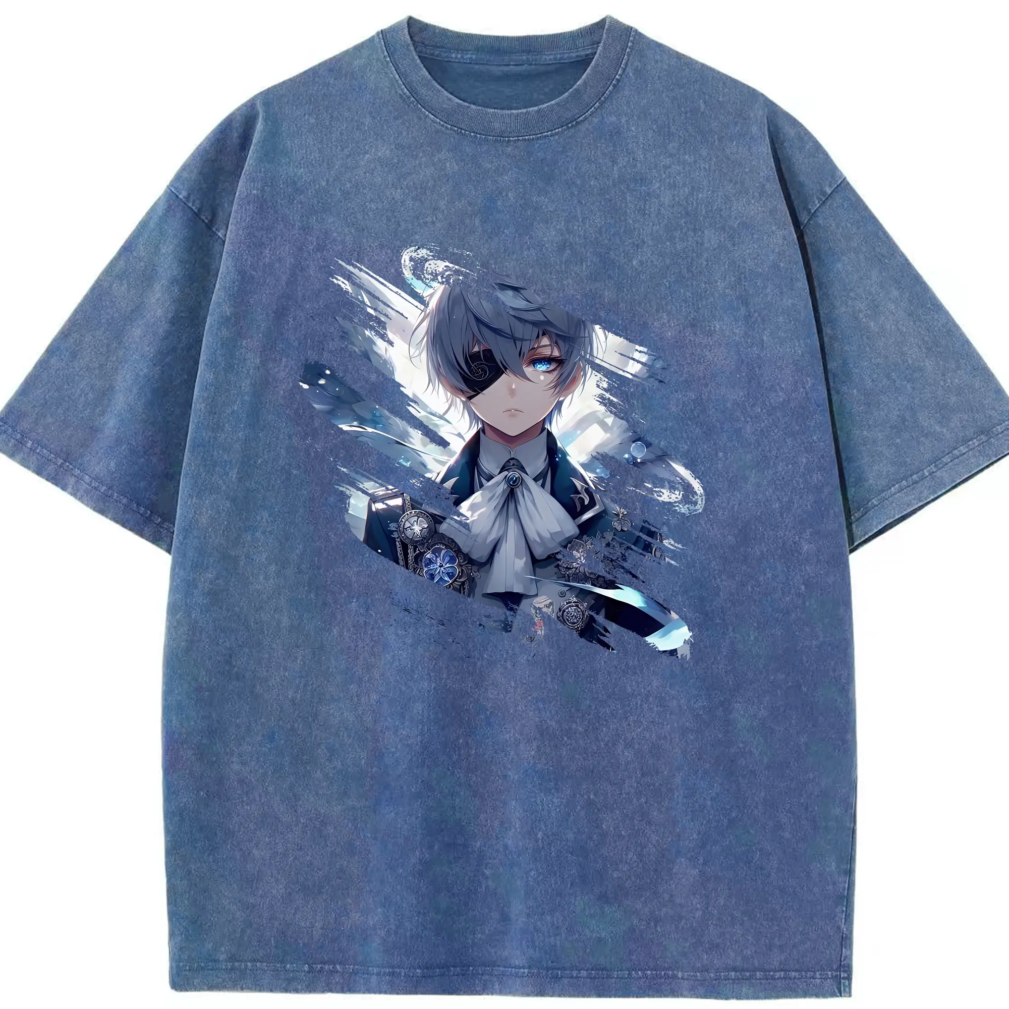 黒執事 グッズ,シエル・ファントムハイヴ - 綿100% ヴィンテージ風 半袖Tシャツ ・ 背面プリント ・ 柔らか肌触り ・ 通気性 快適 ・ スポーツ カジュアル 外出用