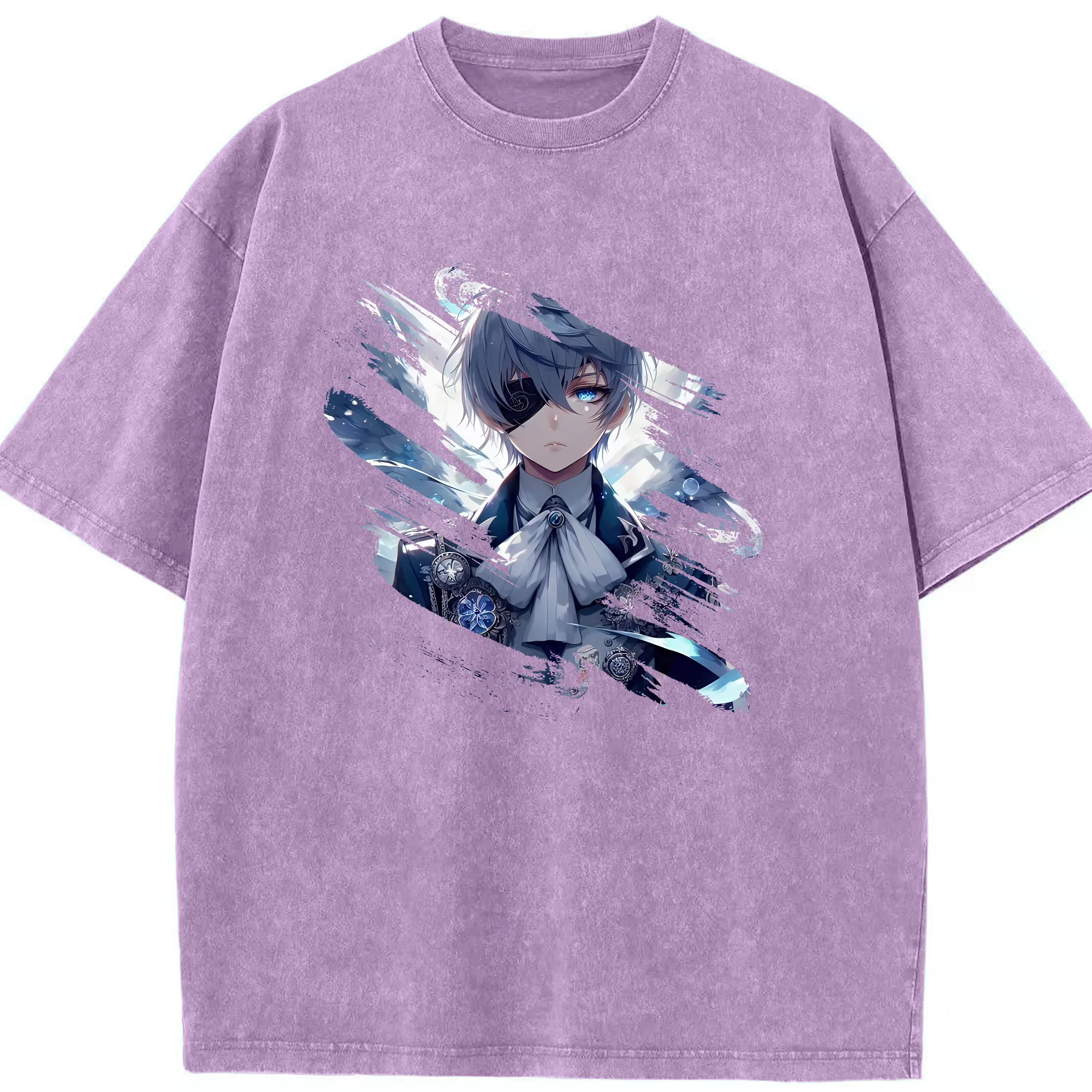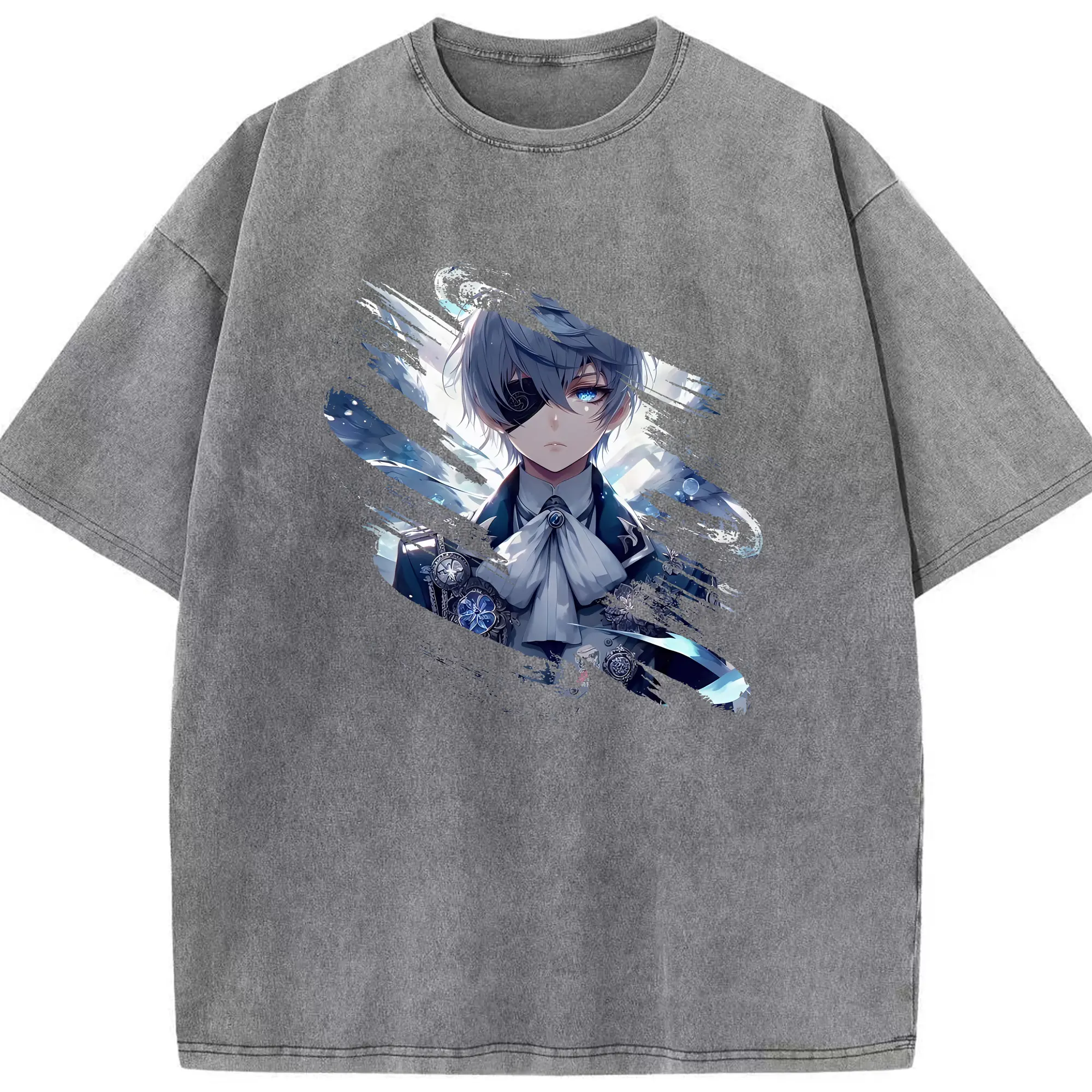 黒執事 グッズ,シエル・ファントムハイヴ - 綿100% 半袖Tシャツ ・ フロントプリント ・ 快適 通気性 ・ 日常使い 散歩 スポーツ用