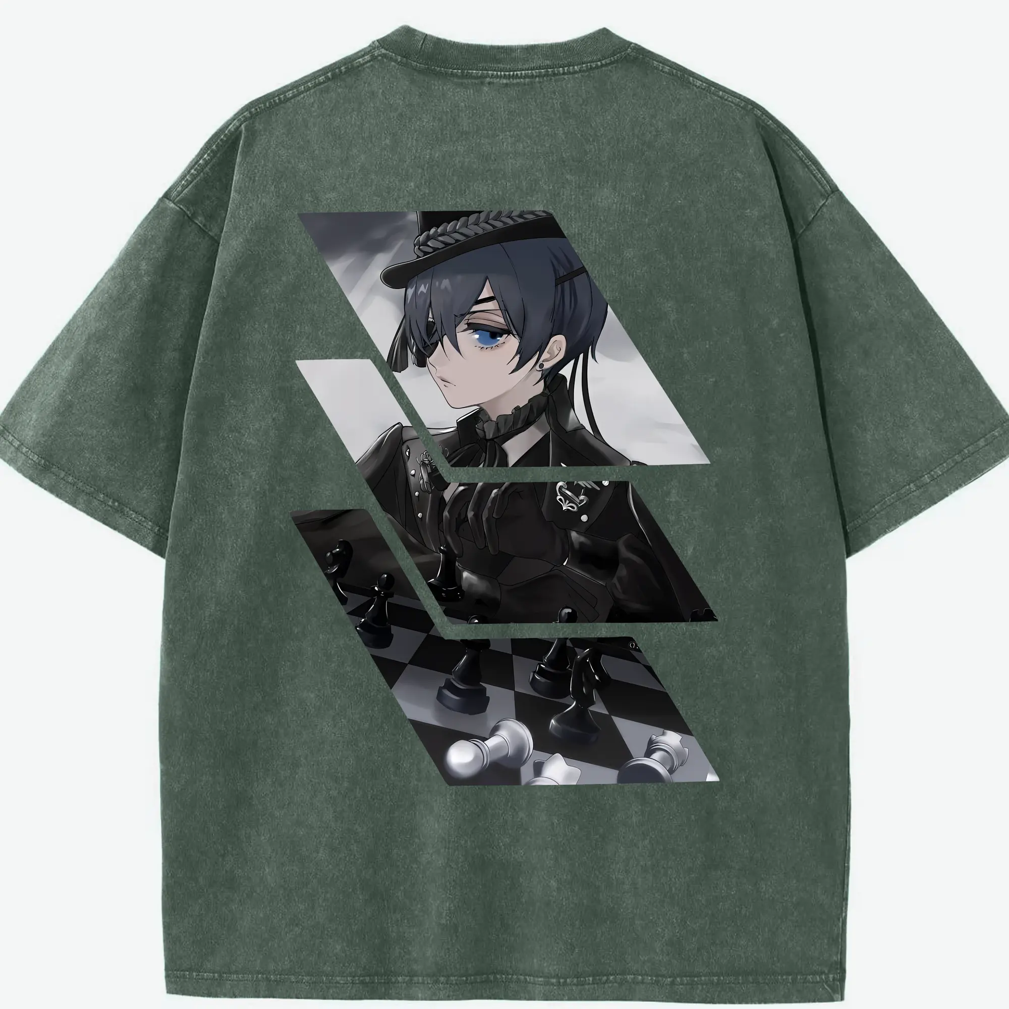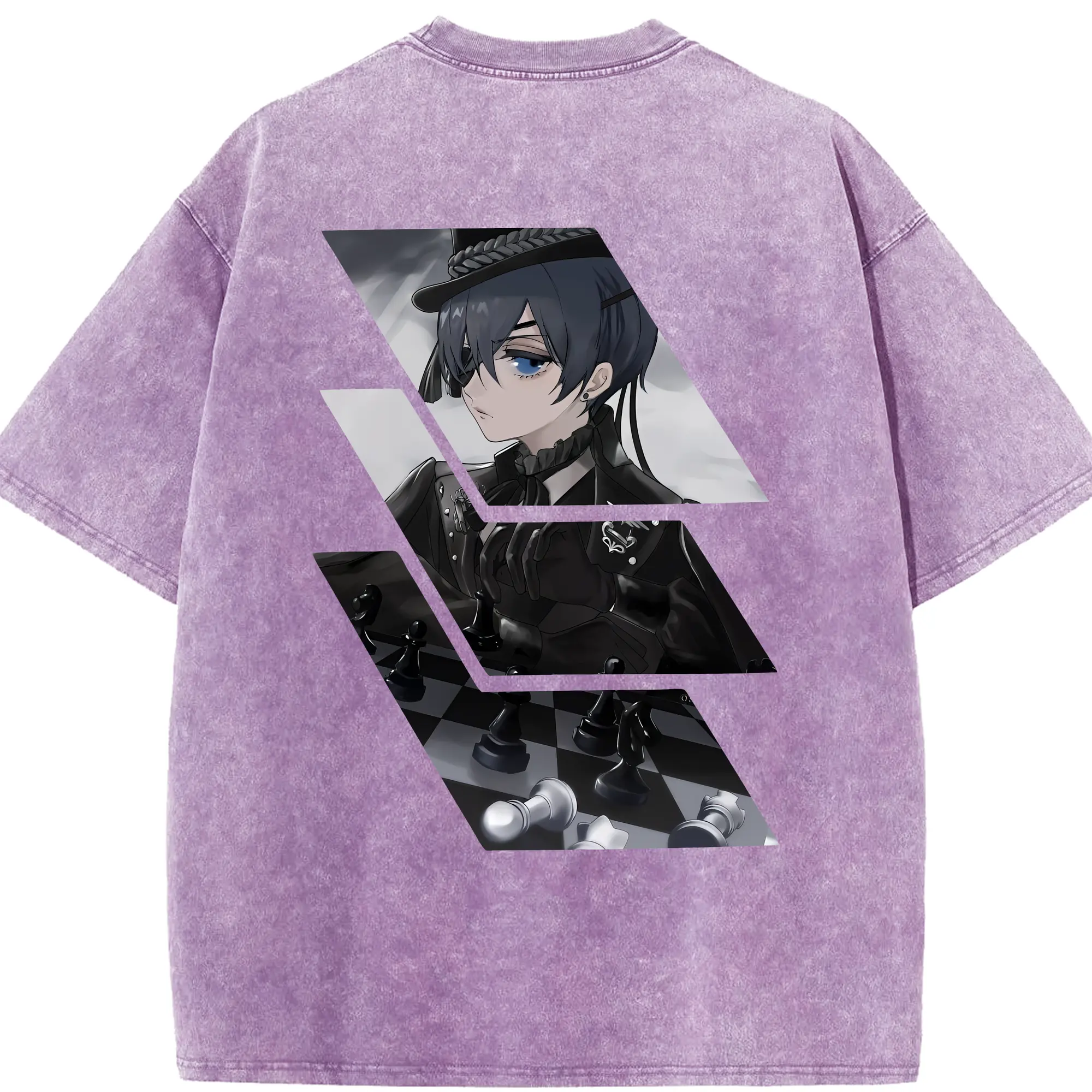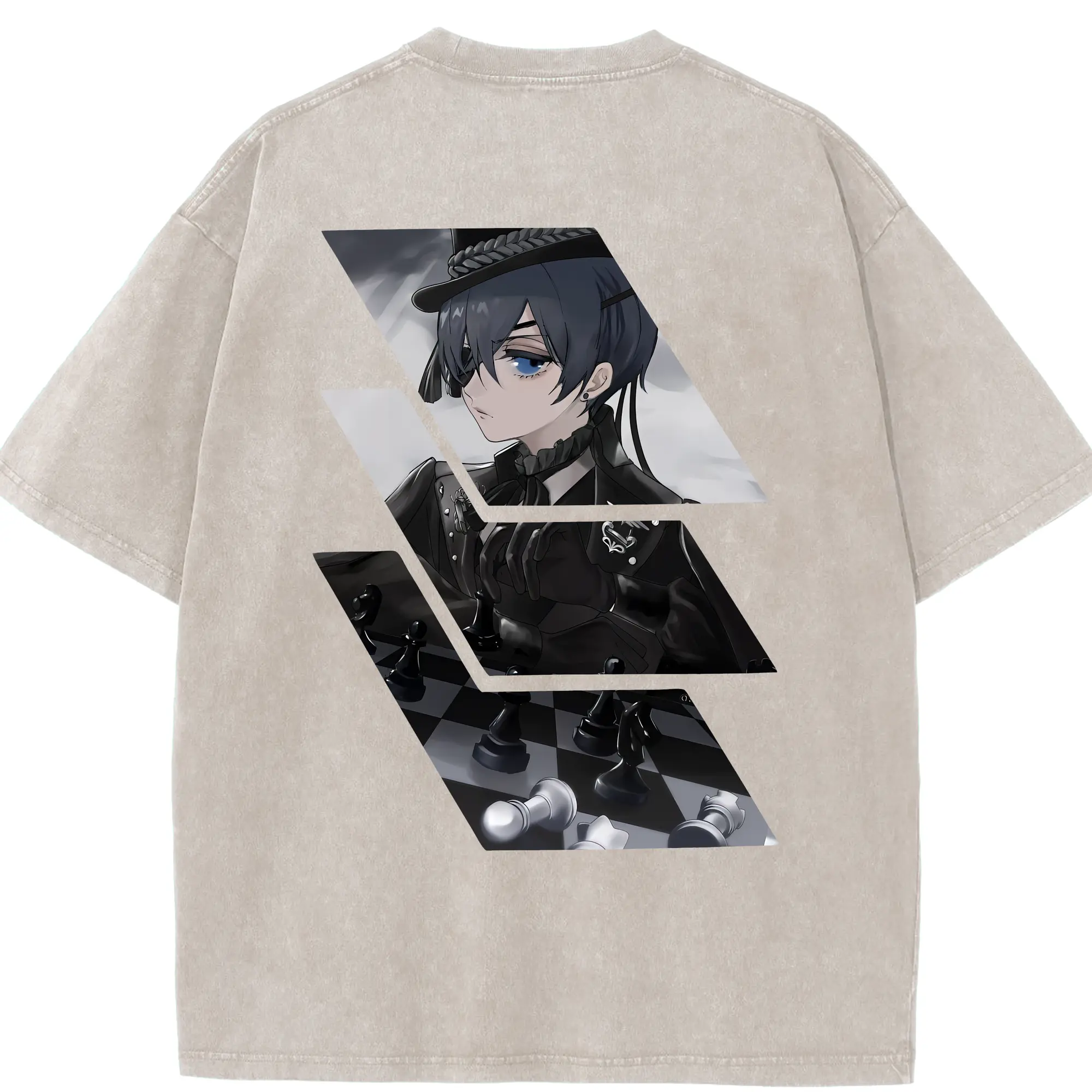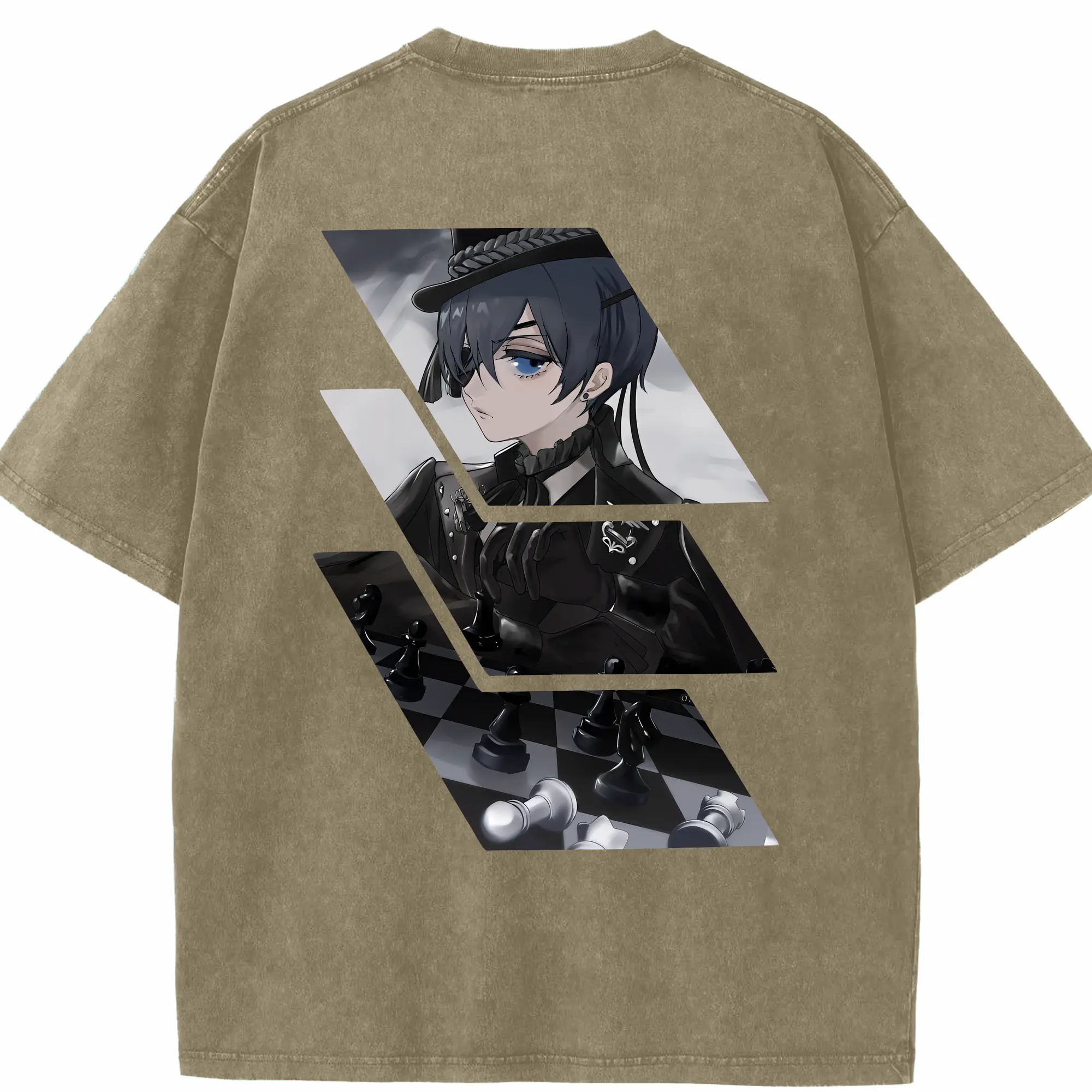 黒執事 グッズ,シエル・ファントムハイヴ - 綿100% 半袖Tシャツ ・ バックプリント ・ 快適 通気性 ・ 日常使い 散歩 スポーツ用