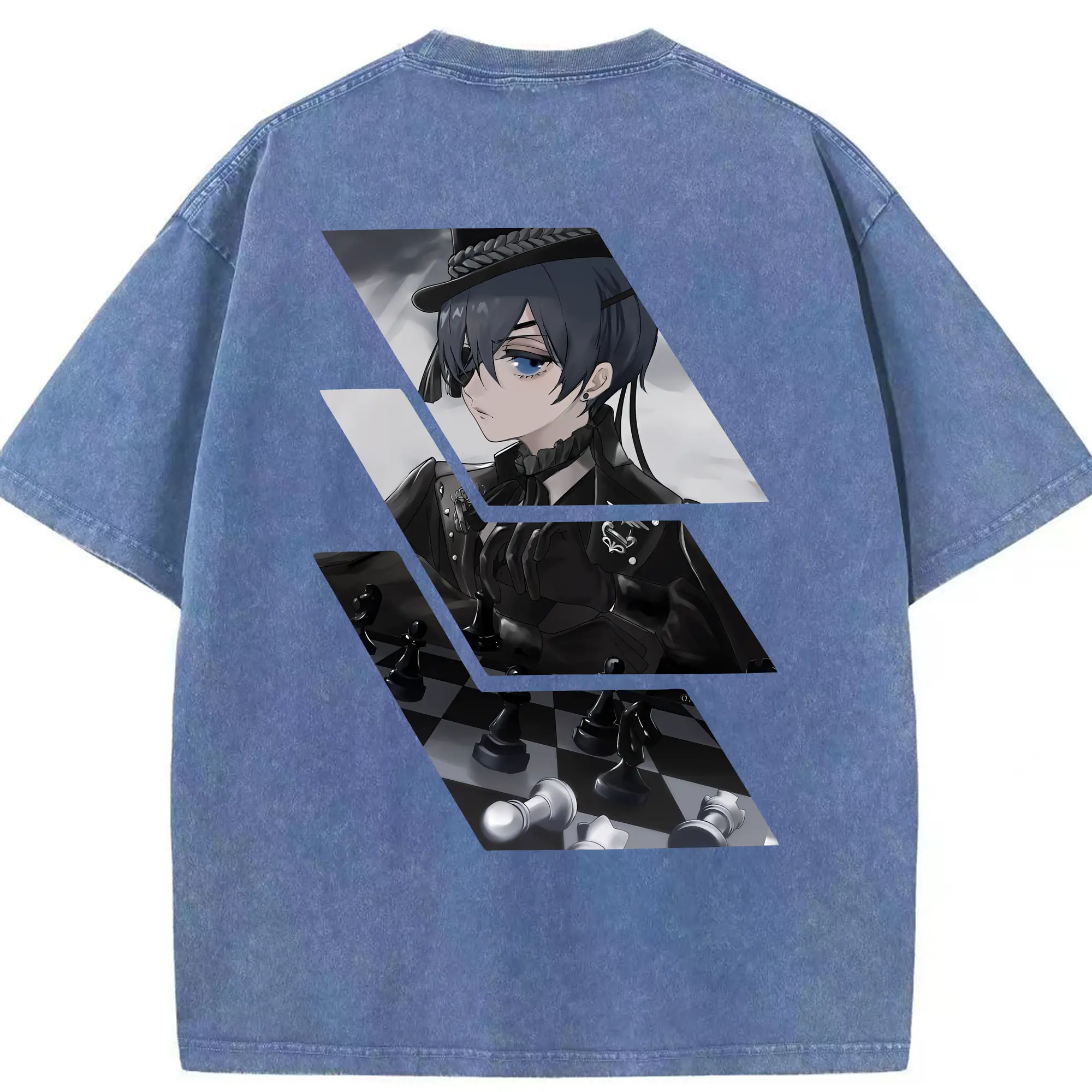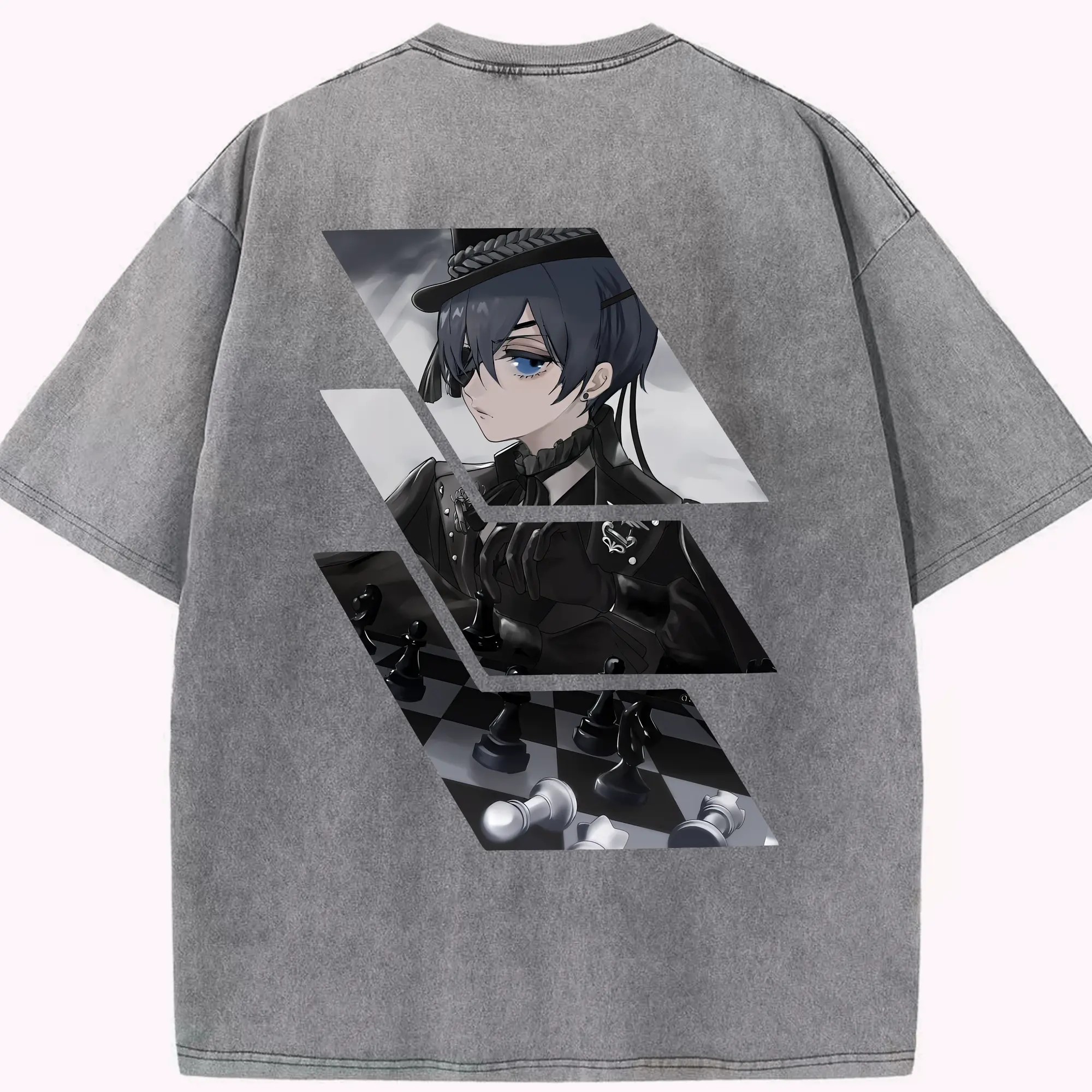 黒執事 グッズ,シエル・ファントムハイヴ - 綿100% ヴィンテージ風 半袖Tシャツ ・ フロントプリント ・ 柔らか肌触り ・ 通気性 快適 ・ スポーツ カジュアル 外出用