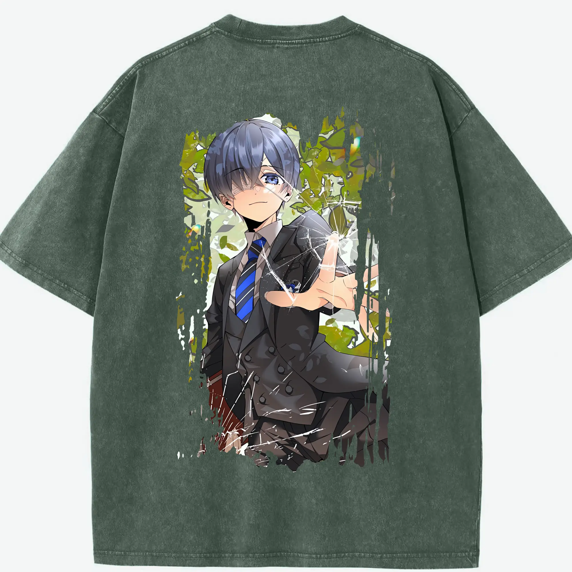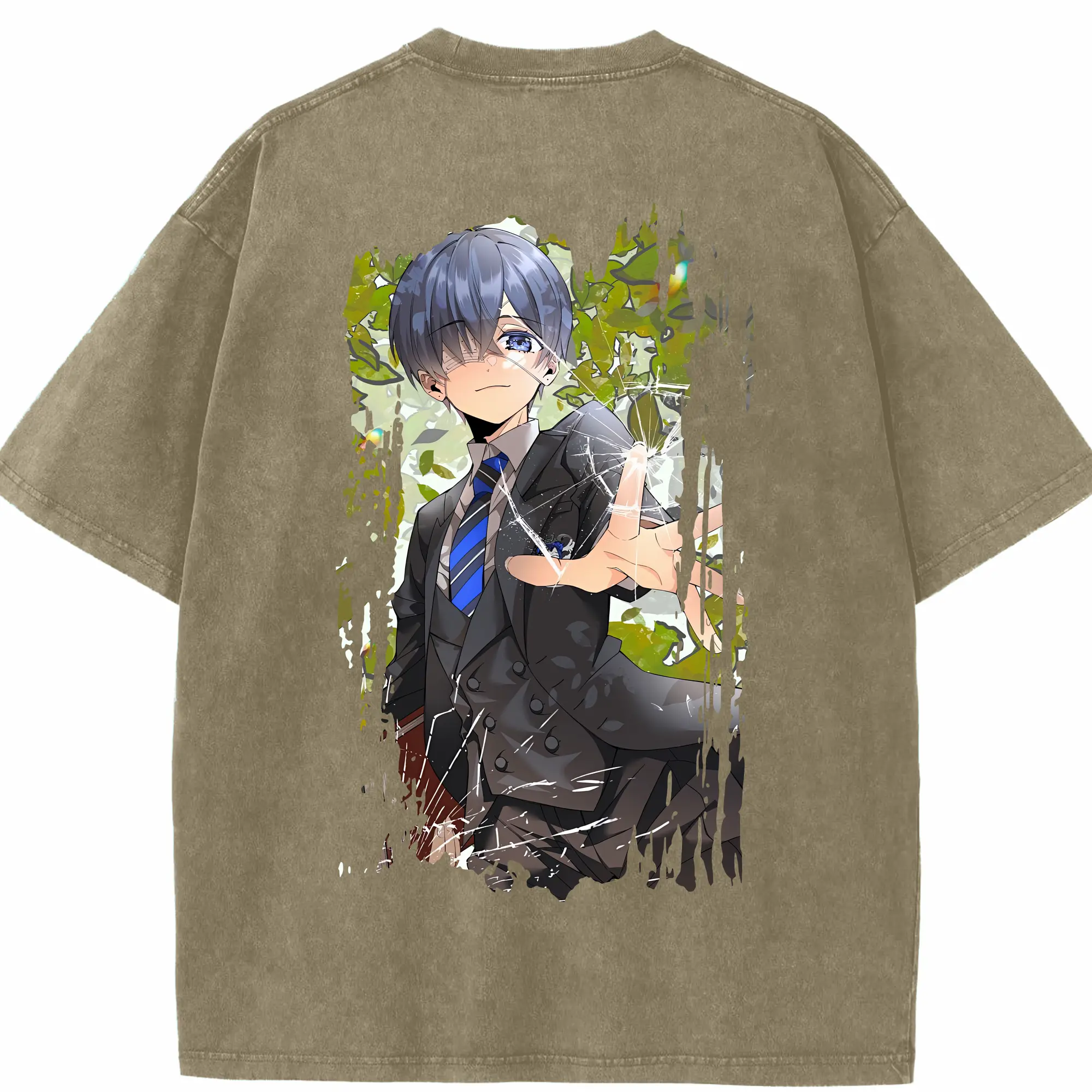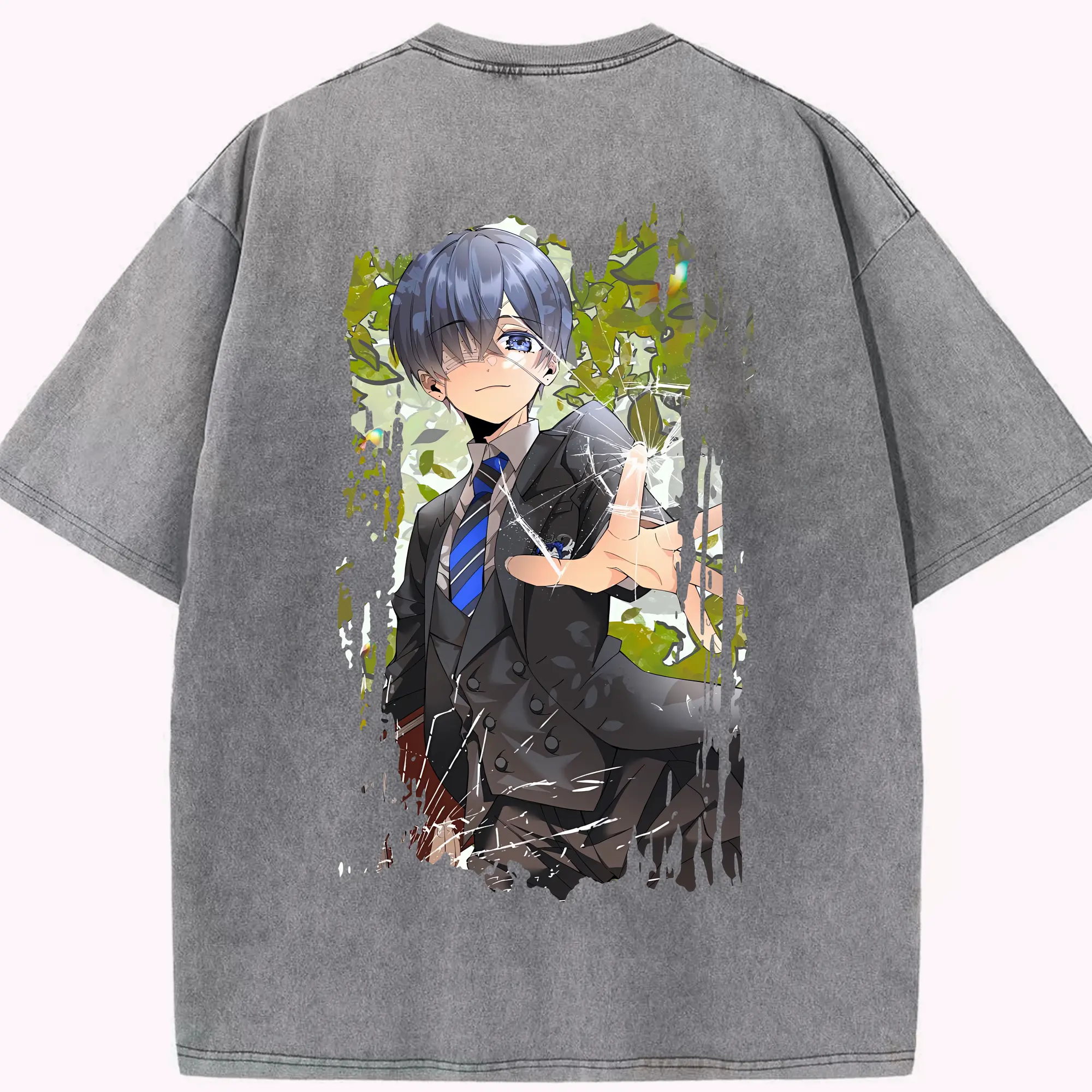 黒執事 グッズ,シエル・ファントムハイヴ - 綿100% ヴィンテージ風 半袖Tシャツ ・ フロントプリント ・ 柔らか肌触り ・ 通気性 快適 ・ スポーツ カジュアル 外出用