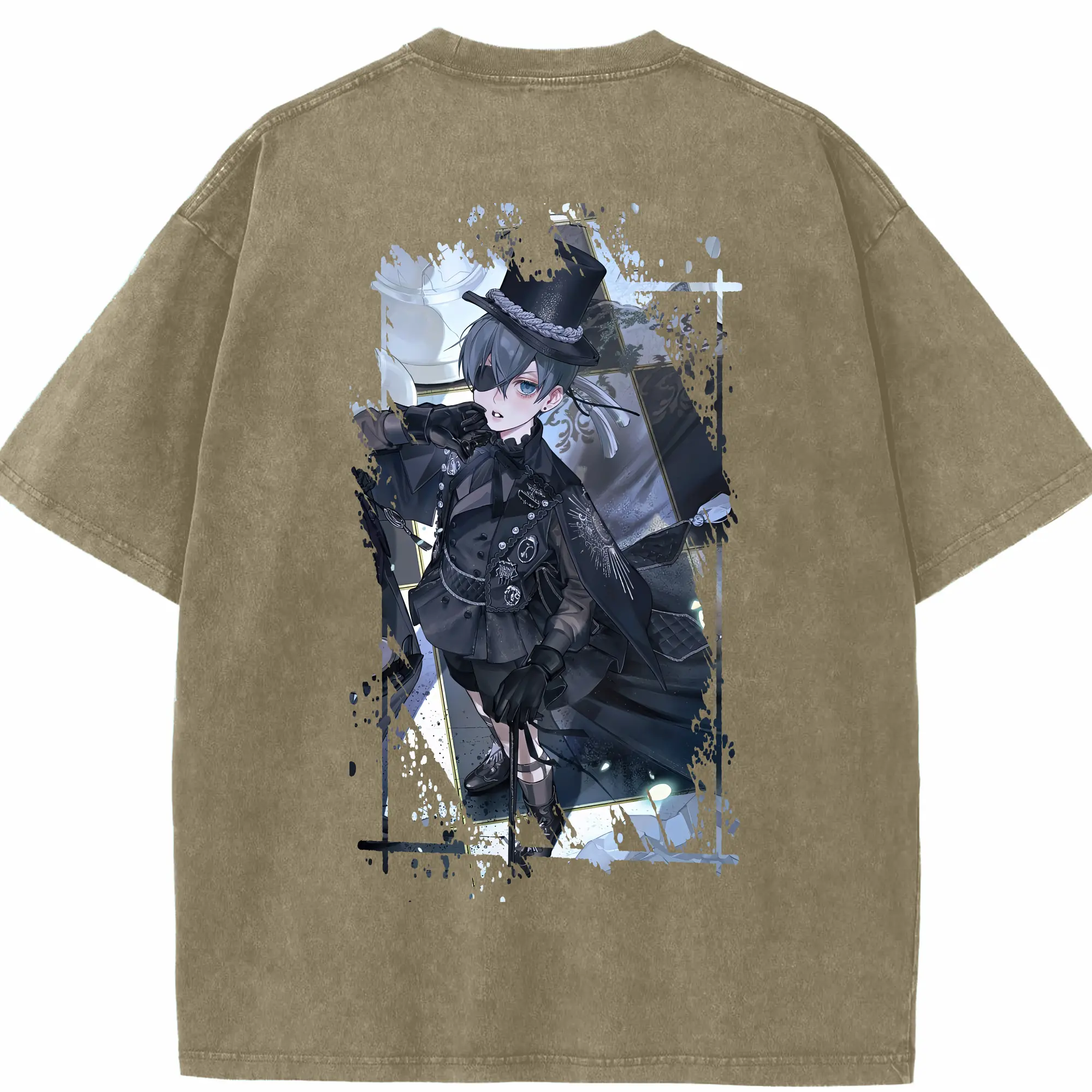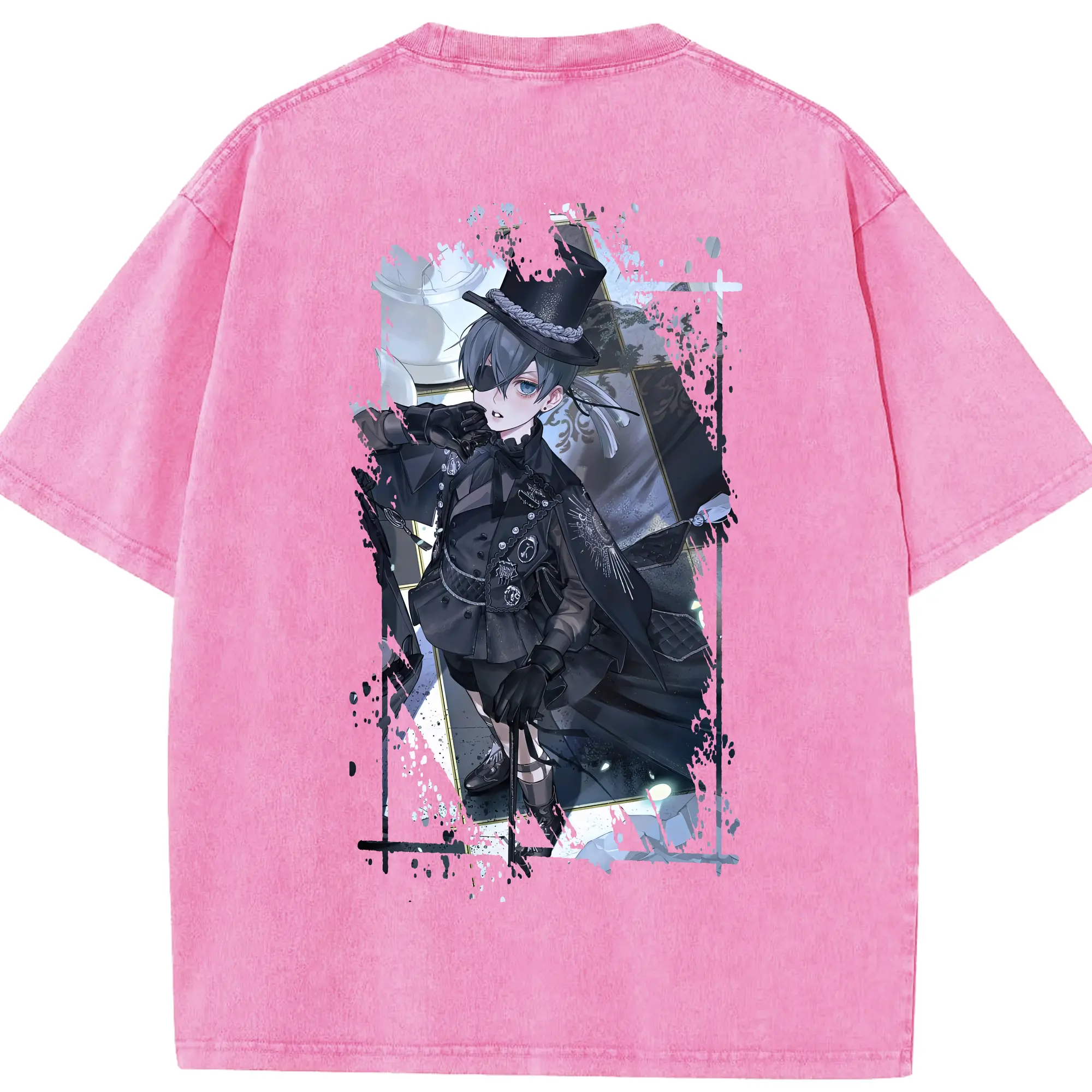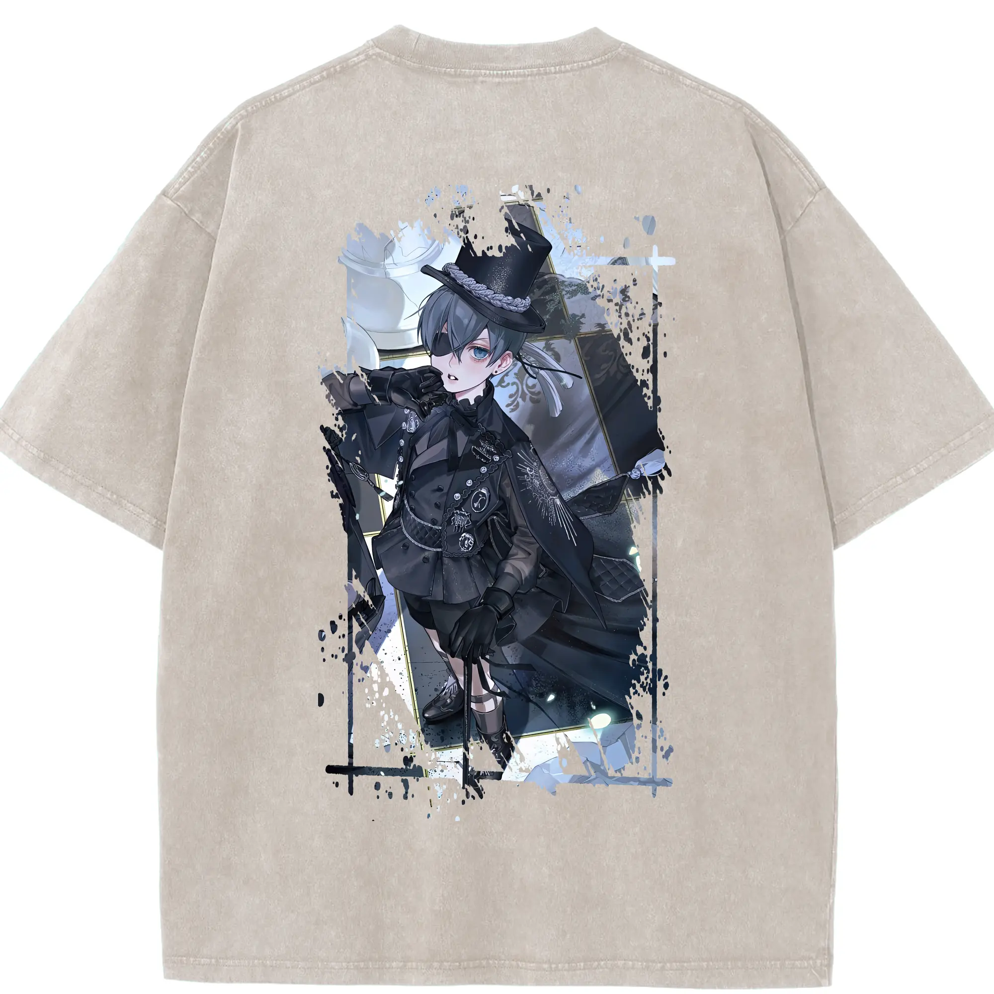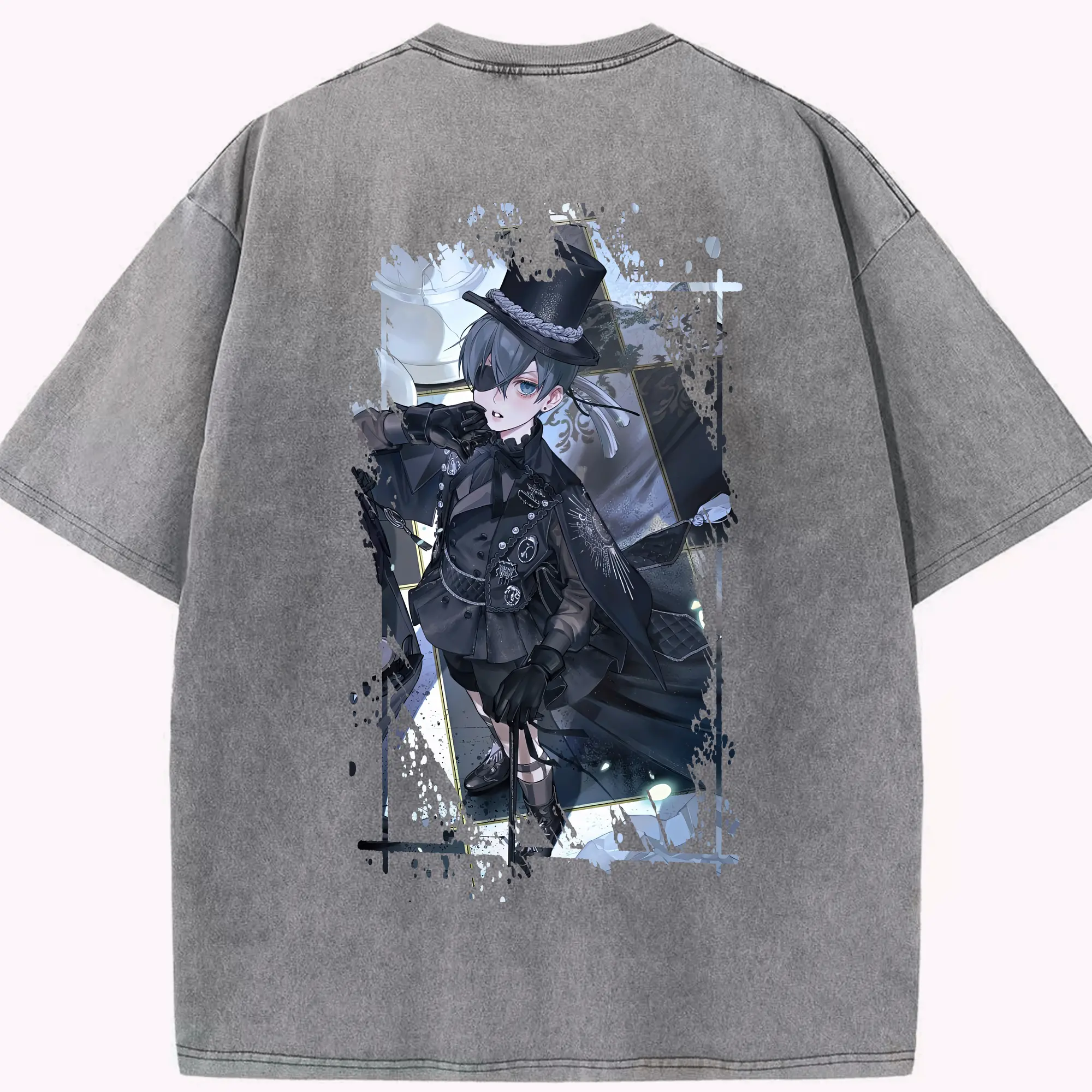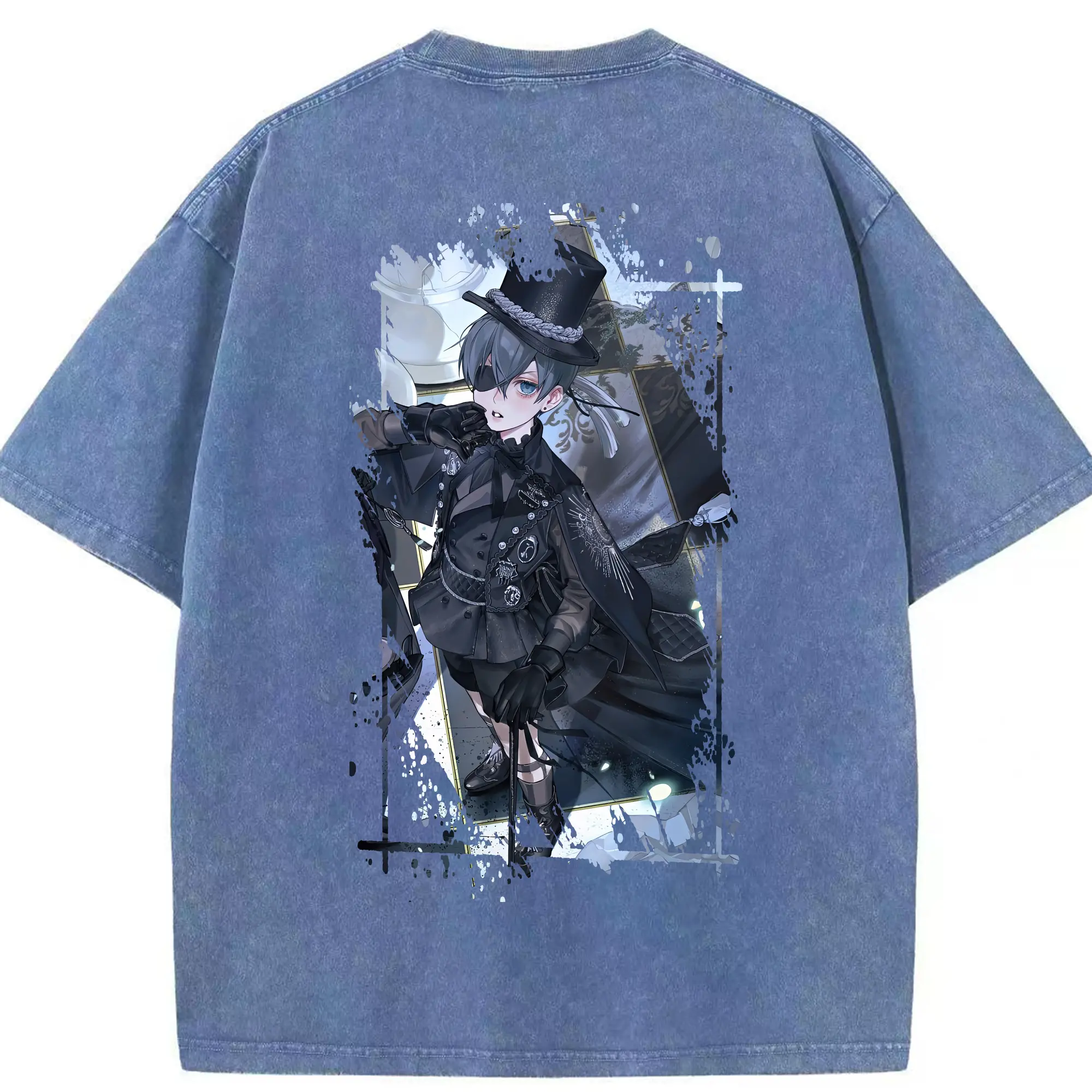 黒執事 グッズ,シエル・ファントムハイヴ - 綿100% 半袖Tシャツ ・ バックプリント ・ 快適 通気性 ・ 日常使い 散歩 スポーツ用