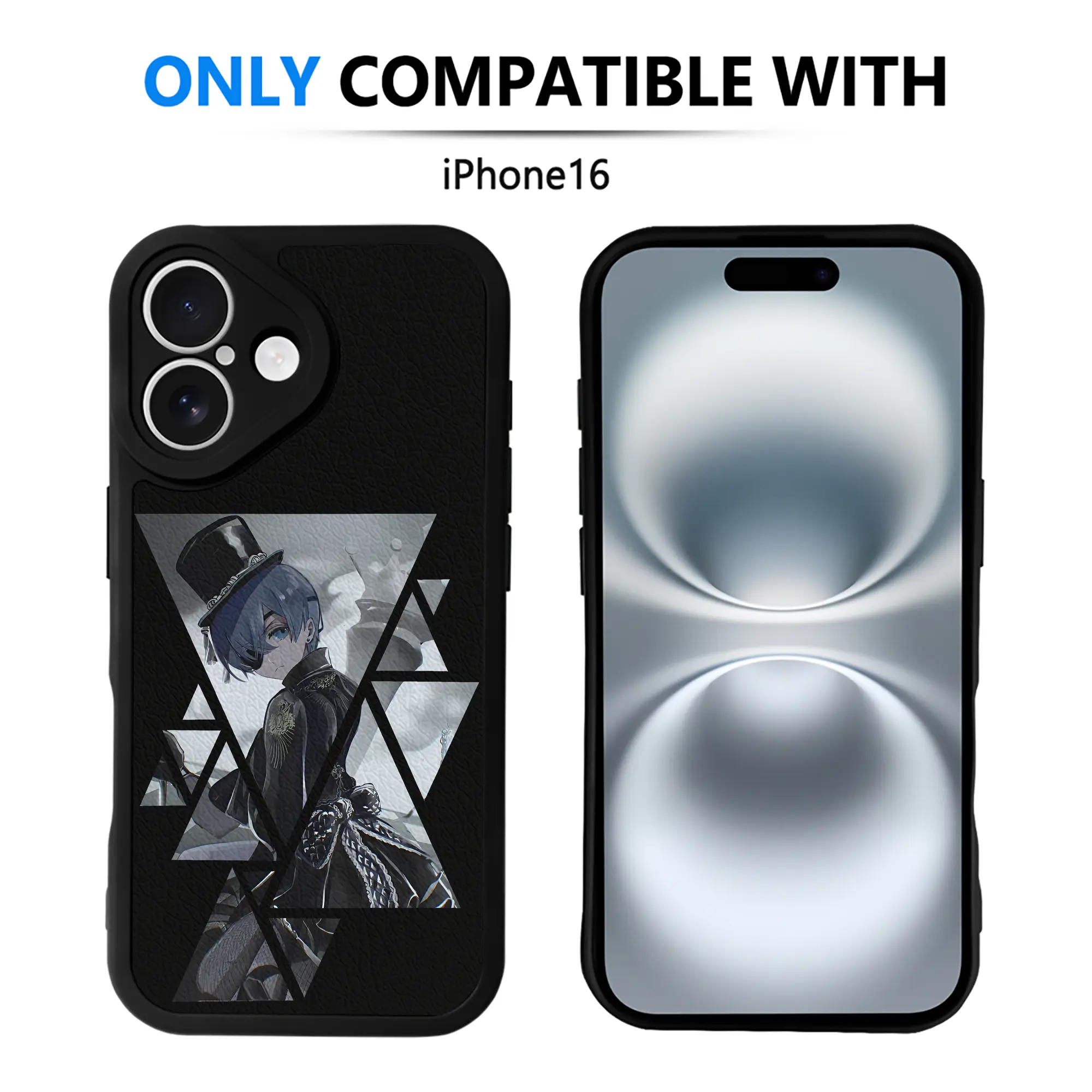 黒執事 グッズ,シエル・ファントムハイヴ - IPhone 16シリーズ対応 ・ シリコンスマホケース ・ レザー調 ・ 高精度フィット ・ 耐衝撃 ・ ワイヤレス充電対応 ・ 精密カット