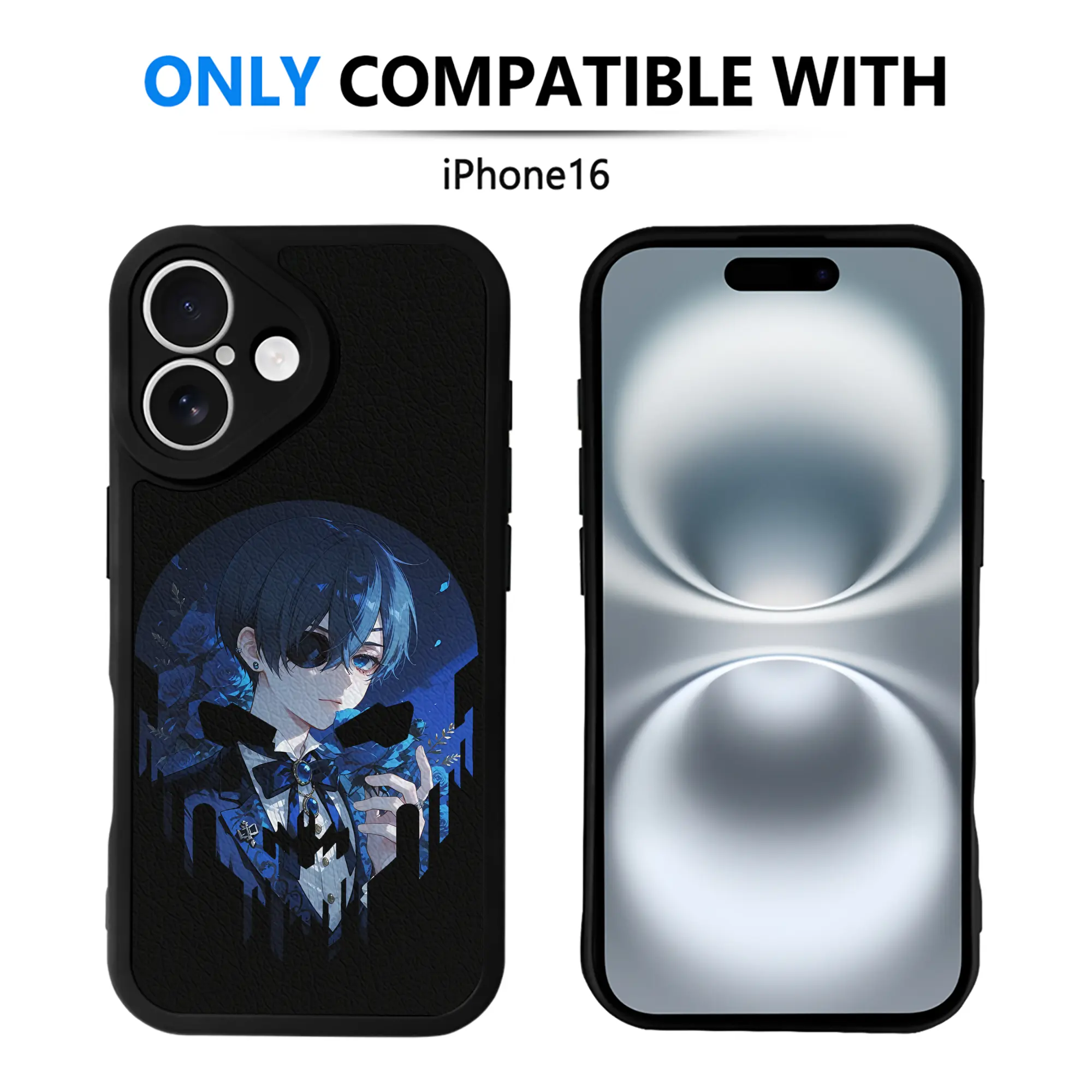 黒執事 グッズ,シエル・ファントムハイヴ - IPhone 16シリーズ対応 ・ シリコンスマホケース ・ レザー調 ・ 高精度フィット ・ 耐衝撃 ・ ワイヤレス充電対応 ・ 精密カット
