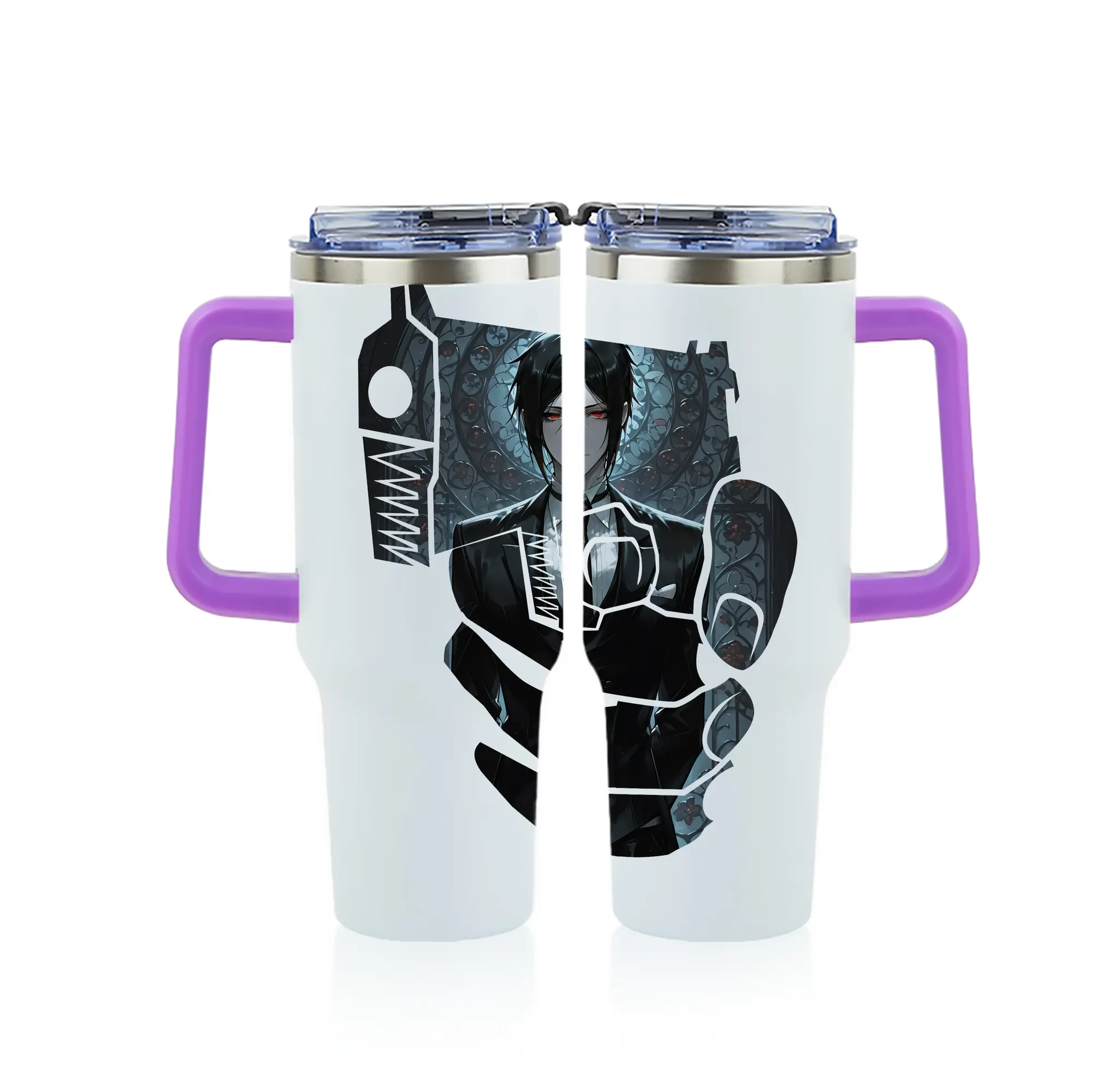 黒執事 グッズ,セバスチャン・ミカエリス - 1200mL フルプリント車用タンブラー ・ 304ステンレス 内側 ・ 201ステンレス 外側 ・ 保温 保冷 ・ 通勤 ドライブ アウトドア用
