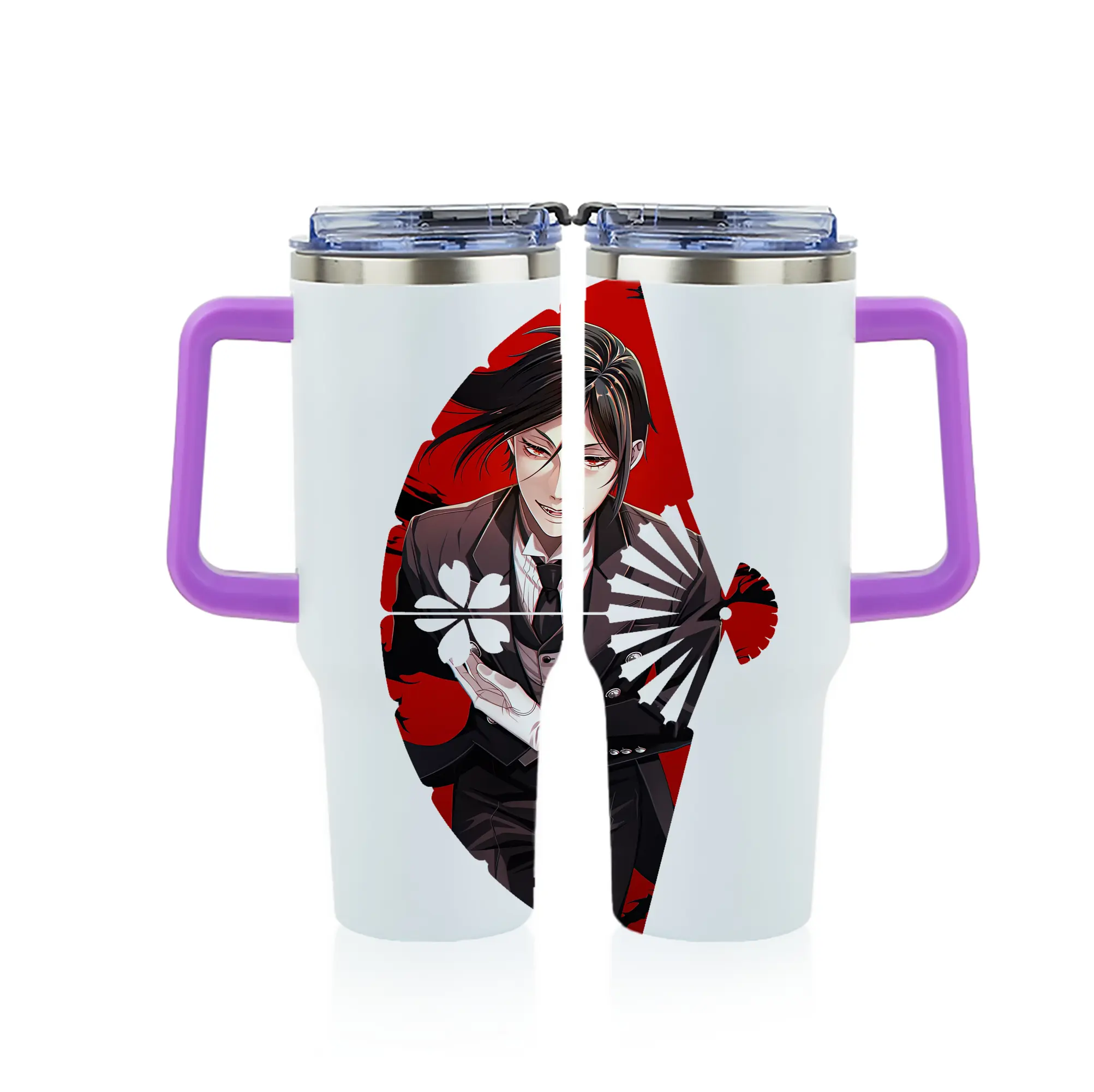 黒執事 グッズ,セバスチャン・ミカエリス - 1200mL フルプリント車用タンブラー ・ 304ステンレス 内側 ・ 201ステンレス 外側 ・ 保温 保冷 ・ 通勤 ドライブ アウトドア用