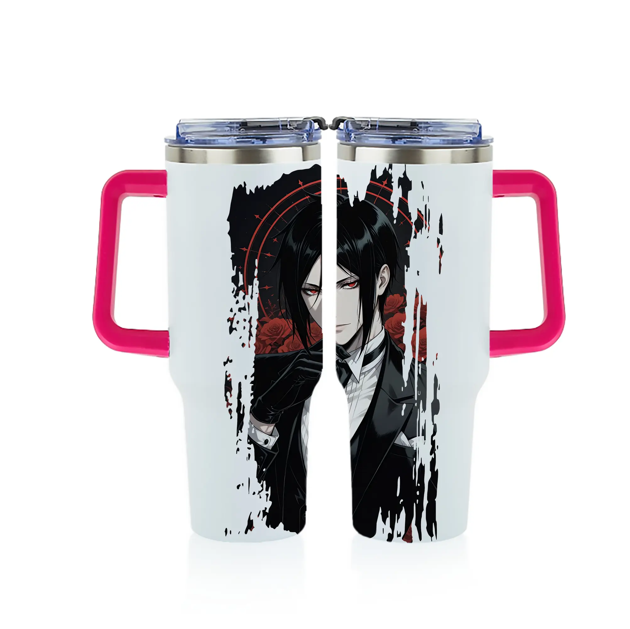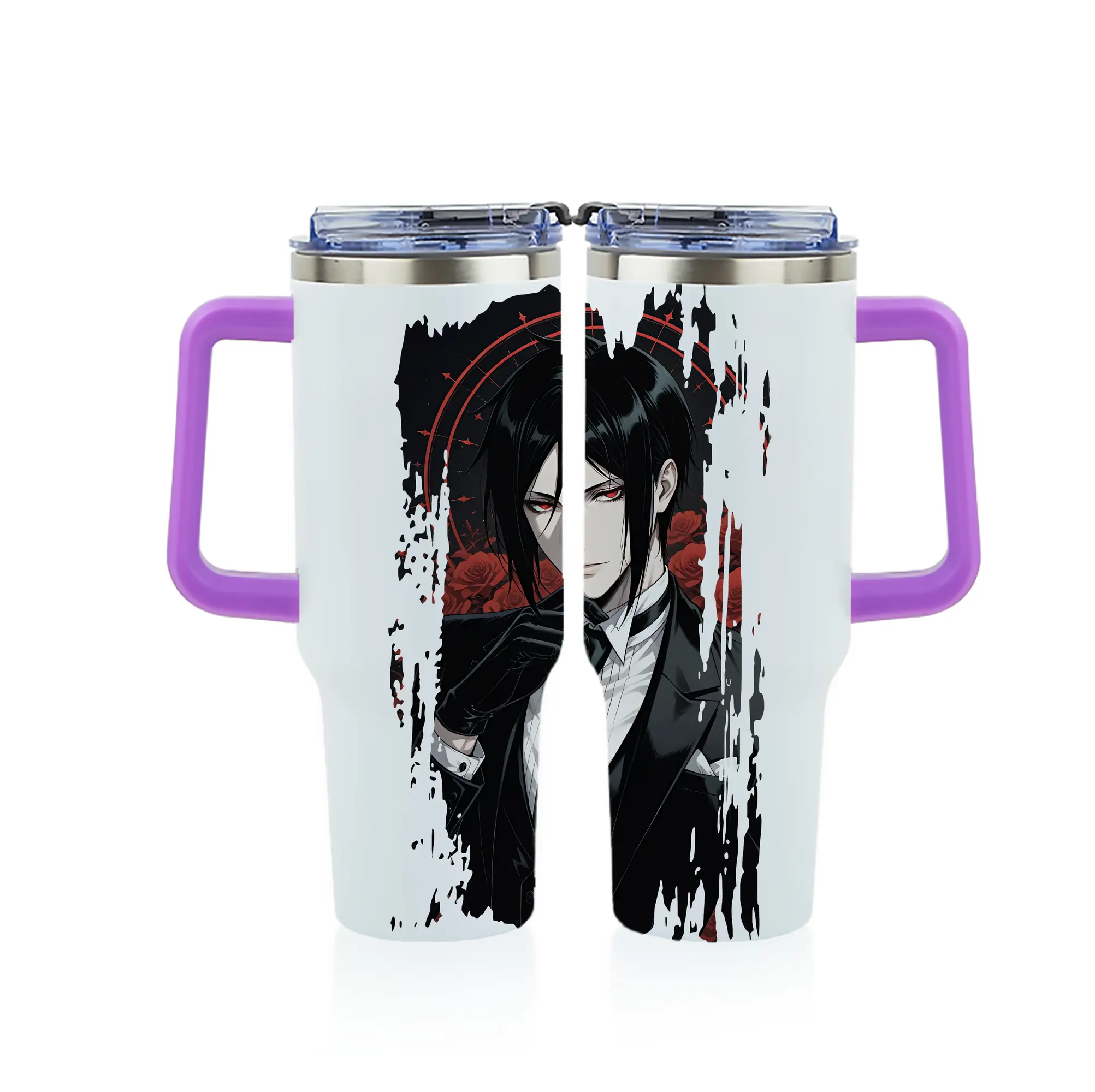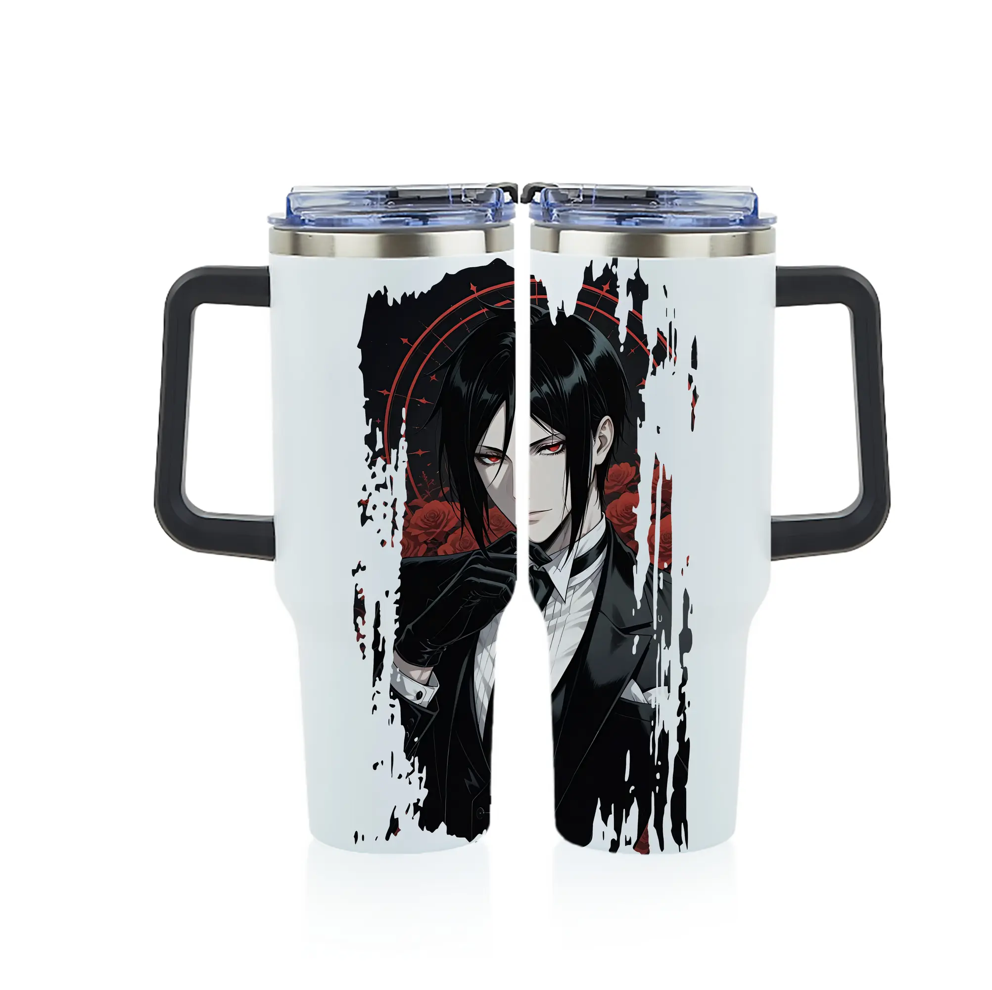 黒執事 グッズ,セバスチャン・ミカエリス - 1200mL フルプリント車用タンブラー ・ 304ステンレス 内側 ・ 201ステンレス 外側 ・ 保温 保冷 ・ 通勤 ドライブ アウトドア用