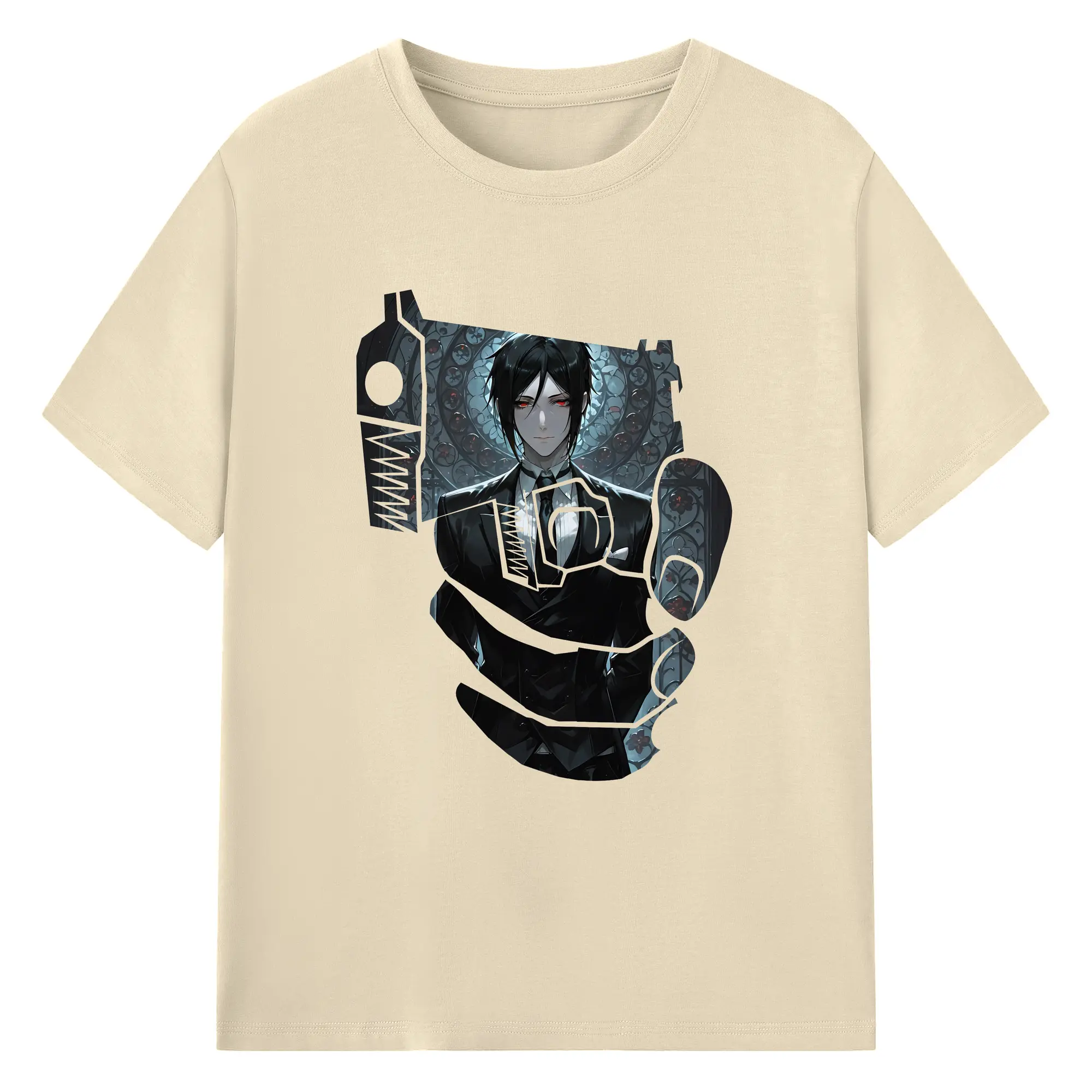 黒執事 グッズ,セバスチャン・ミカエリス - 綿100% ヴィンテージ風 半袖Tシャツ ・ フロントプリント ・ 柔らか肌触り ・ 通気性 快適 ・ スポーツ カジュアル 外出用