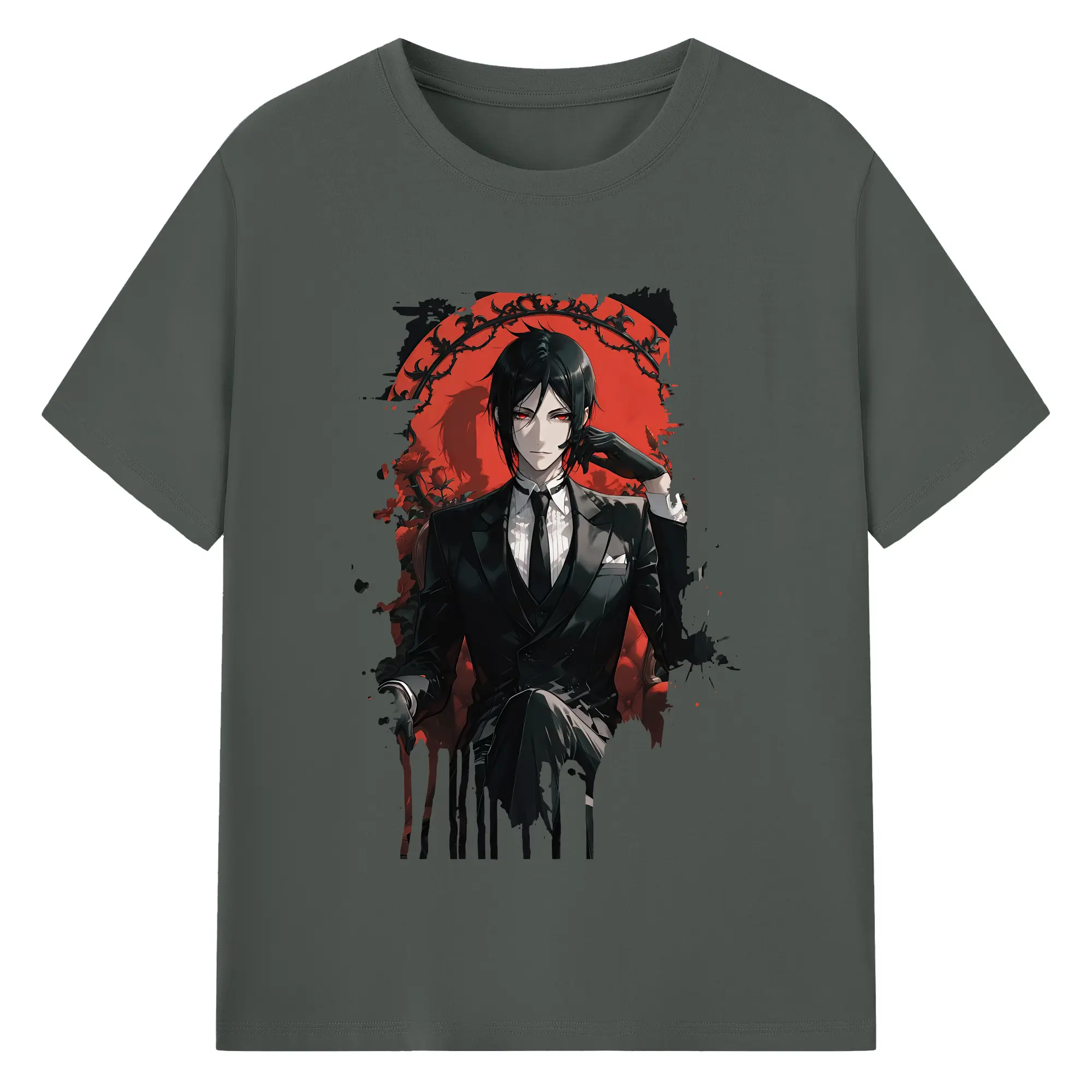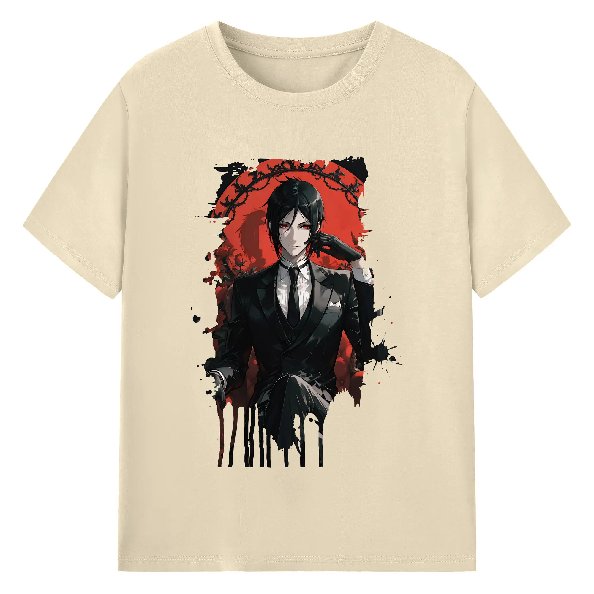黒執事 グッズ,セバスチャン・ミカエリス - 綿100% ヴィンテージ風 半袖Tシャツ ・ フロントプリント ・ 柔らか肌触り ・ 通気性 快適 ・ スポーツ カジュアル 外出用