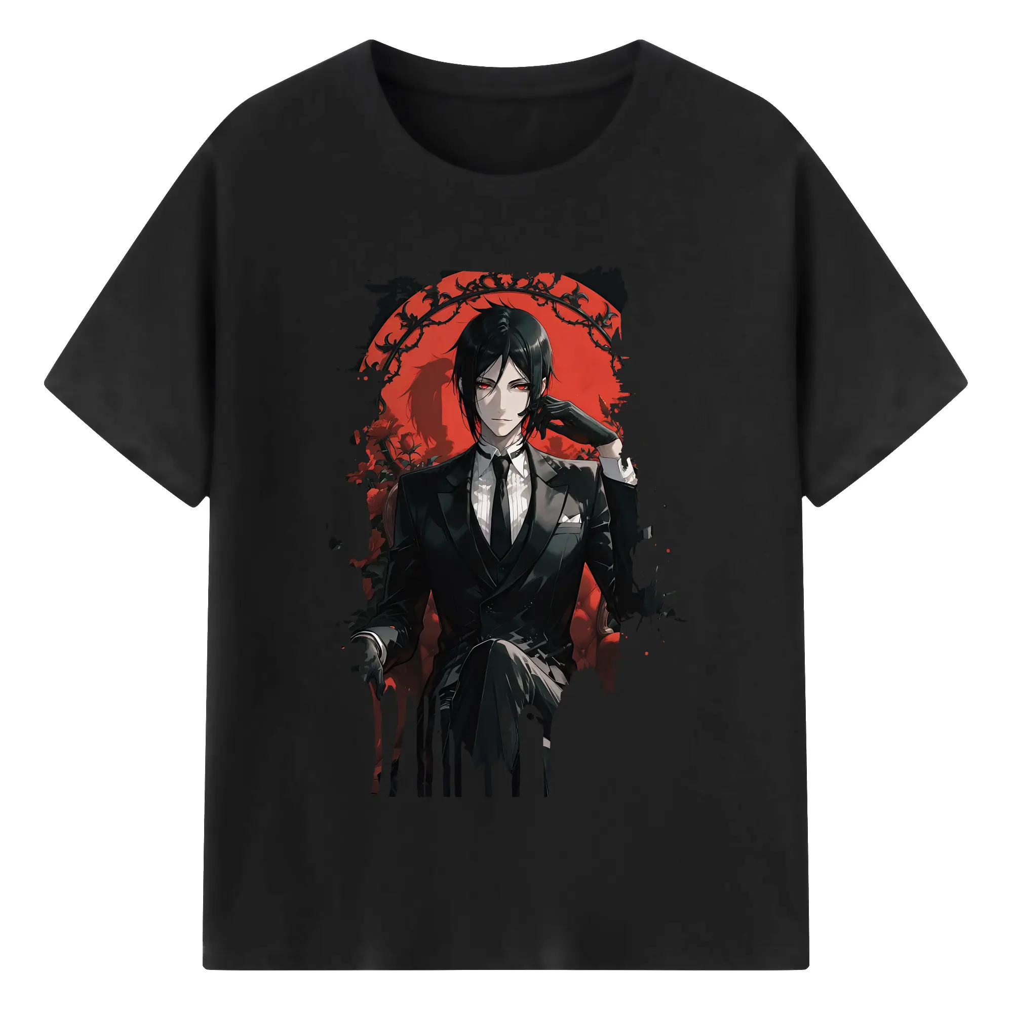 黒執事 グッズ,セバスチャン・ミカエリス - 綿100% 半袖Tシャツ ・ バックプリント ・ 快適 通気性 ・ 日常使い 散歩 スポーツ用