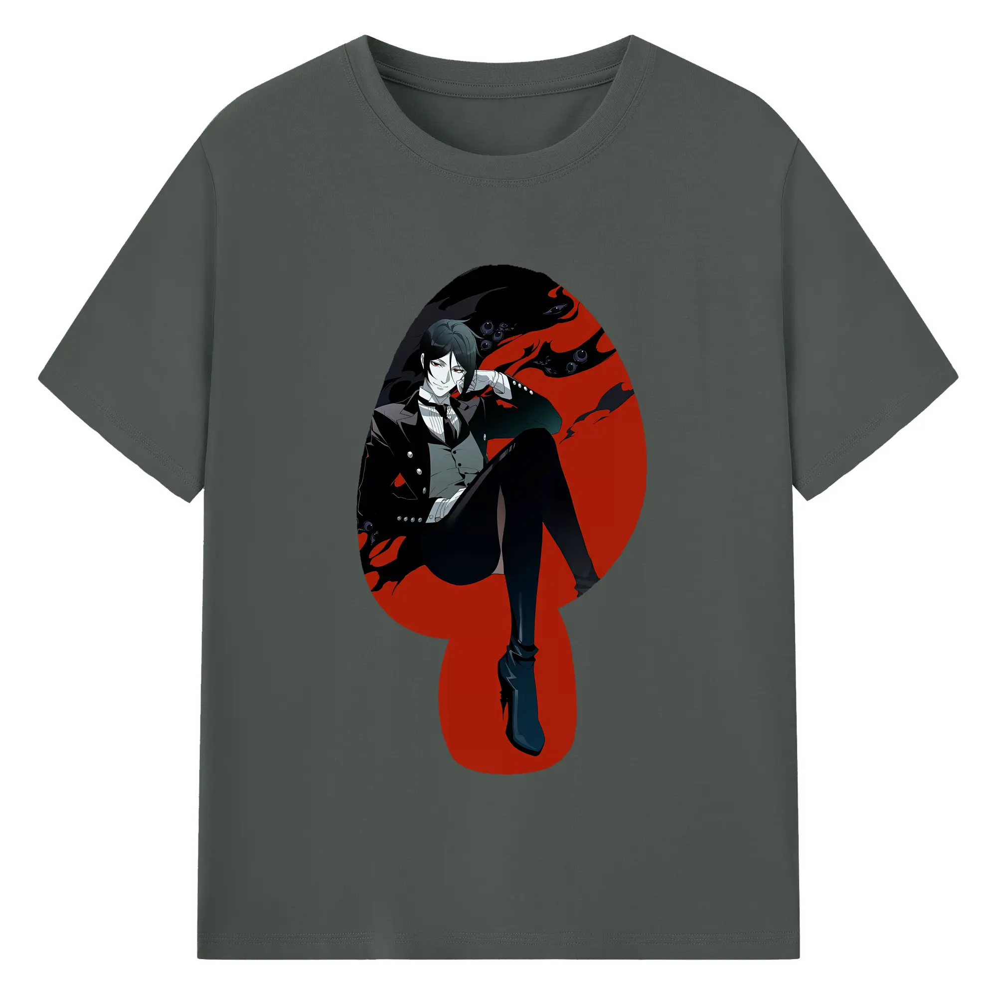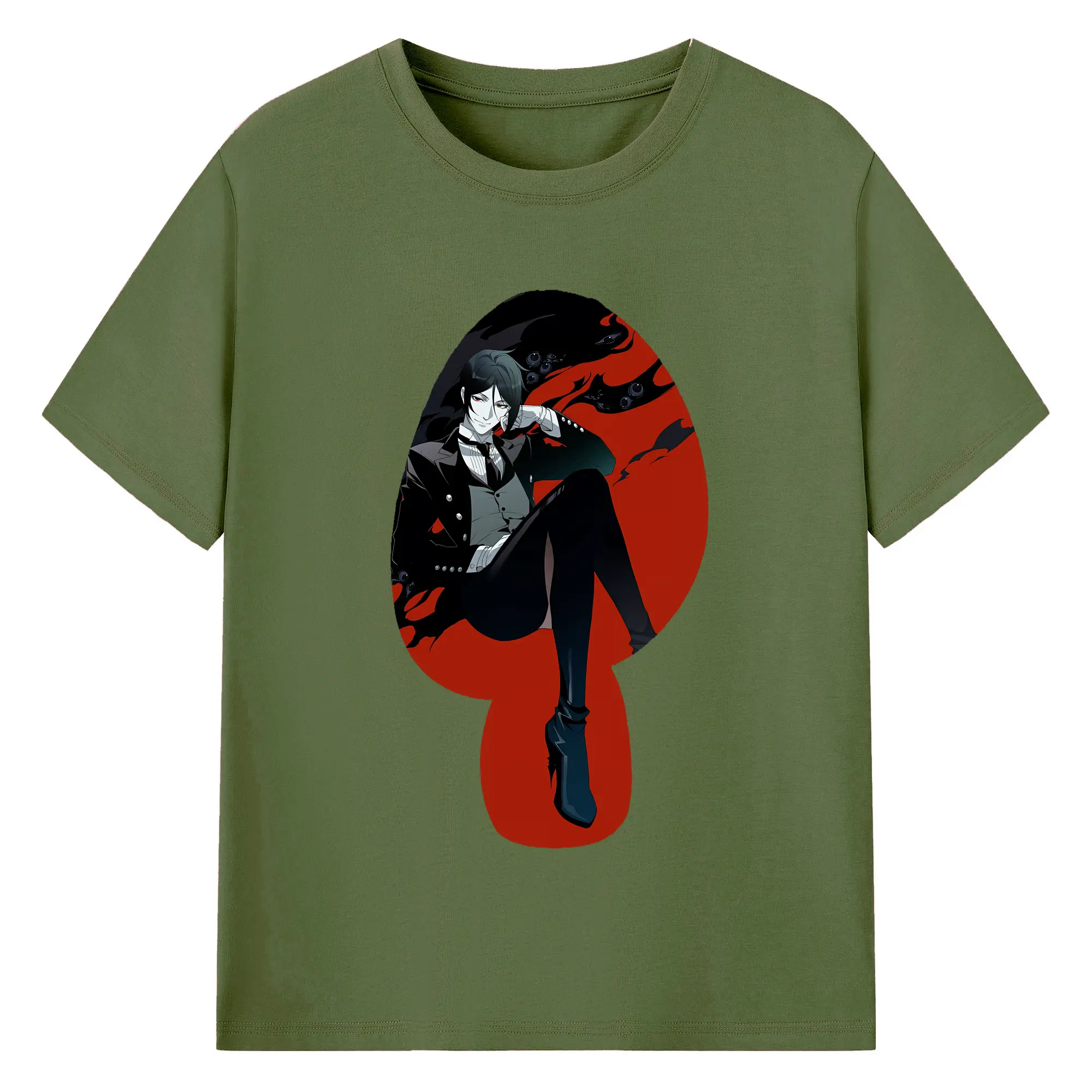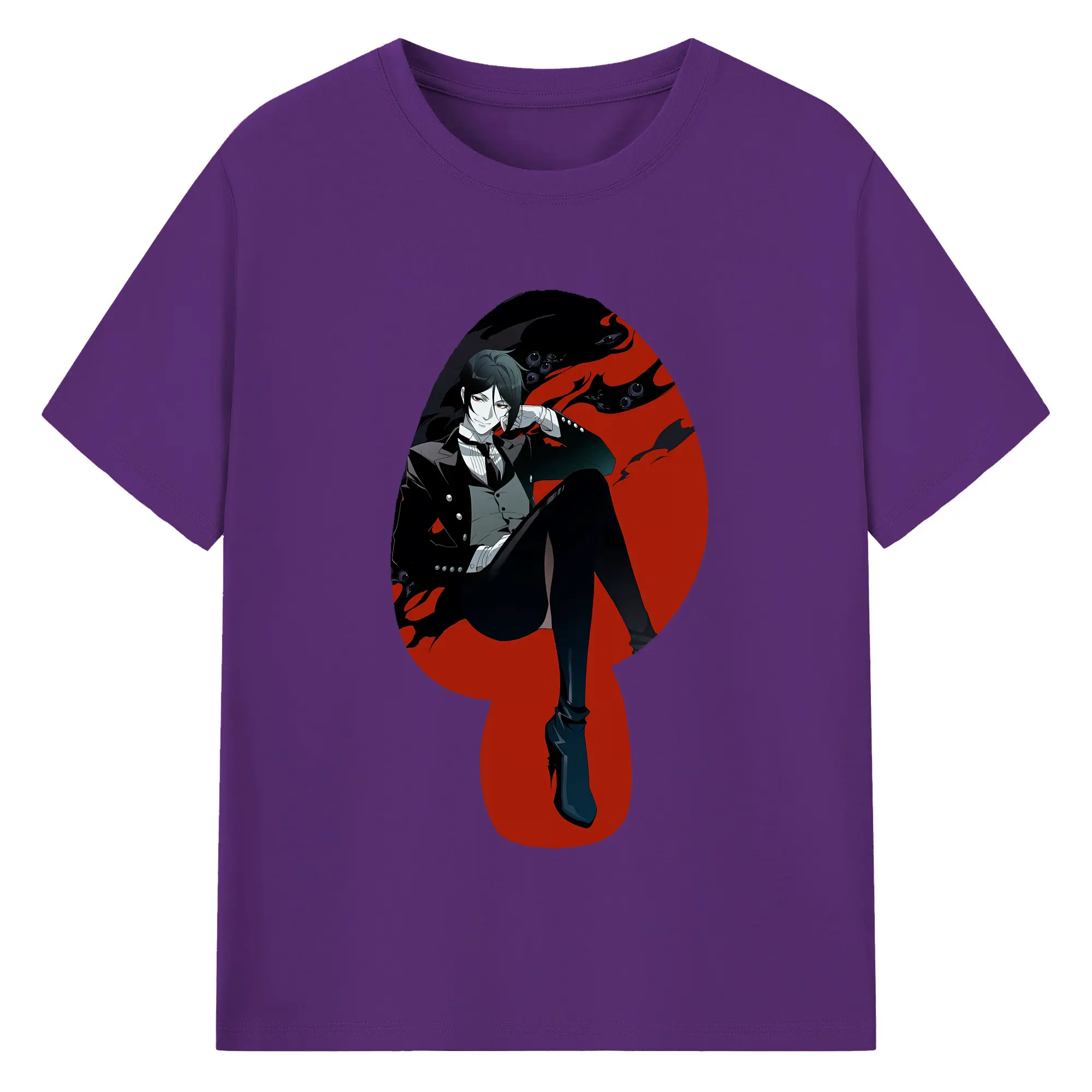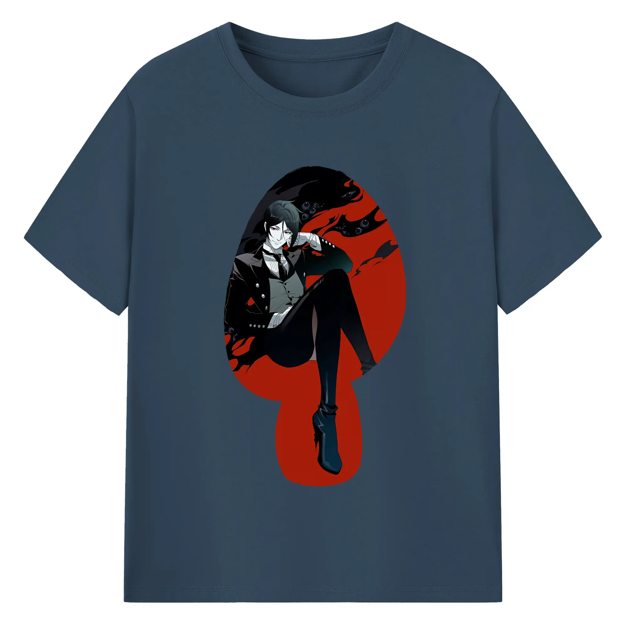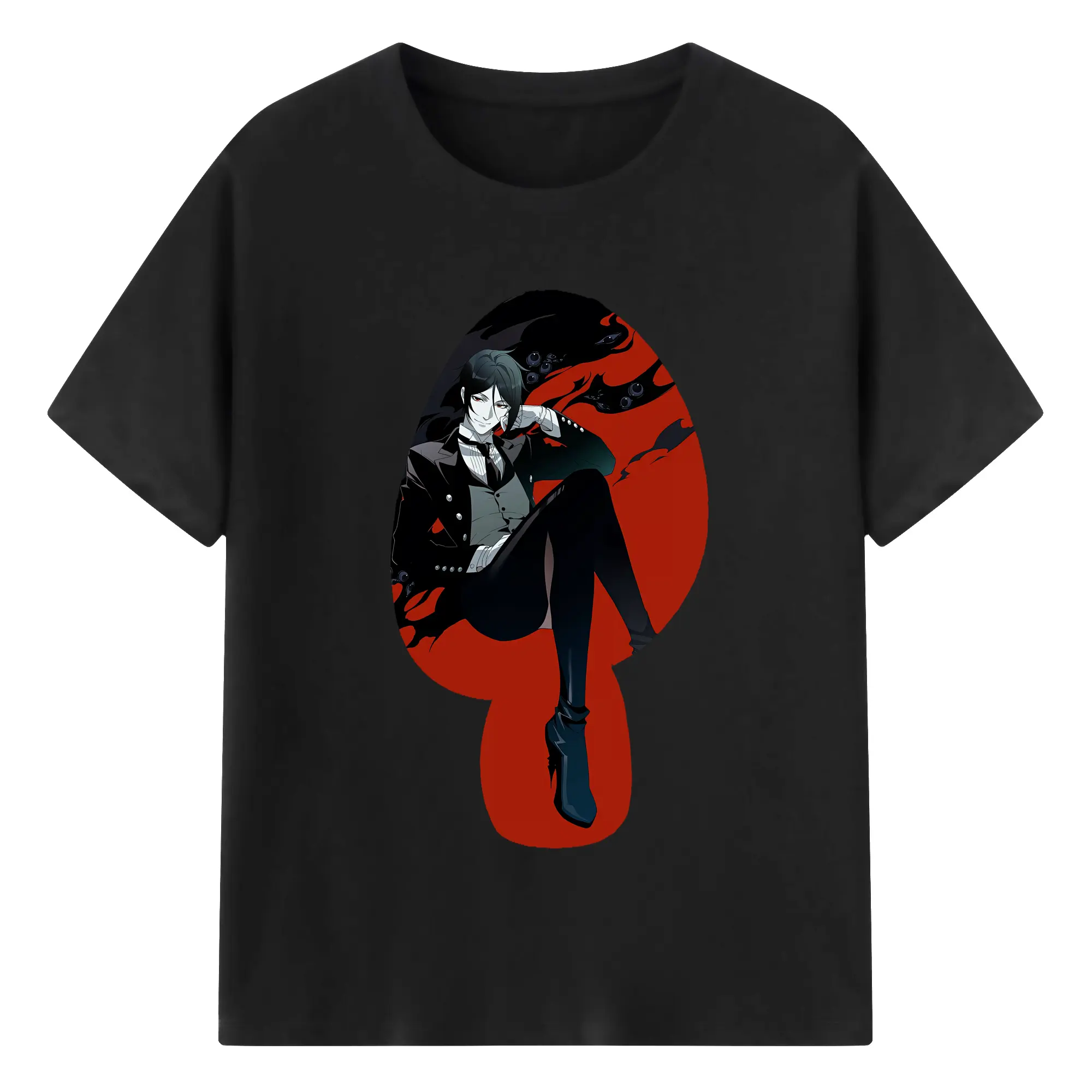 黒執事 グッズ,セバスチャン・ミカエリス - 綿100% 半袖Tシャツ ・ バックプリント ・ 快適 通気性 ・ 日常使い 散歩 スポーツ用