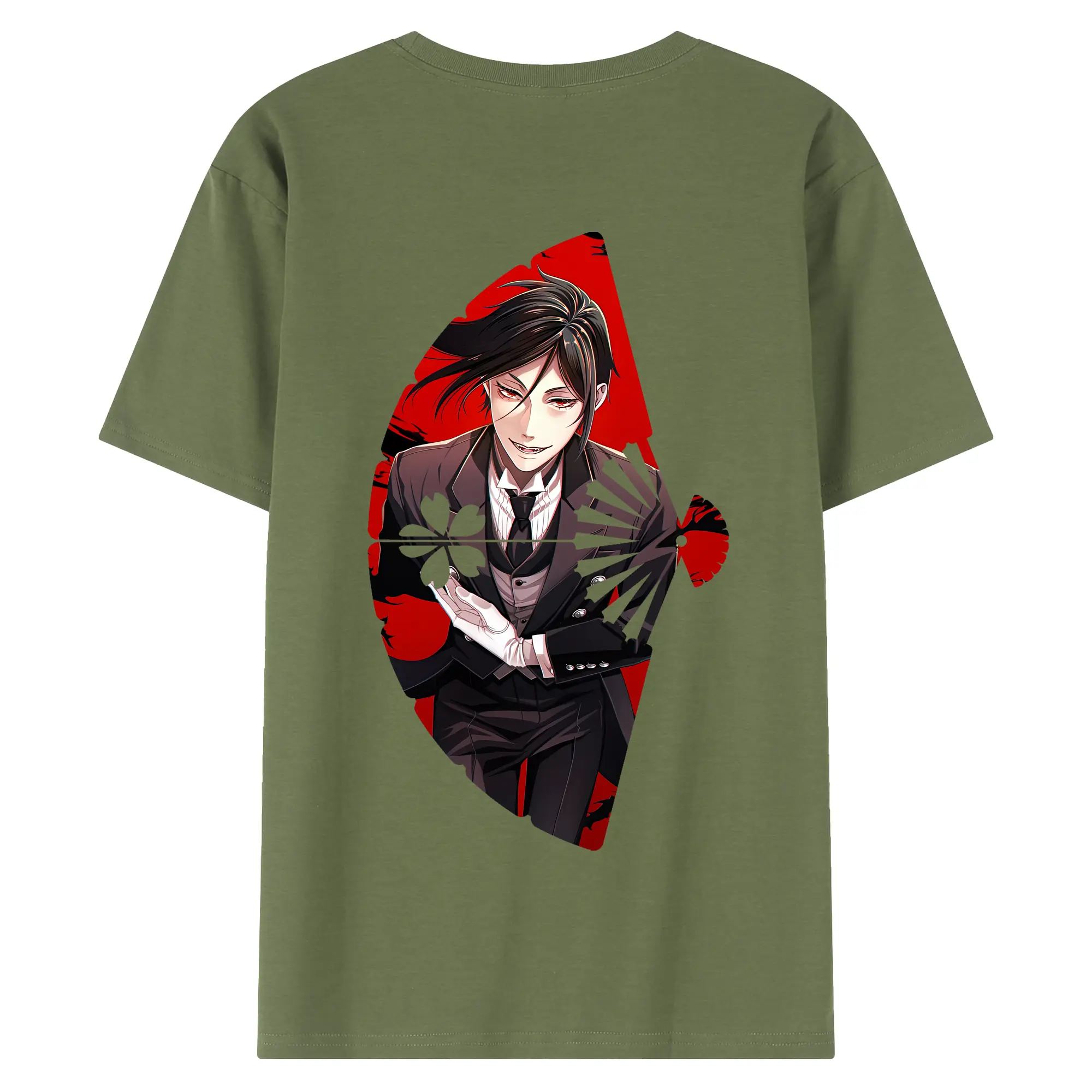 黒執事 グッズ,セバスチャン・ミカエリス - 綿100% 半袖Tシャツ ・ フロントプリント ・ 快適 通気性 ・ 日常使い 散歩 スポーツ用