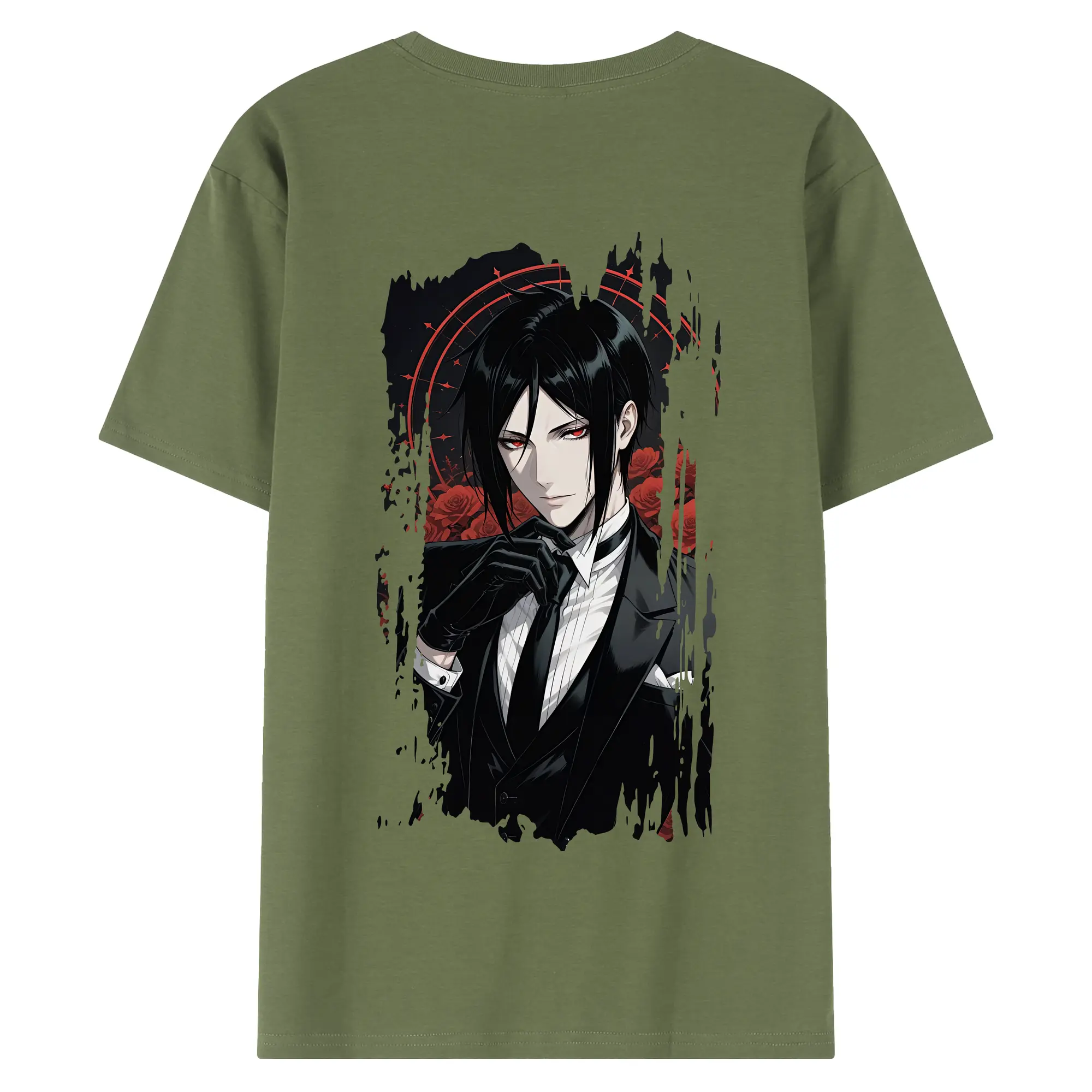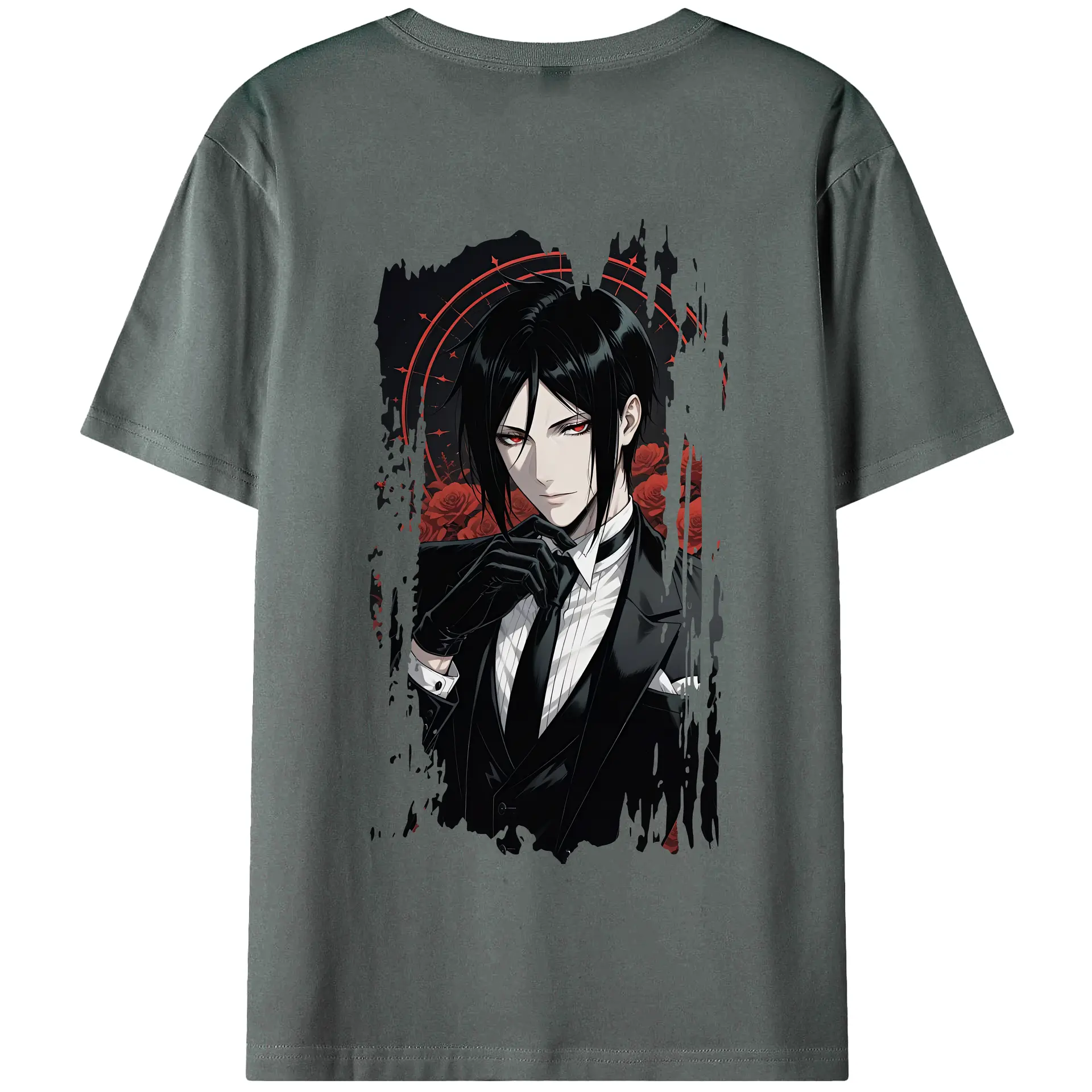 黒執事 グッズ,セバスチャン・ミカエリス - 綿100% 半袖Tシャツ ・ フロントプリント ・ 快適 通気性 ・ 日常使い 散歩 スポーツ用