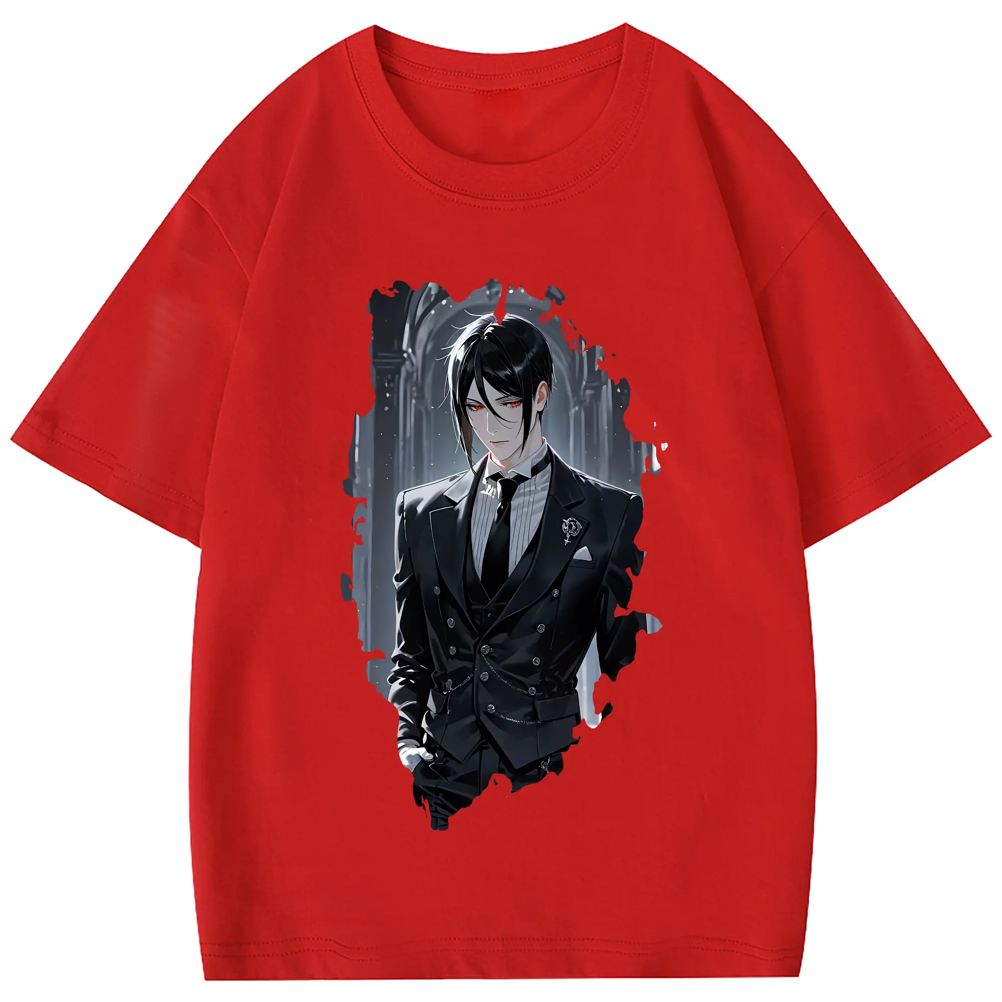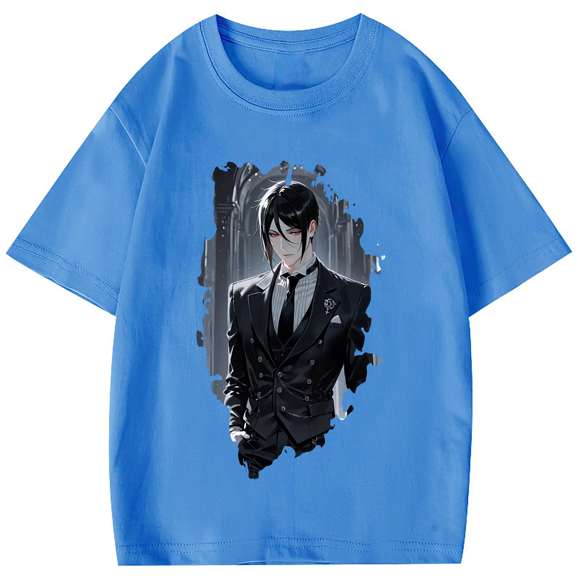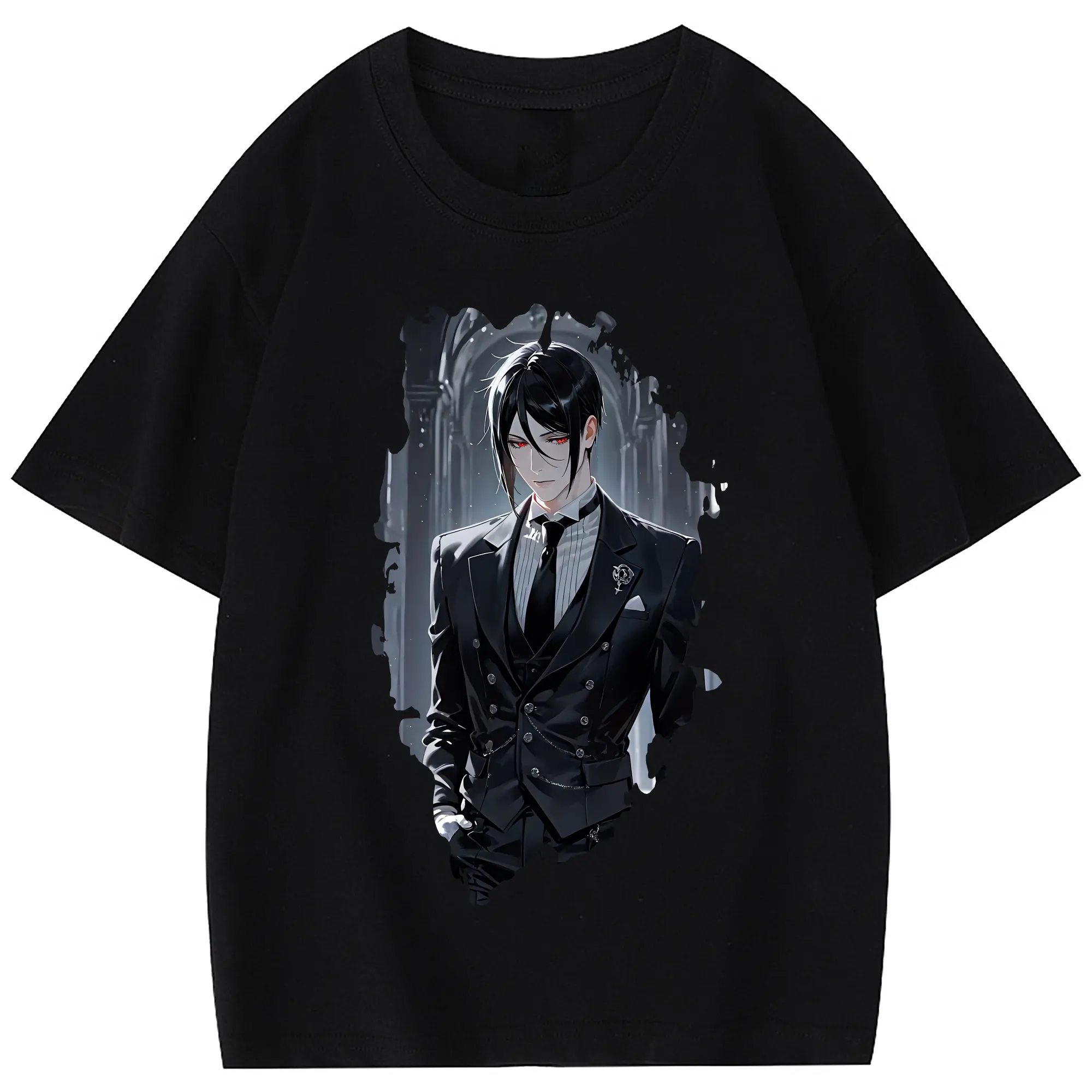 黒執事 グッズ,セバスチャン・ミカエリス - 綿100% 半袖Tシャツ ・ フロントプリント ・ 快適 通気性 ・ 日常使い 散歩 スポーツ用