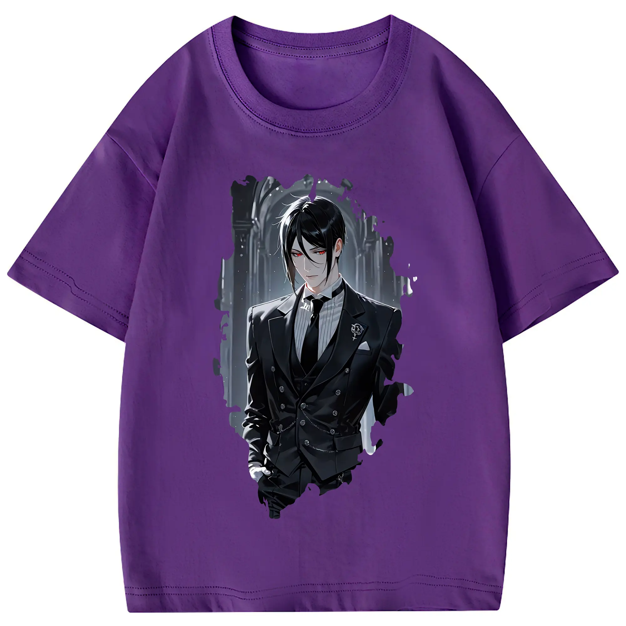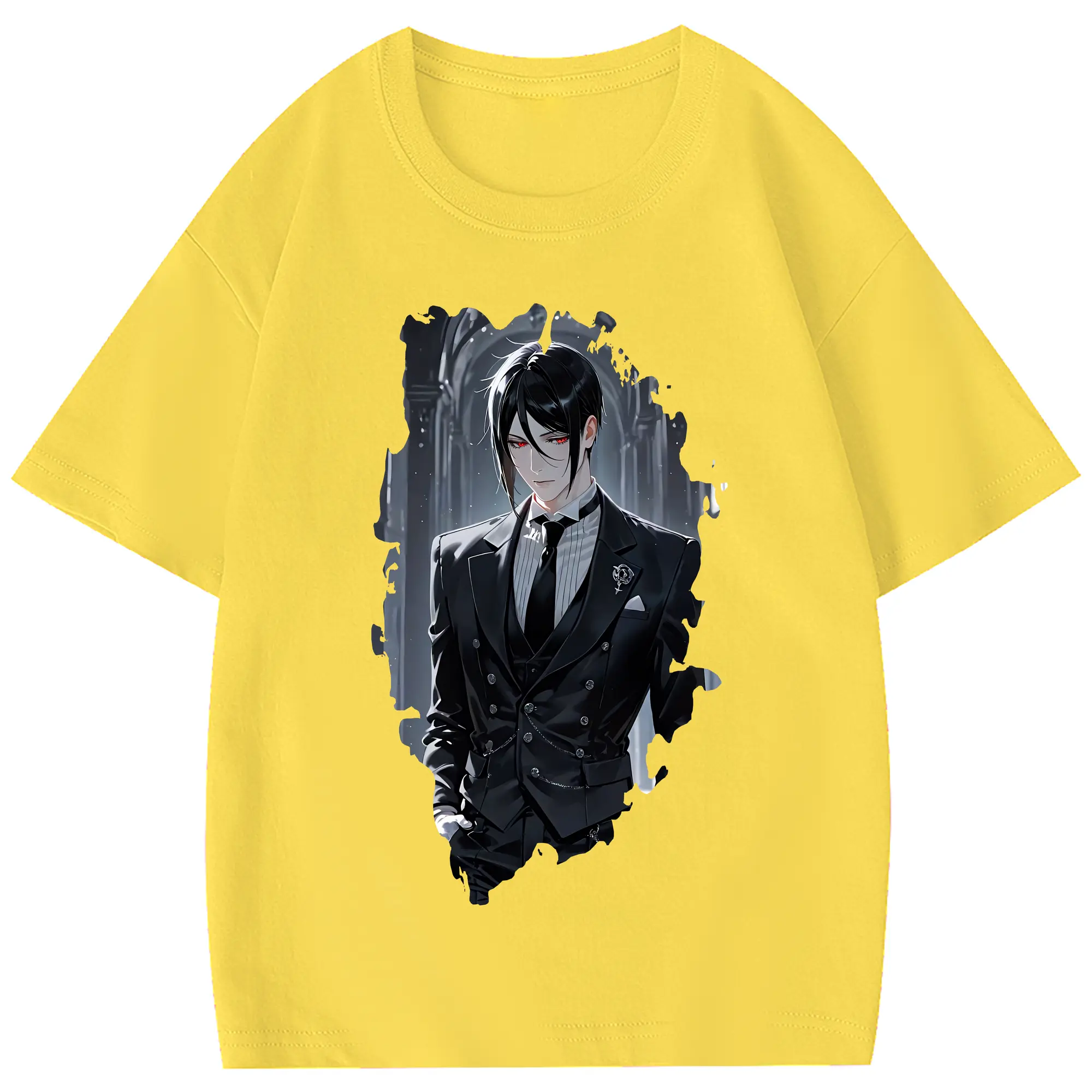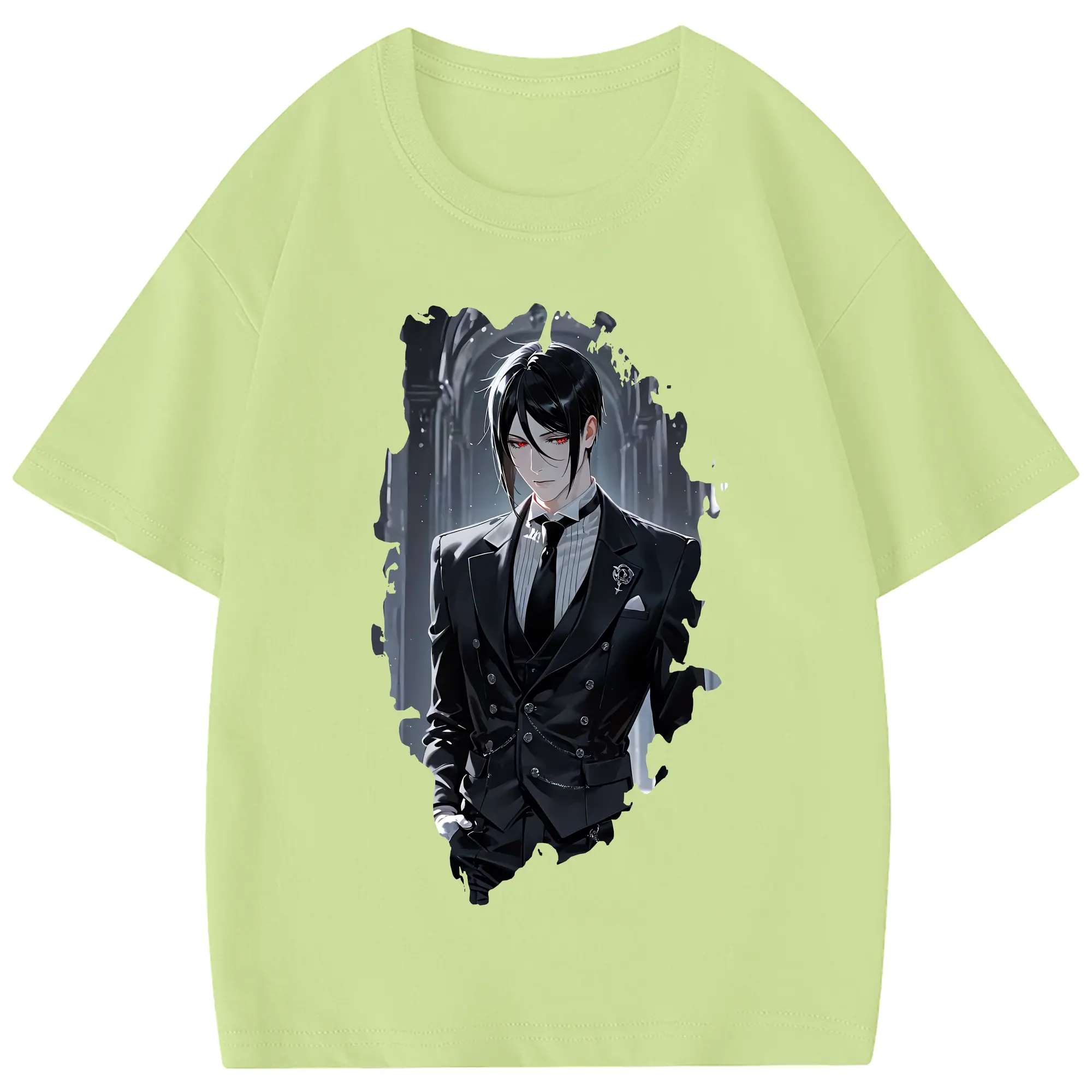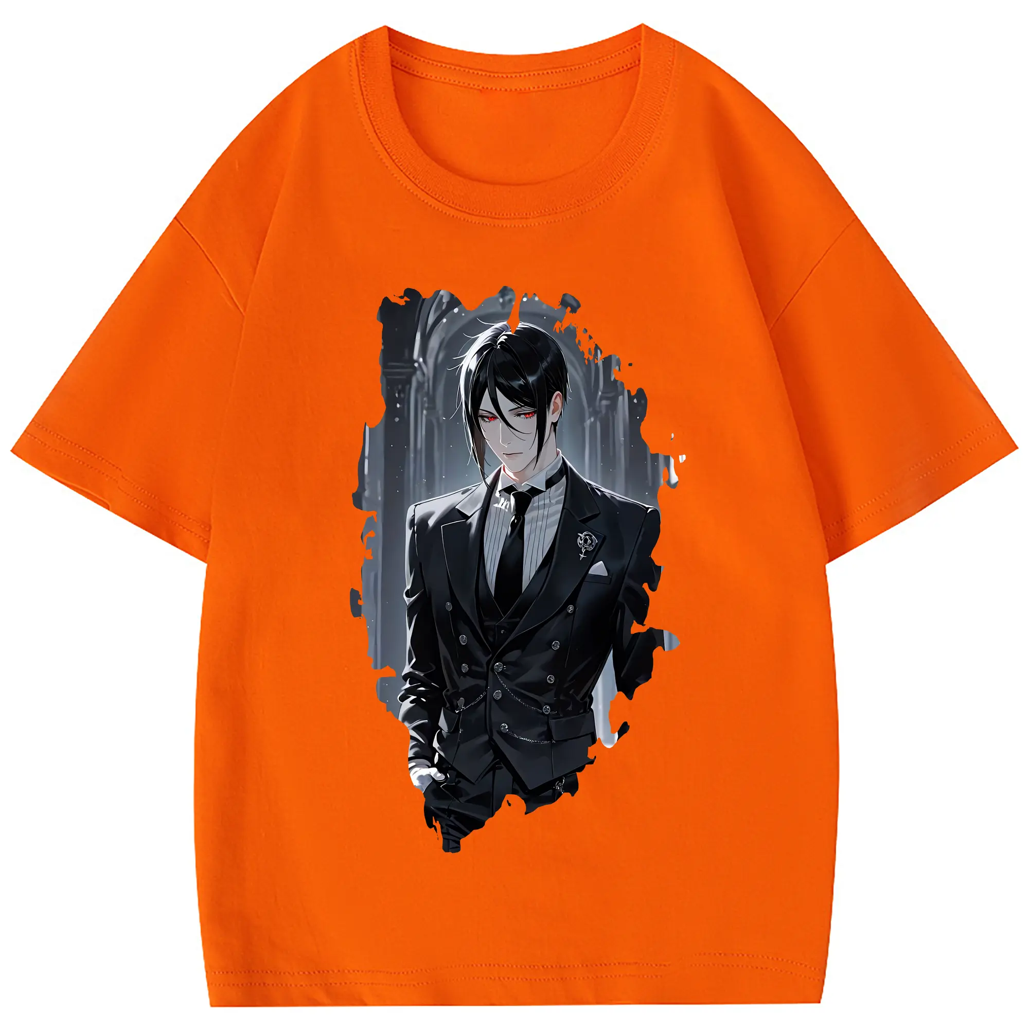 黒執事 グッズ,セバスチャン・ミカエリス - 綿100% 半袖Tシャツ ・ フロントプリント ・ 快適 通気性 ・ 日常使い 散歩 スポーツ用