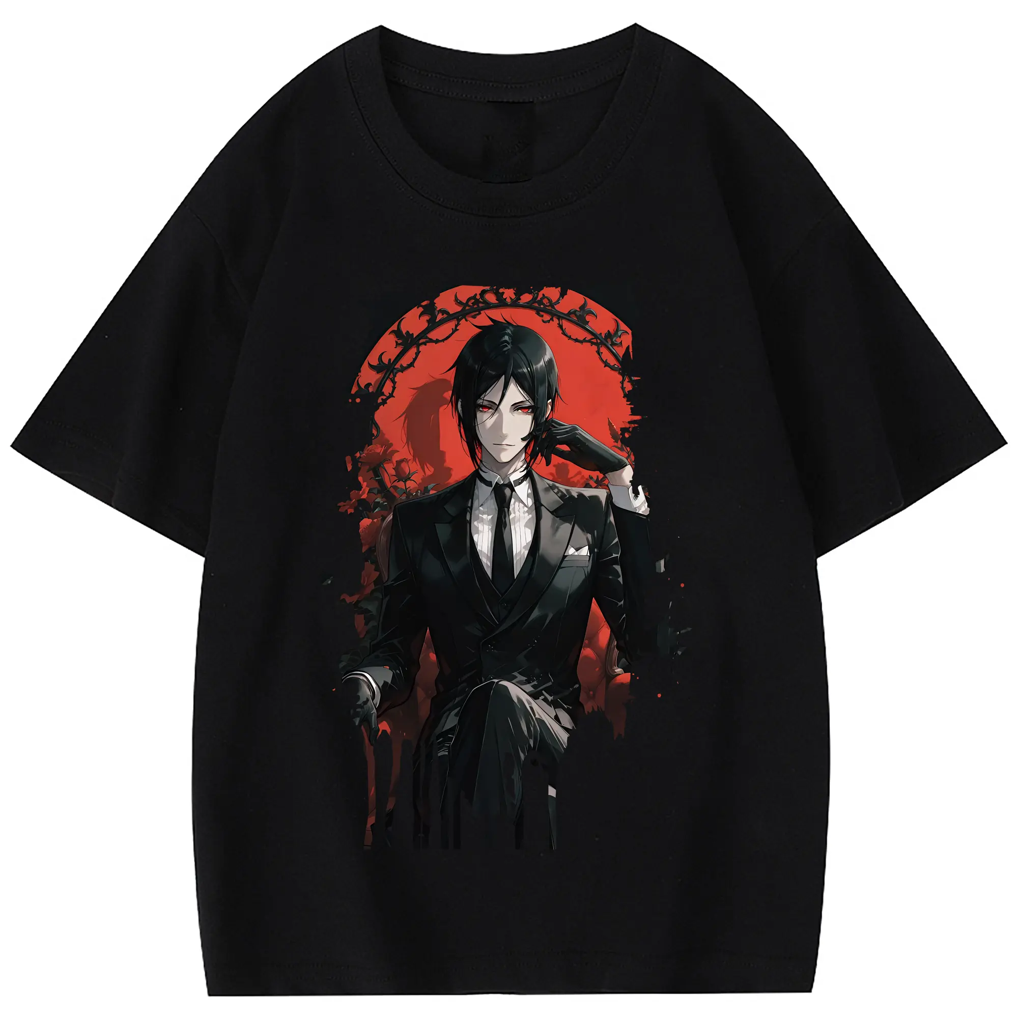 黒執事 グッズ,セバスチャン・ミカエリス - 綿100% 半袖Tシャツ ・ フロントプリント ・ 快適 通気性 ・ 日常使い 散歩 スポーツ用