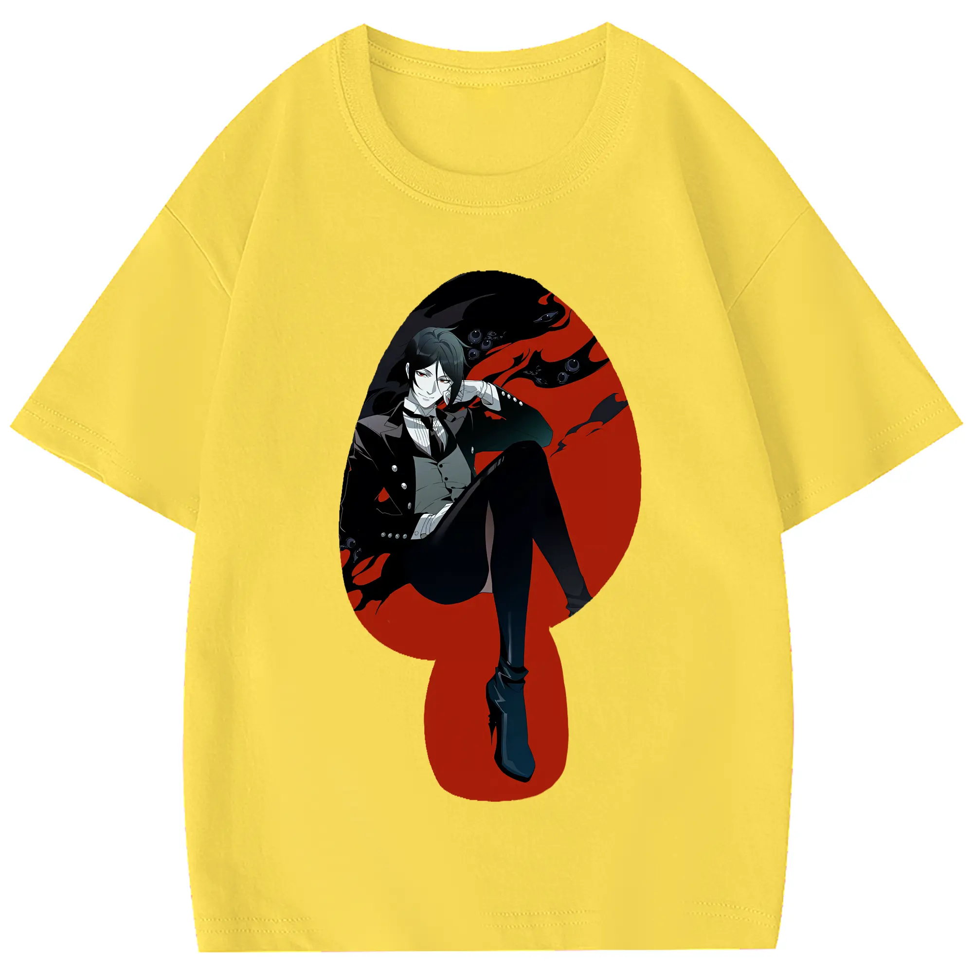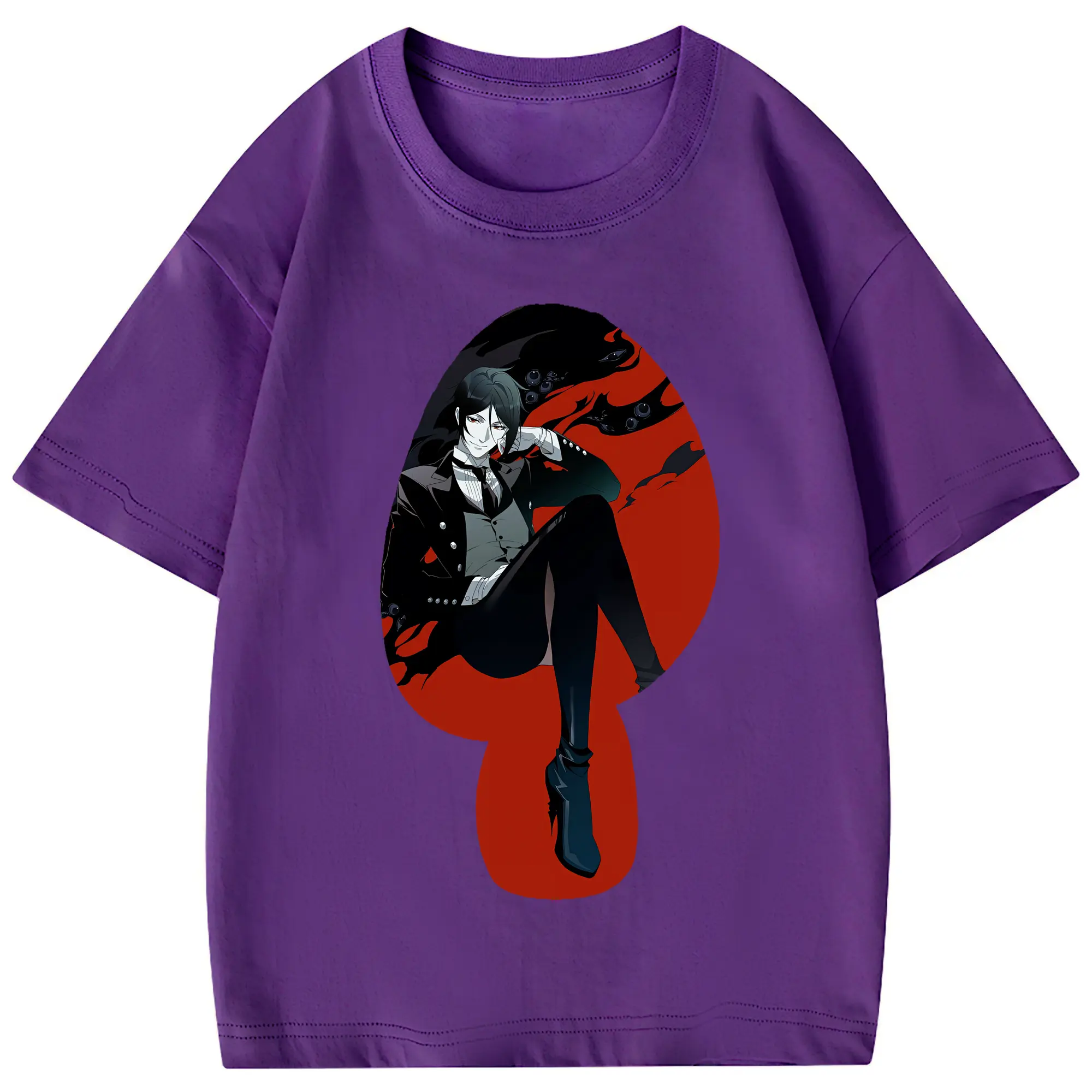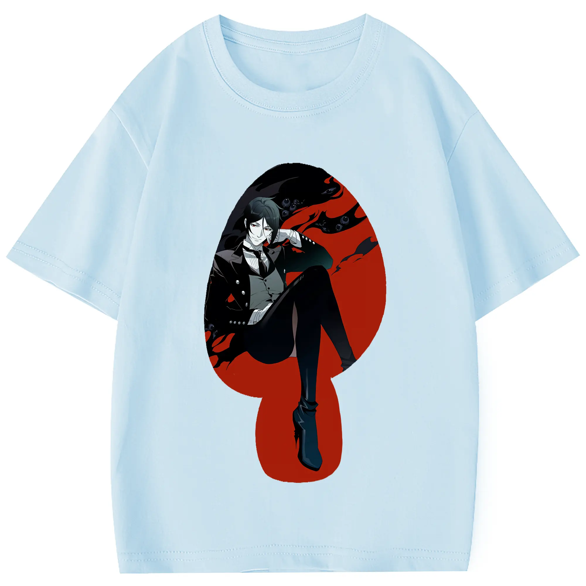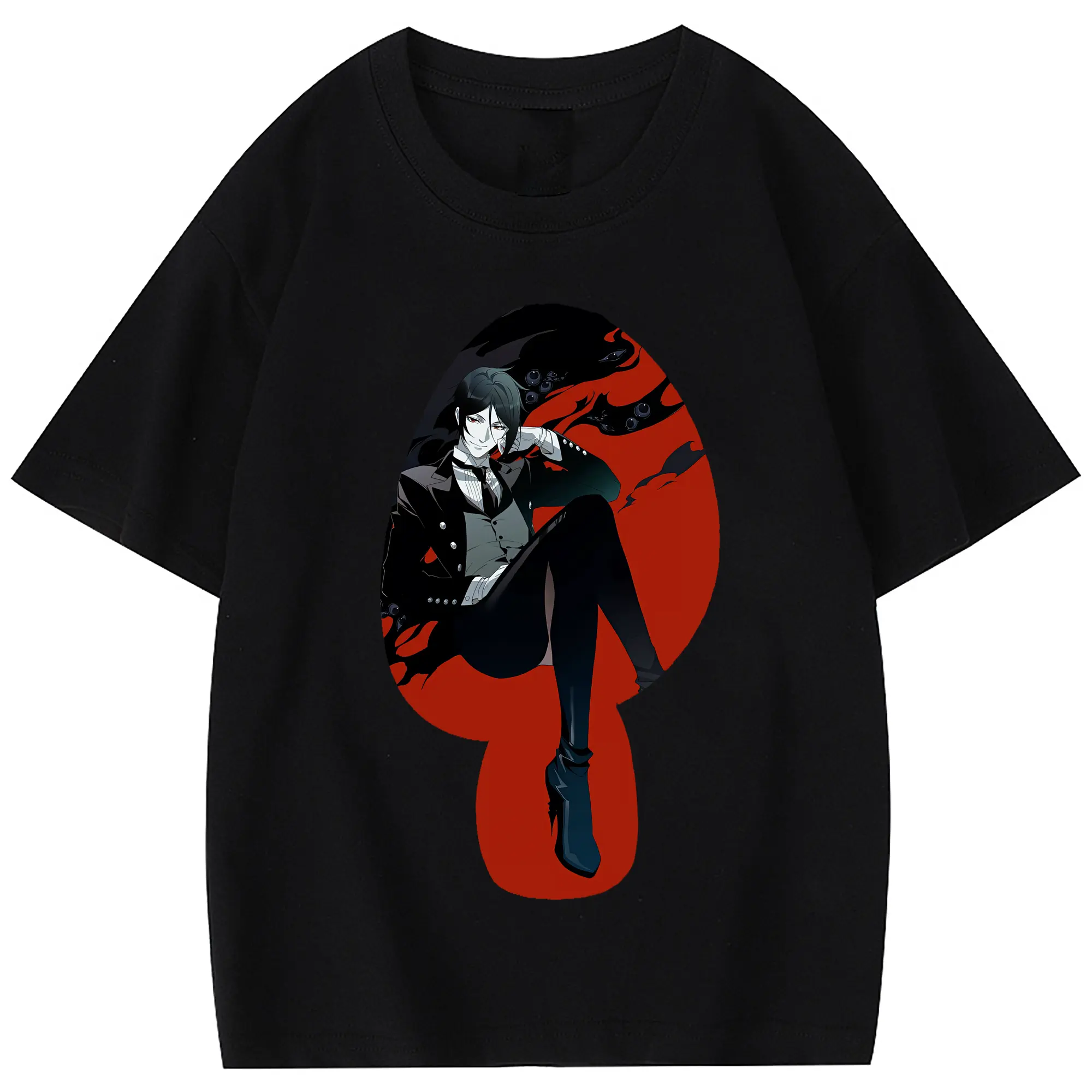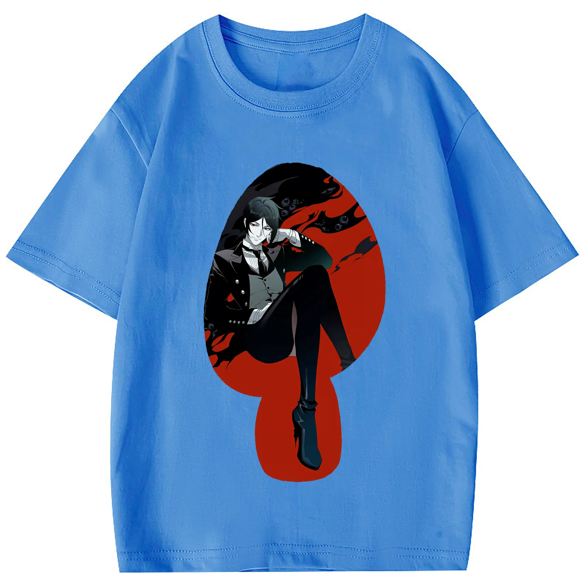 黒執事 グッズ,セバスチャン・ミカエリス - 綿100% 半袖Tシャツ ・ フロントプリント ・ 快適 通気性 ・ 日常使い 散歩 スポーツ用